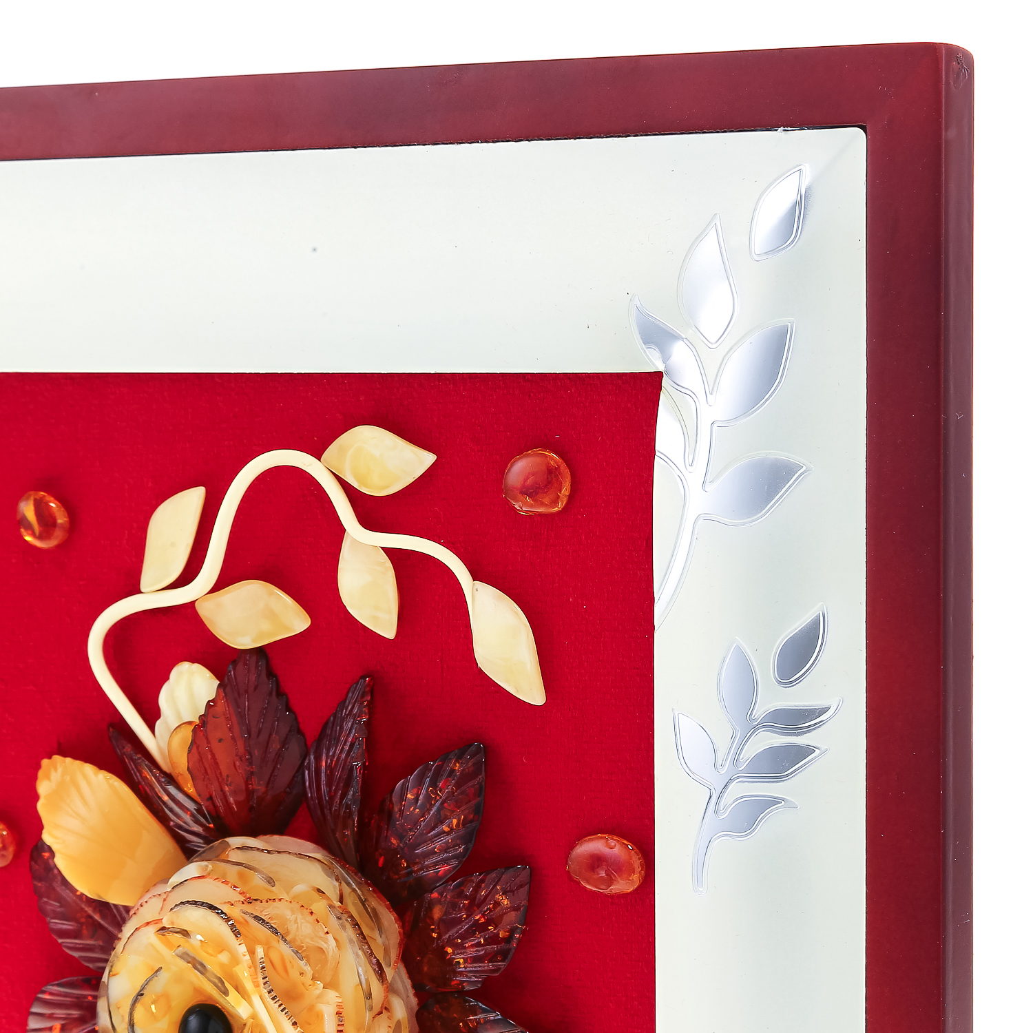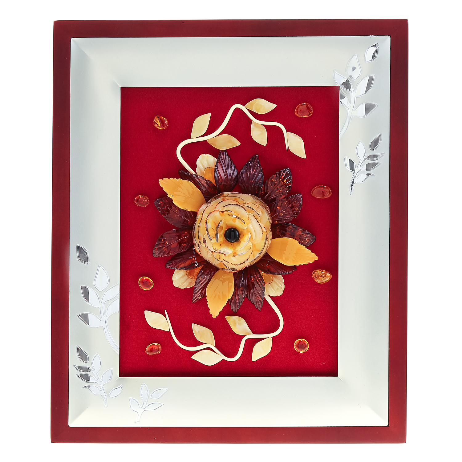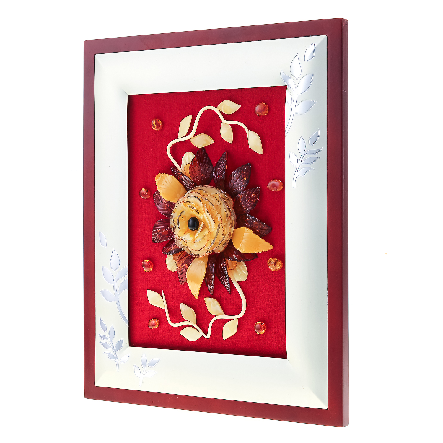 Янтарное панно "Роза".Материалы: янтарь, бархат, пластик.