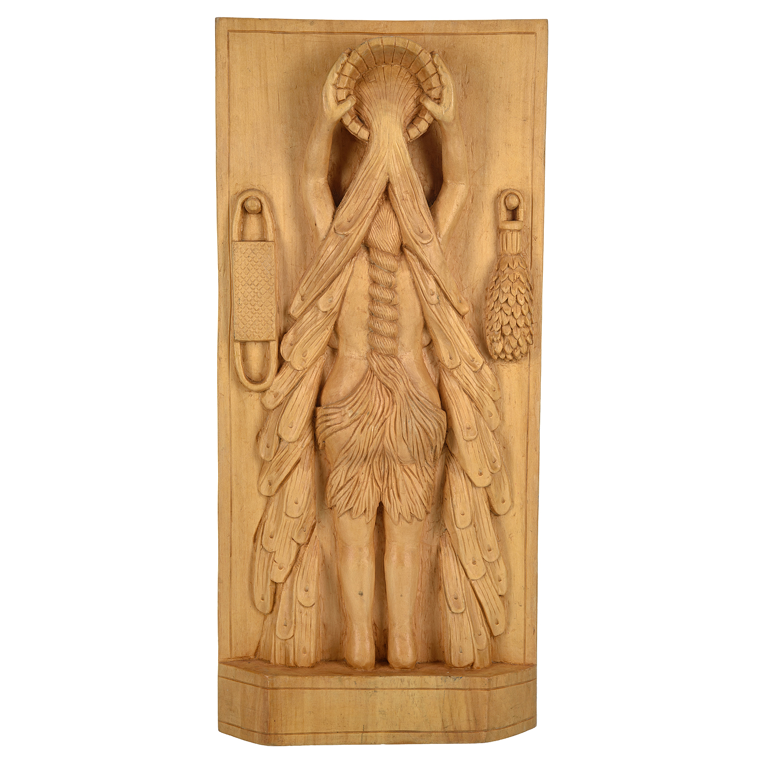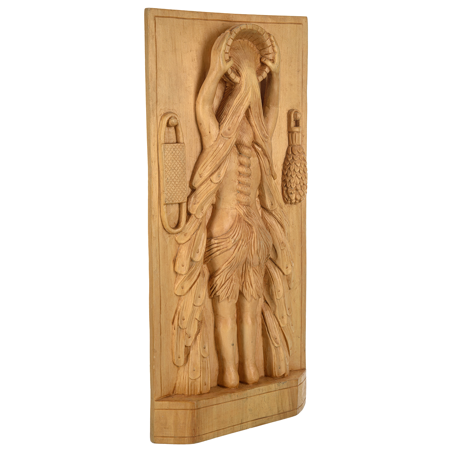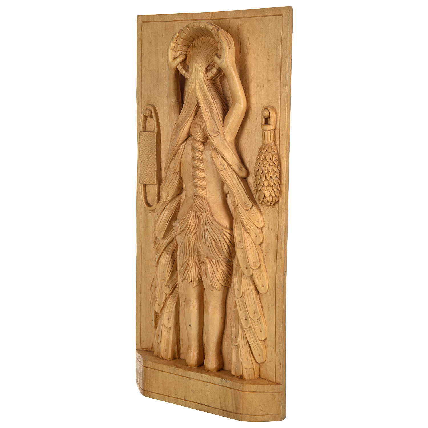 Деревянное резное панно "Девушка в бане" 54х25 см