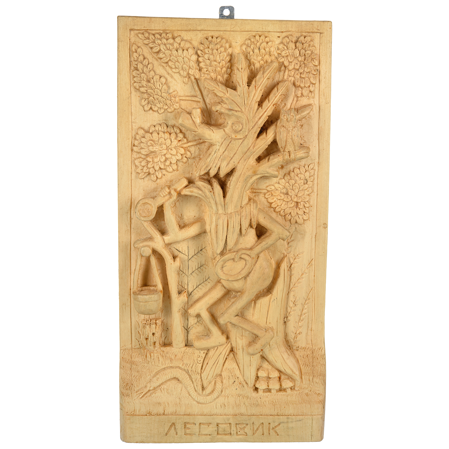 Русские подарки и сувениры → Интерьерные изделия → Панно → Деревянное резное панно "Лесовик" 50х25 см