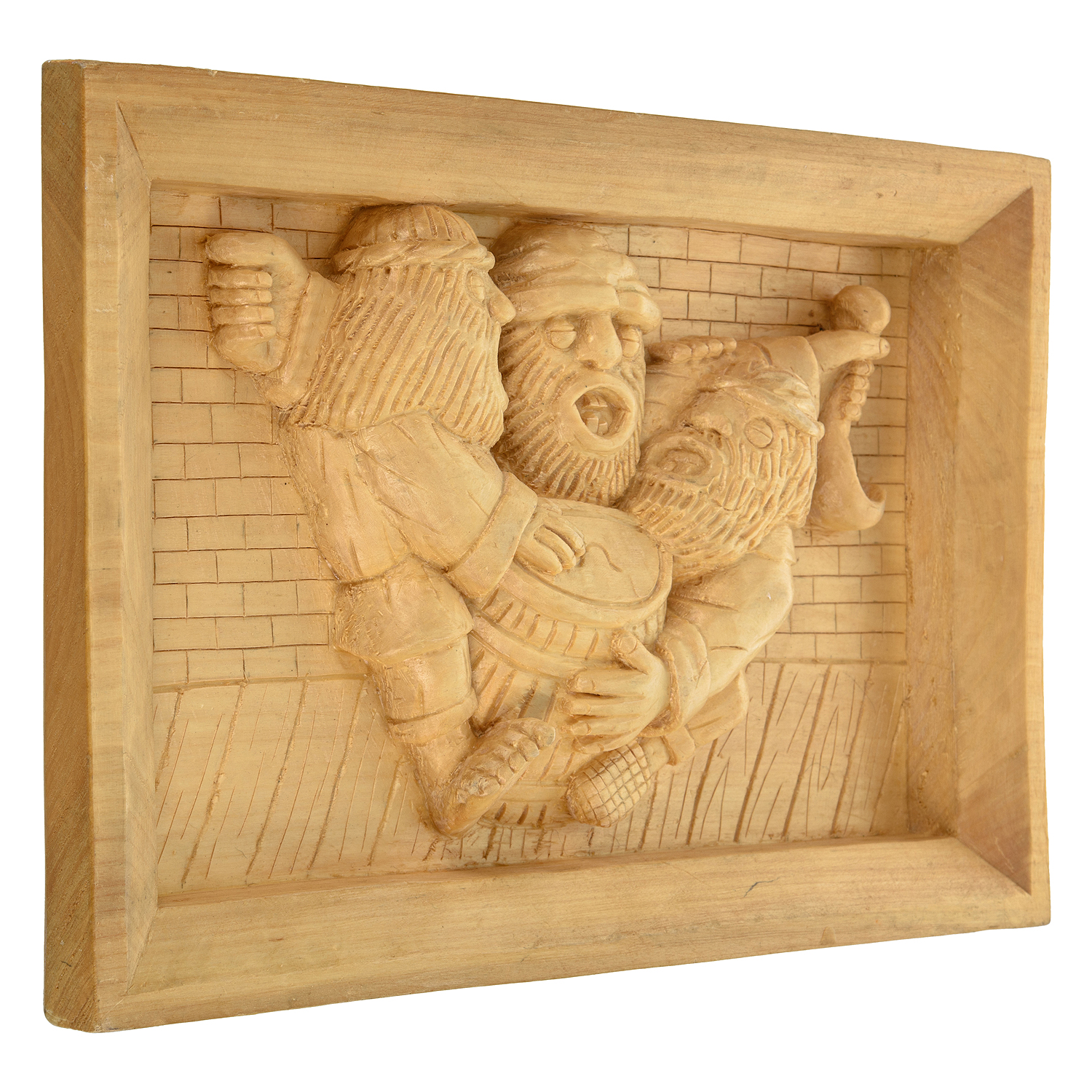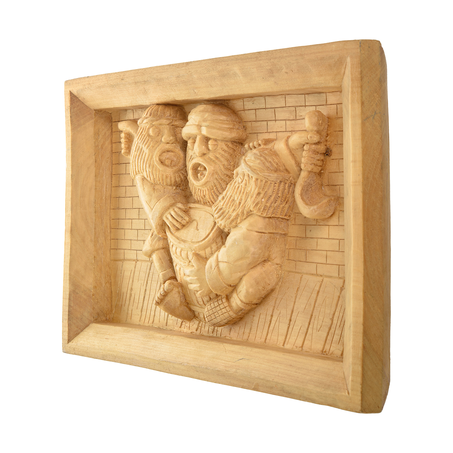 Деревянное резное панно "Трое" 39х26 см