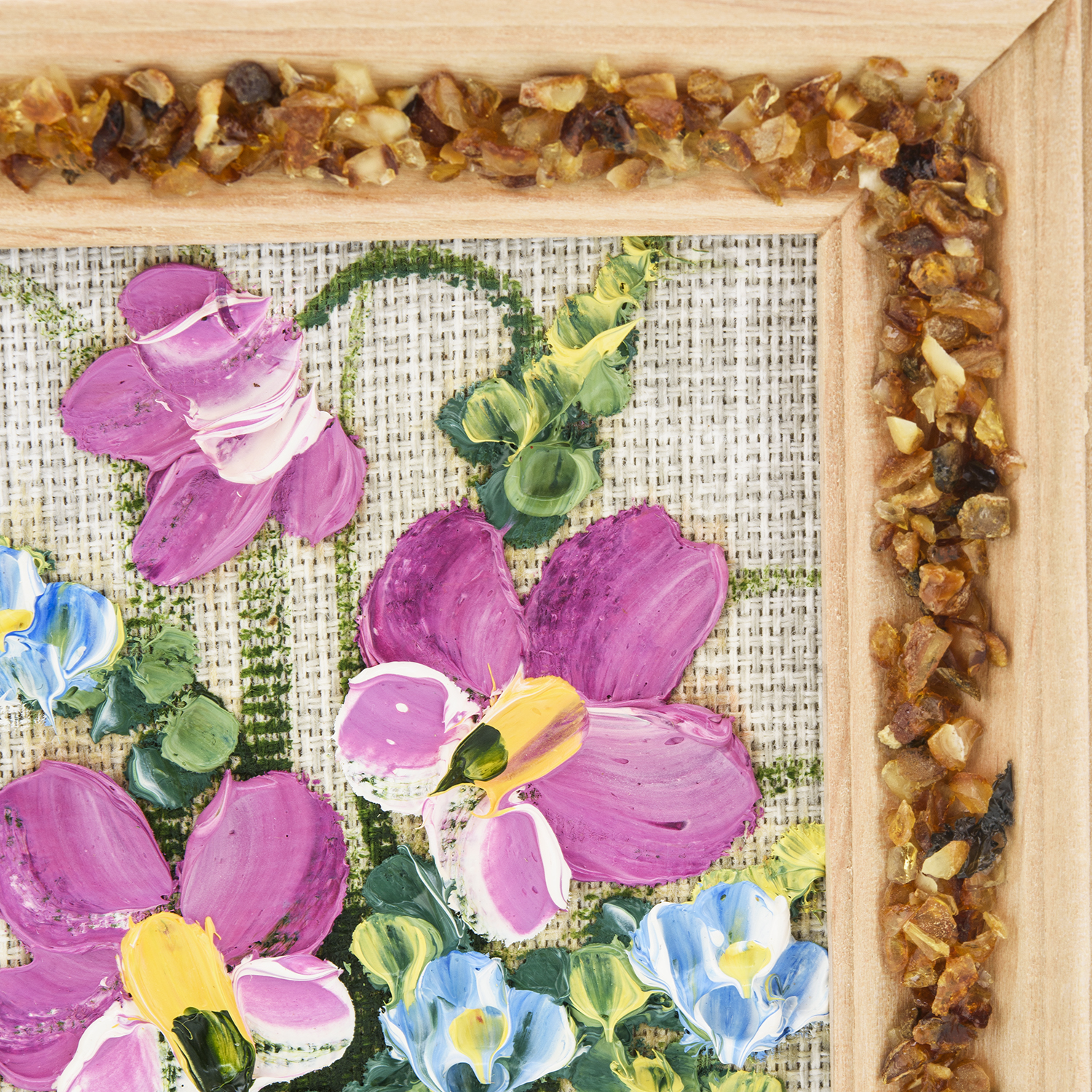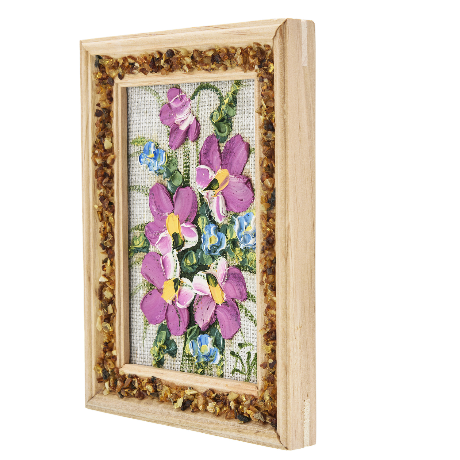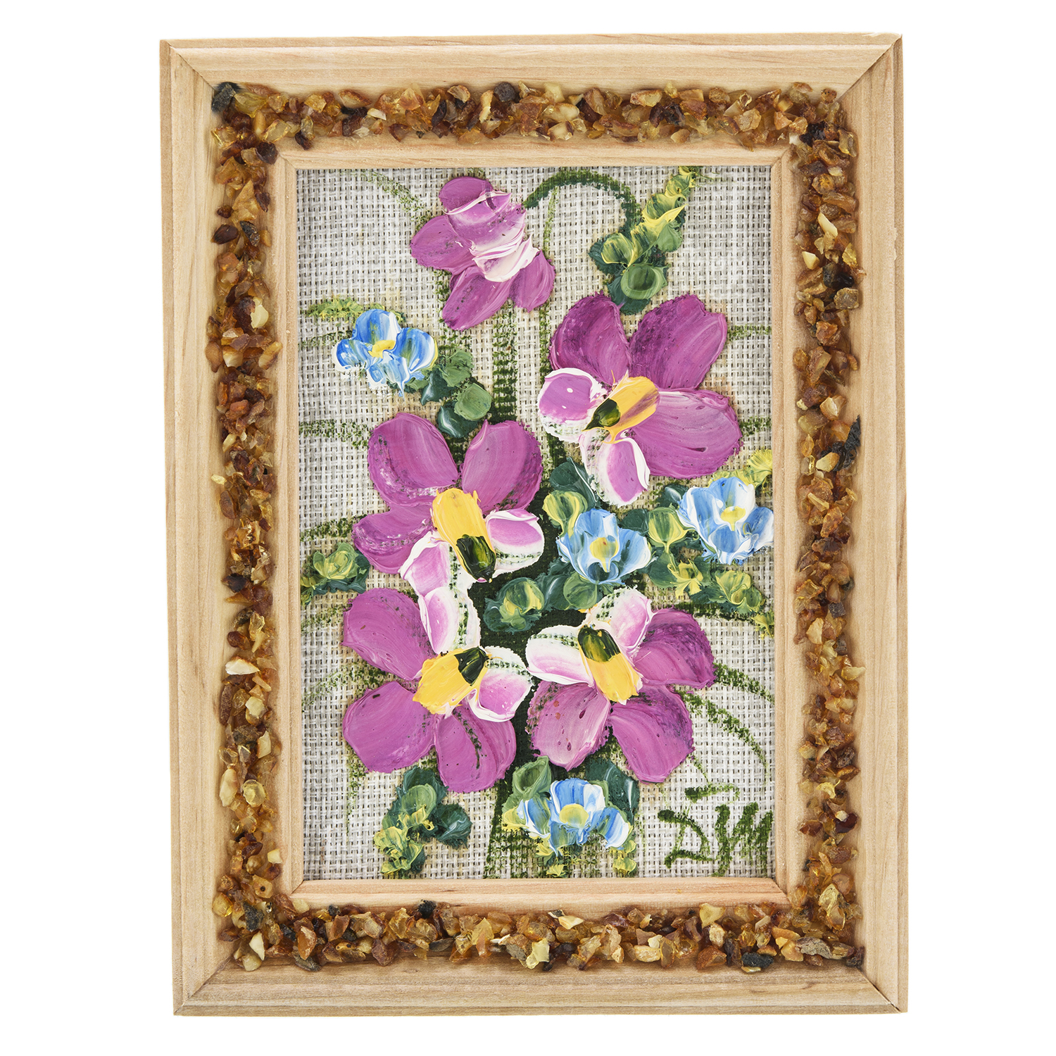Панно в янтарной раме "Букет цветов" 12,5х16,5 см