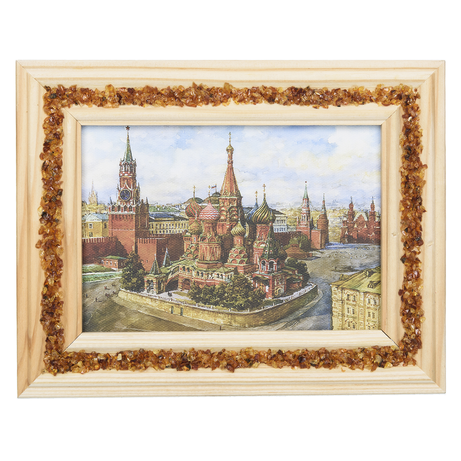 Русские подарки и сувениры → Интерьерные изделия → Панно → Панно янтарное "Московский Кремль летом" 20х16 см
