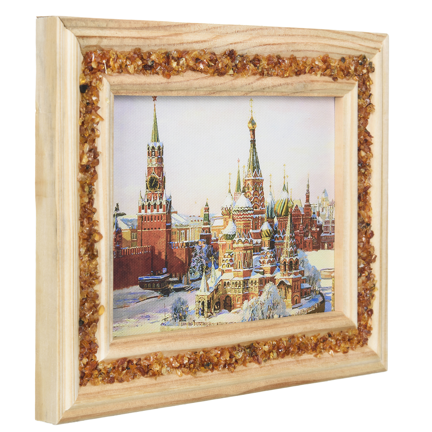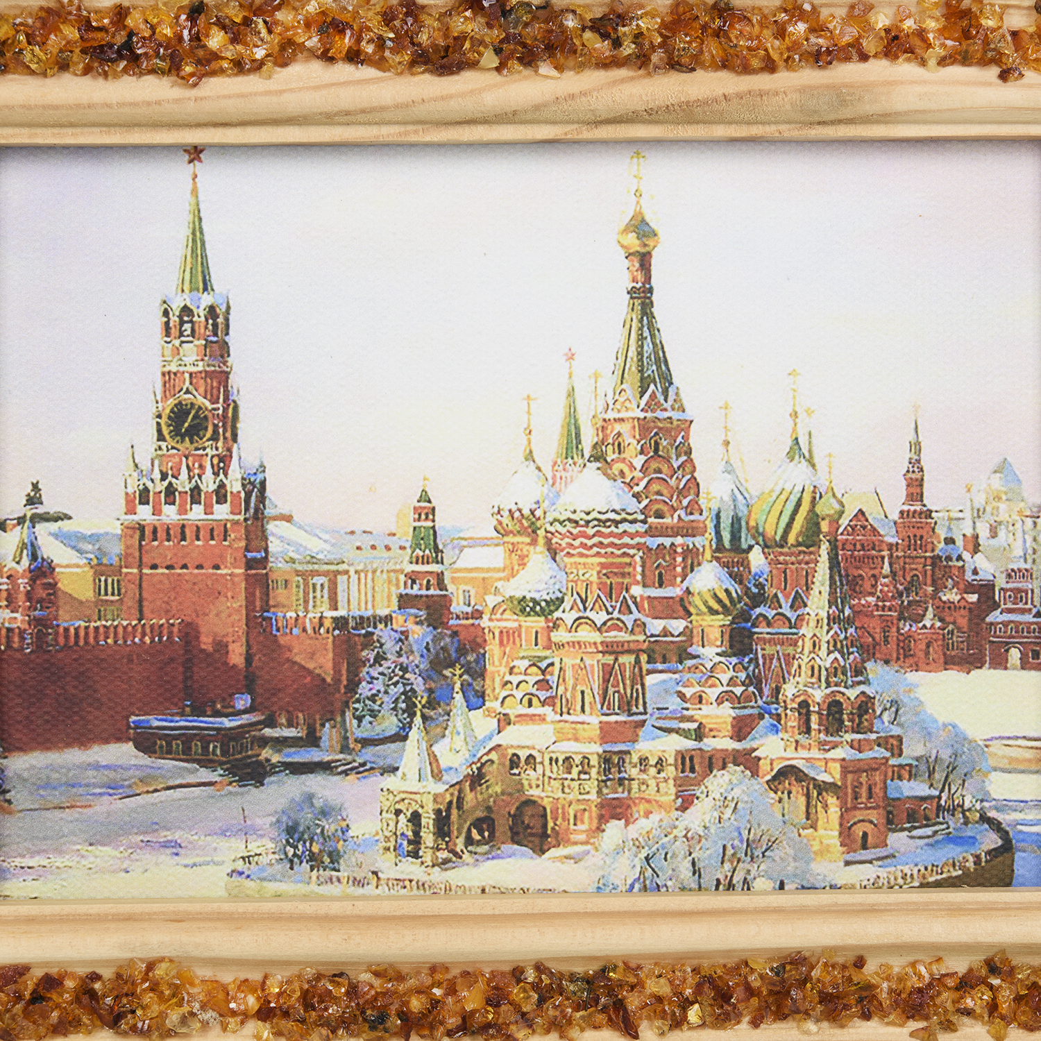 Панно янтарное "Московский Кремль зимой" 20х16 см