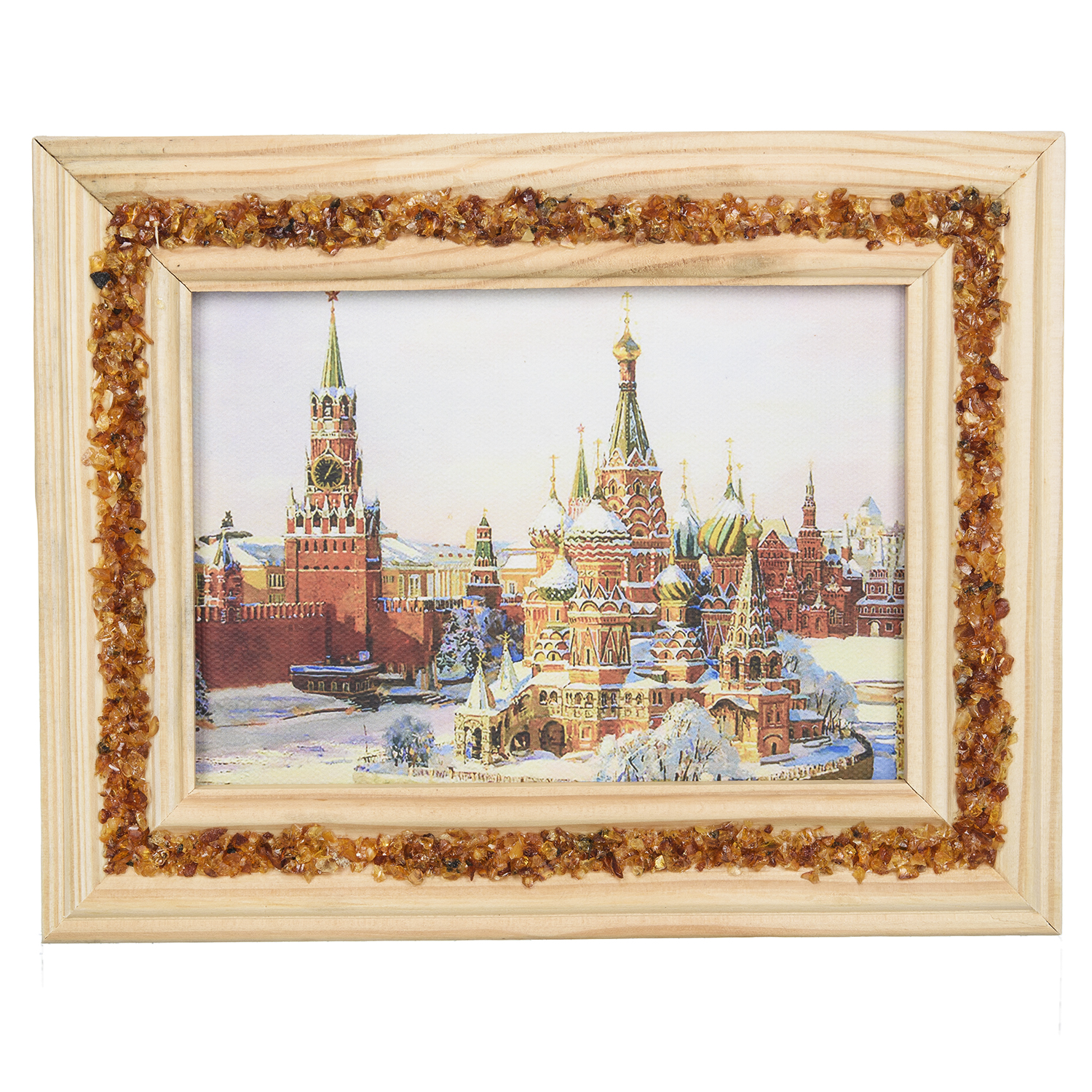 Русские подарки и сувениры → Интерьерные изделия → Панно → Панно янтарное "Московский Кремль зимой" 20х16 см