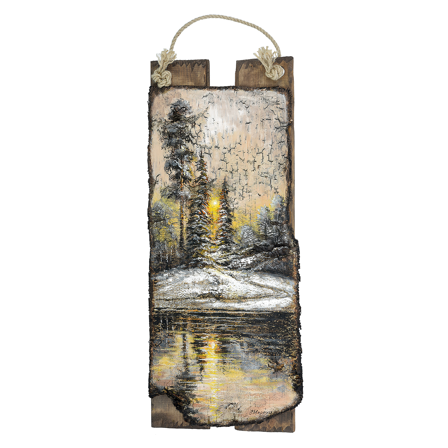 Панно из бересты "Зимняя симфония" 30х71 см