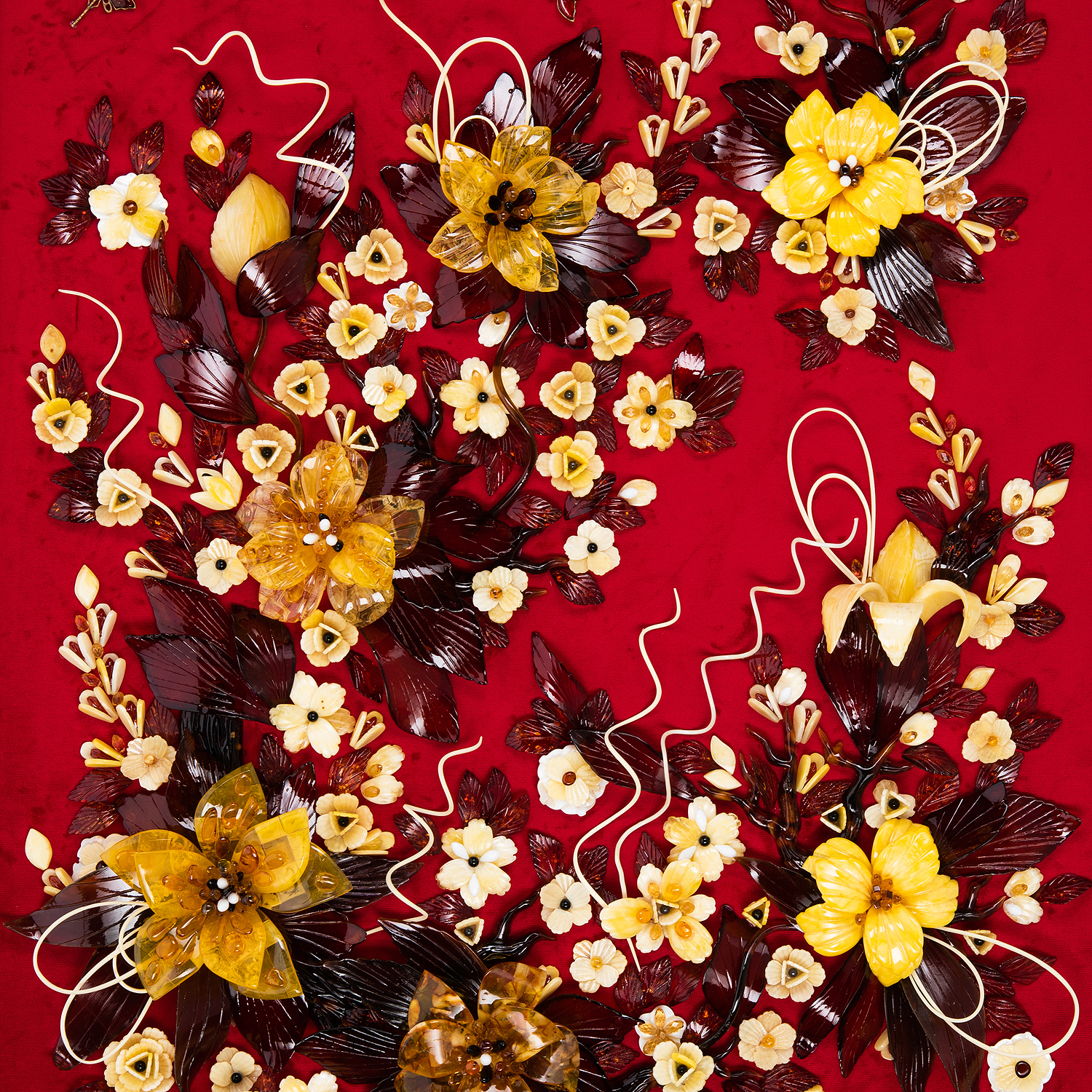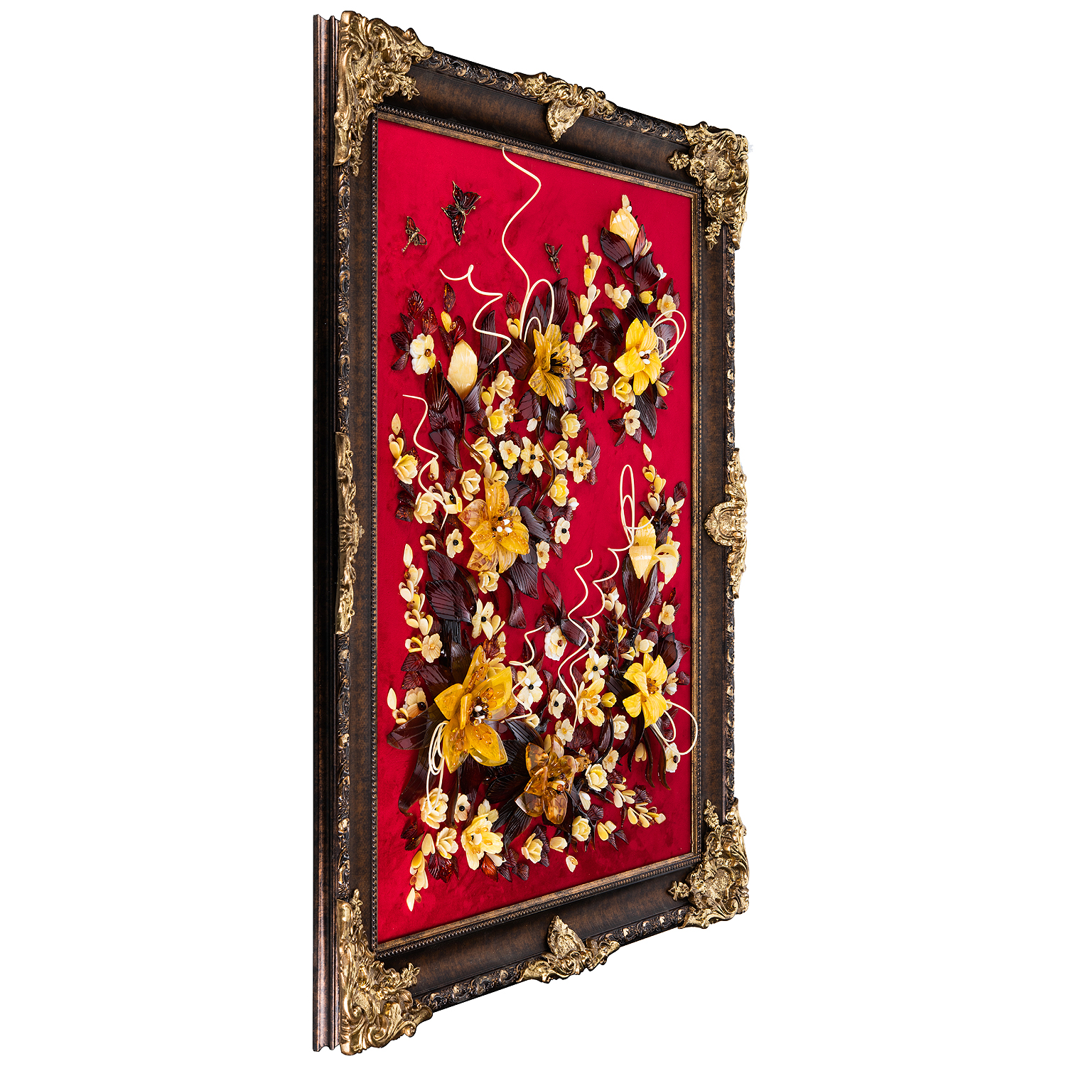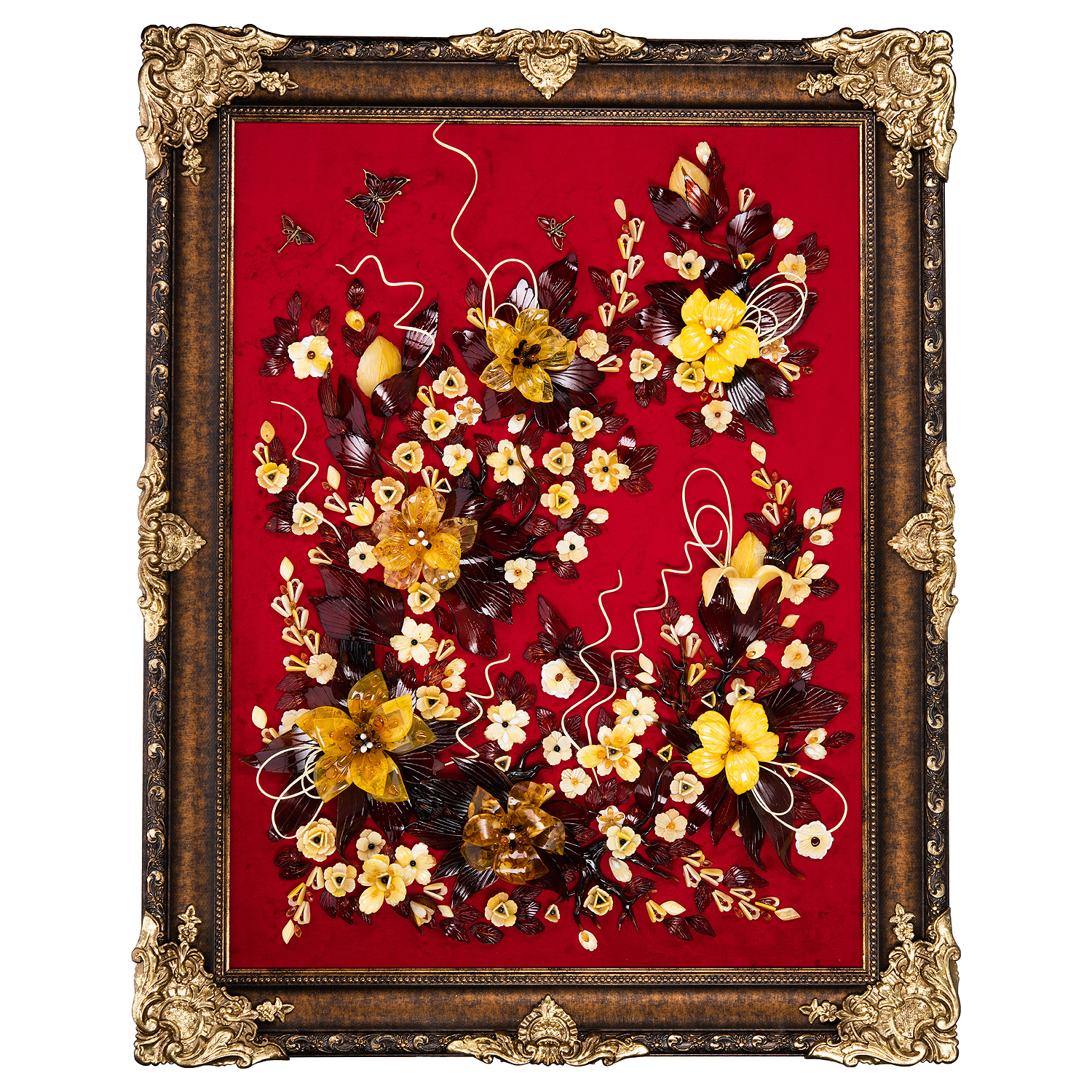 Картина янтарная "Лилия".Материалы: янтарь, бархат, багетная рама.