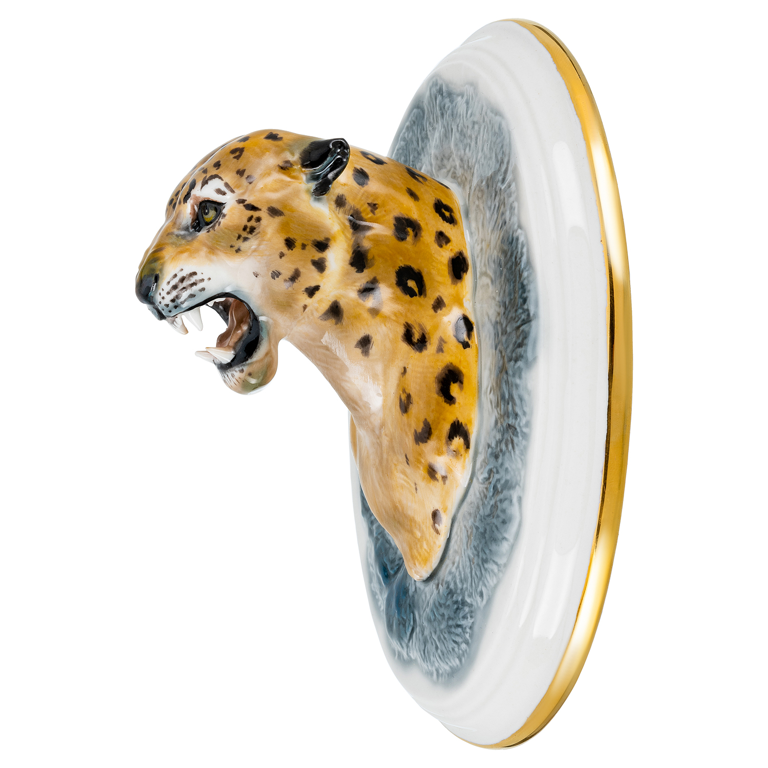 Русские подарки и сувениры → Интерьерные изделия → Панно → Панно фарфоровое "Леопард". Серия "Трофеи" 10х16 см