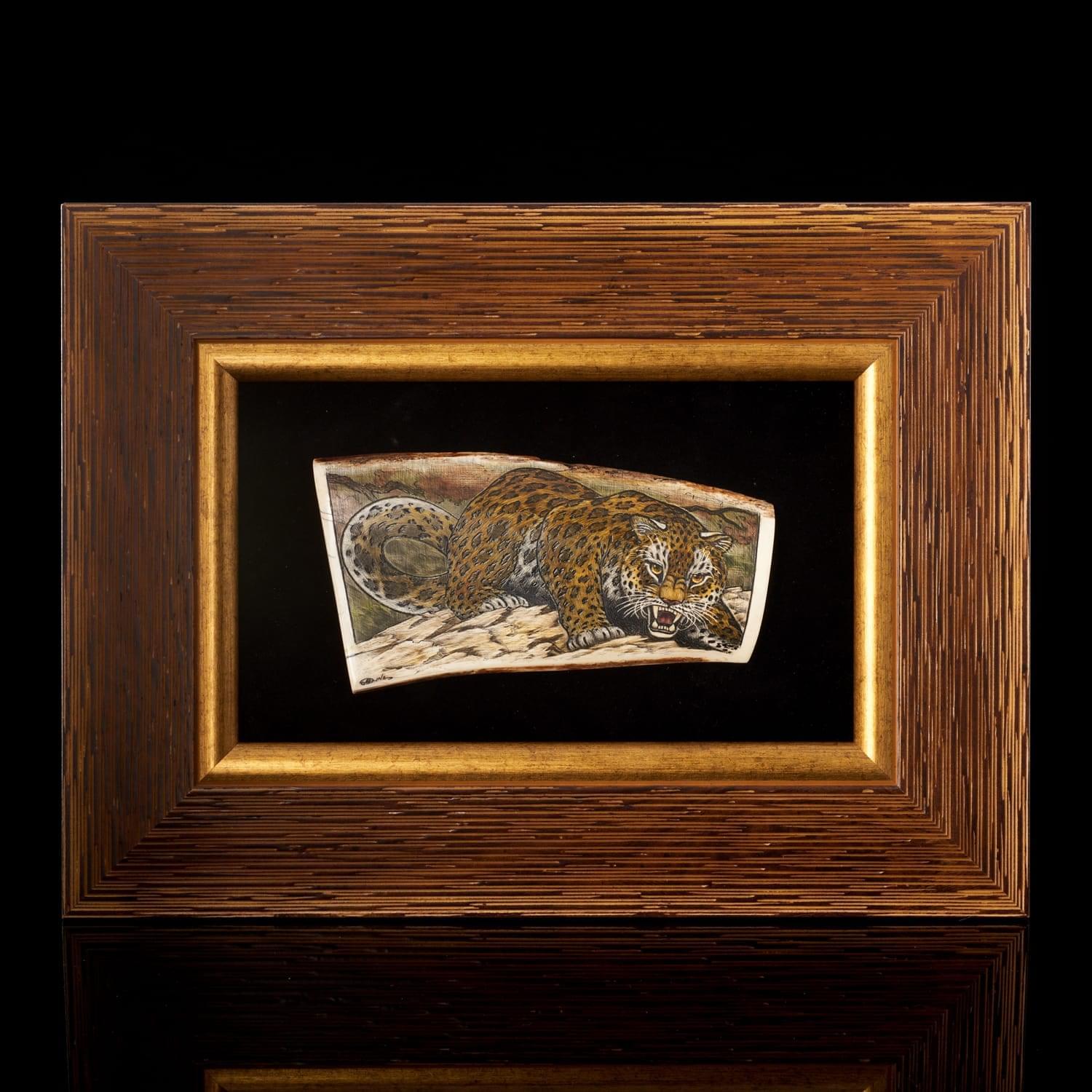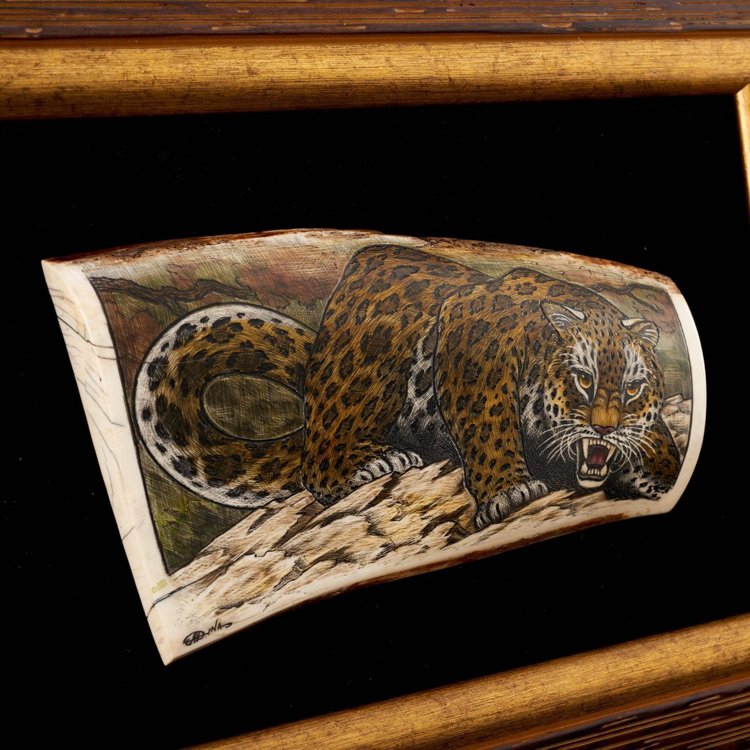 Панно из бивня мамонта "Снежный барс" 38 х 28 см