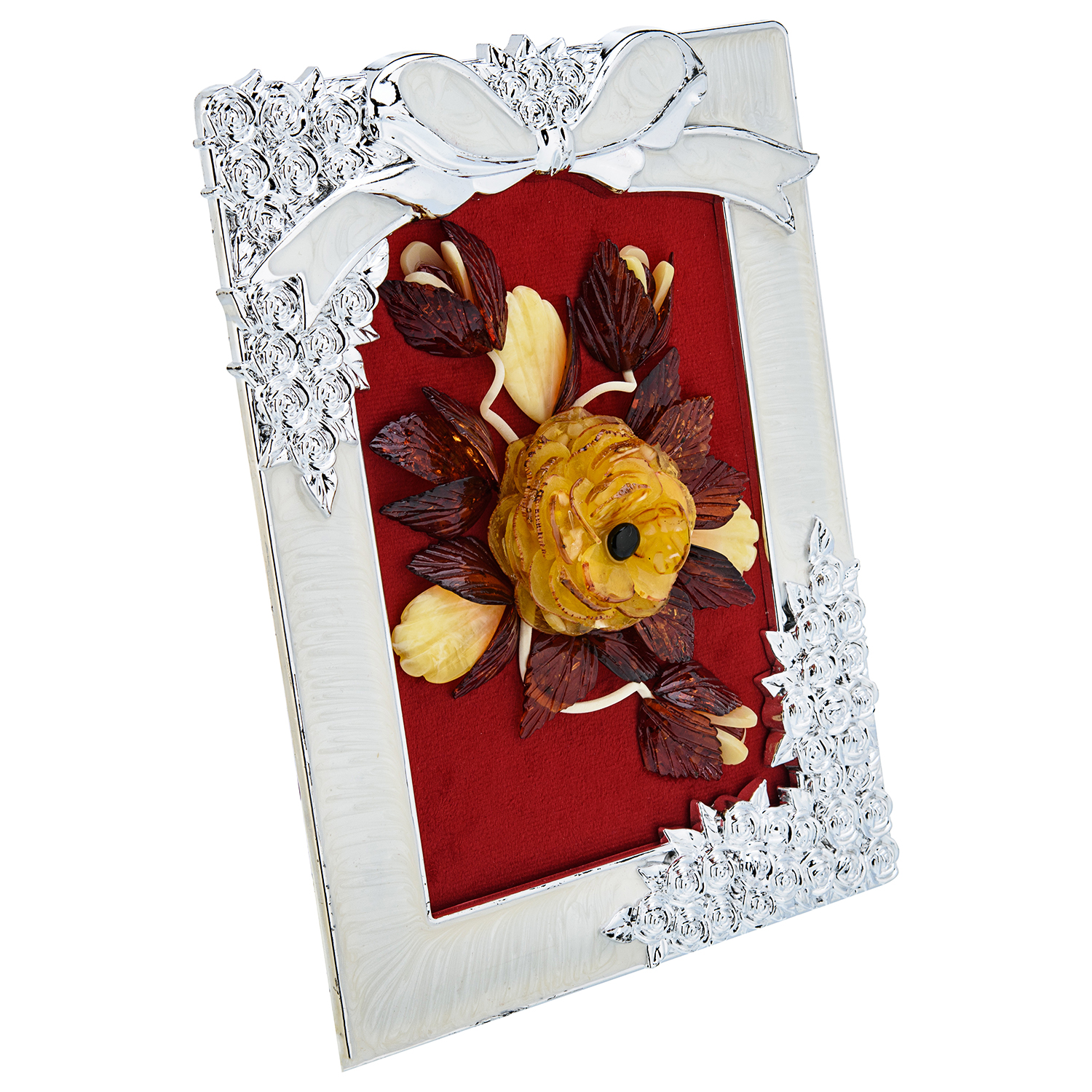 Русские подарки и сувениры → Интерьерные изделия → Панно → Настольное янтарное панно "Открытка с цветами" 23х18 см