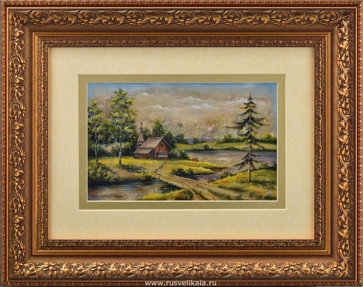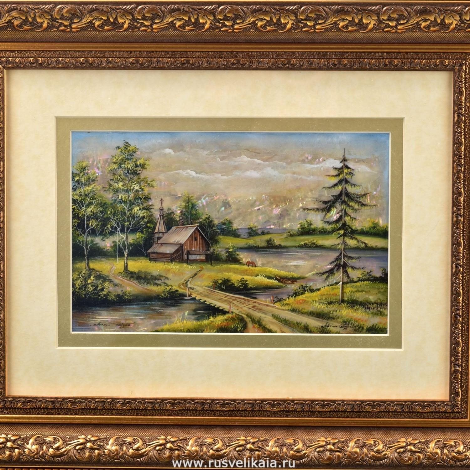 0027634/45*35см Картина "Деревенские мотивы. Лето" разные сюжеты в раме ПЕРЛАМУТР ....