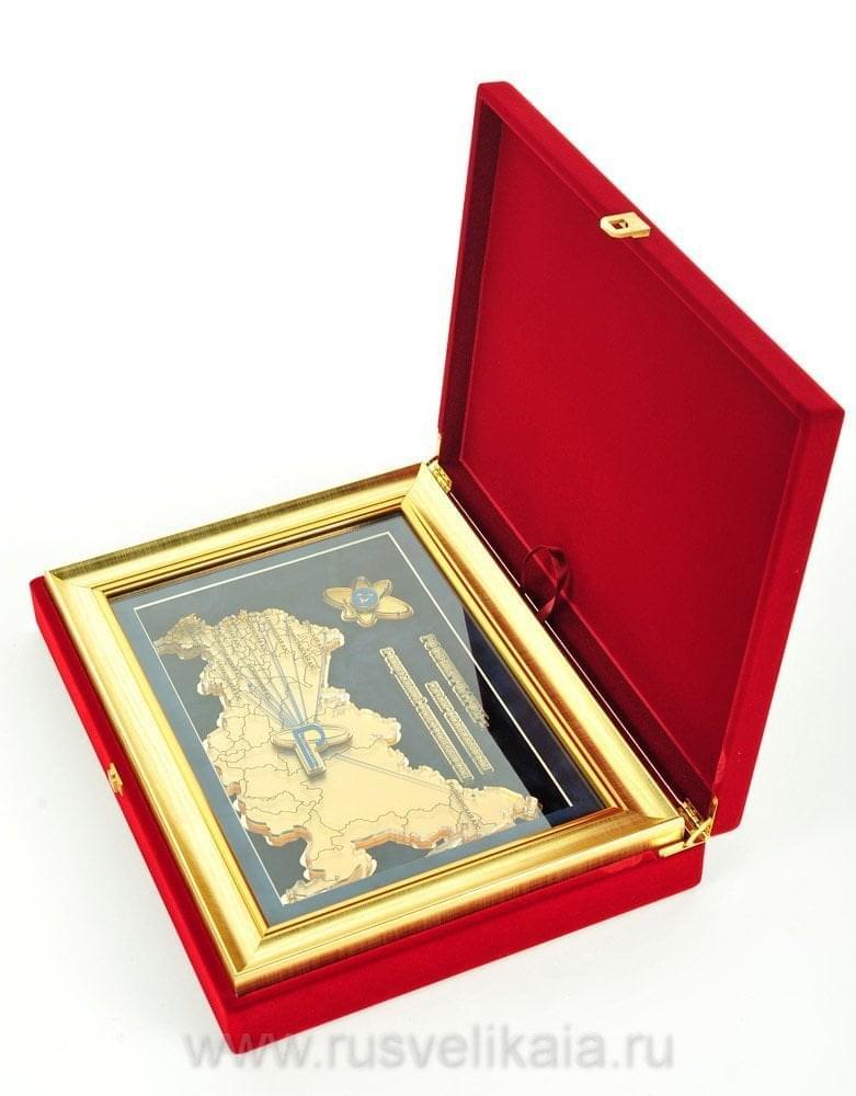 Оттенок багетной рамы перекликается с цветом сусального золота, декорированного в технике чернения. Изделие уложено в стильный плоский подарочный короб из дерева и готово к дарению. Авторская работа, панно «Росэнергоатом» , сделанная посредством сусального золота, - это универсальный вариант порядка-сувенира на День рождения, Юбилей, общий или личный, в том числе профессиональный праздник.