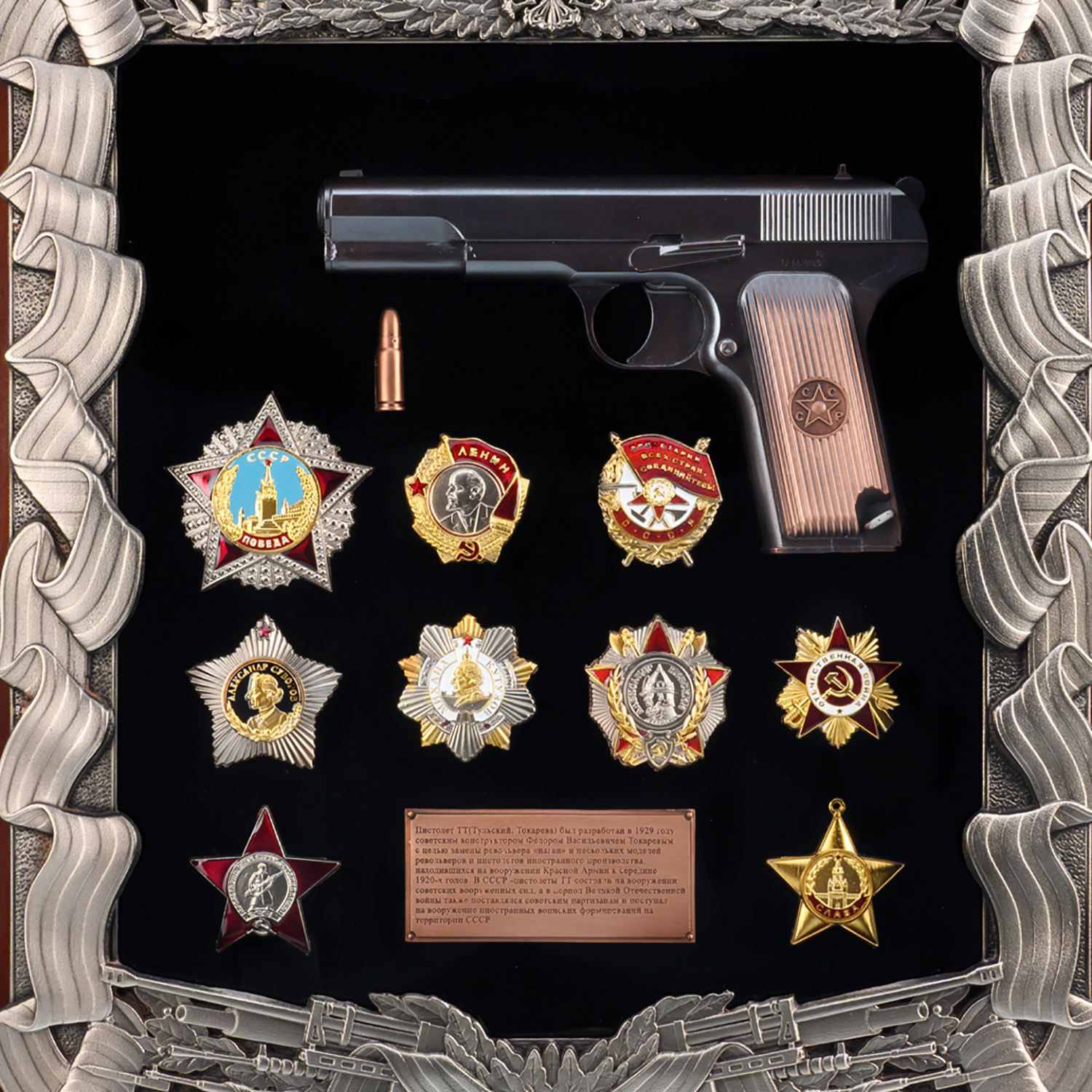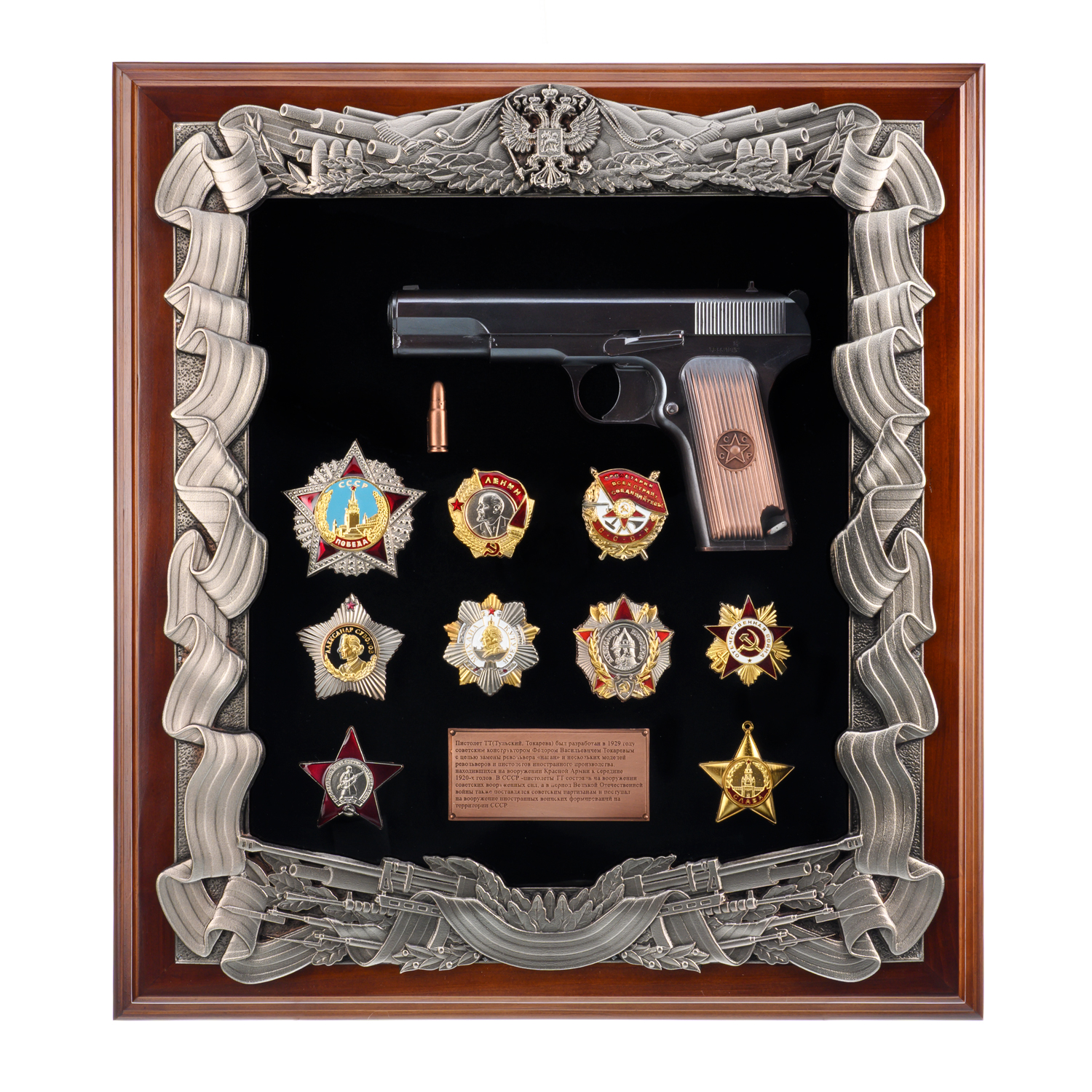 Панно "Пистолет ТТ с наградами ВОВ". Гальванопластика 44х40 см