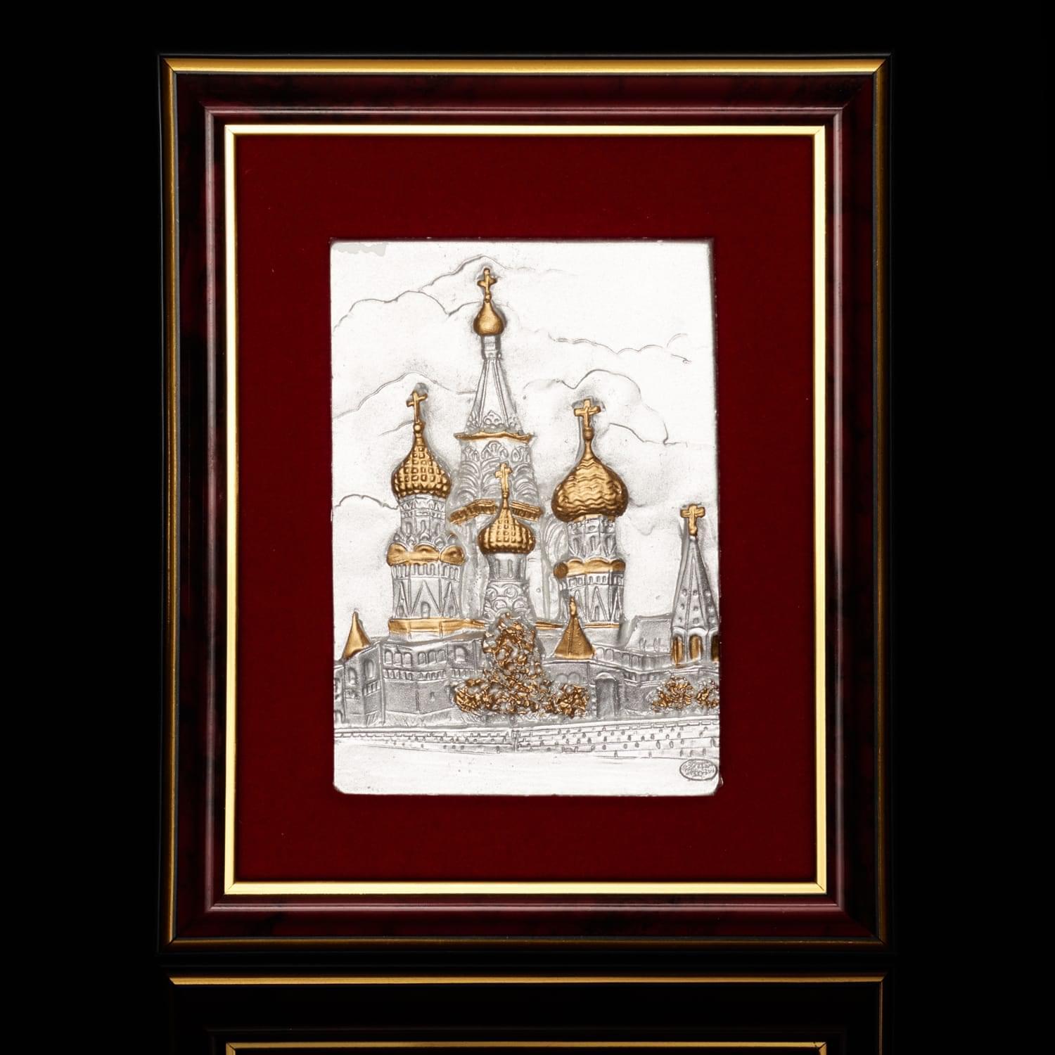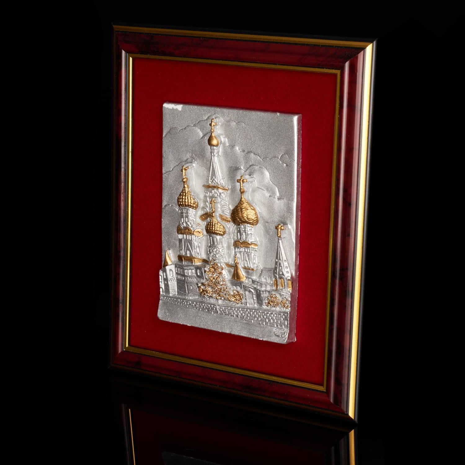 Панно "Храм Василия Блаженного". Чёрно-белая пластина с золотыми куполами 17 х 21 см