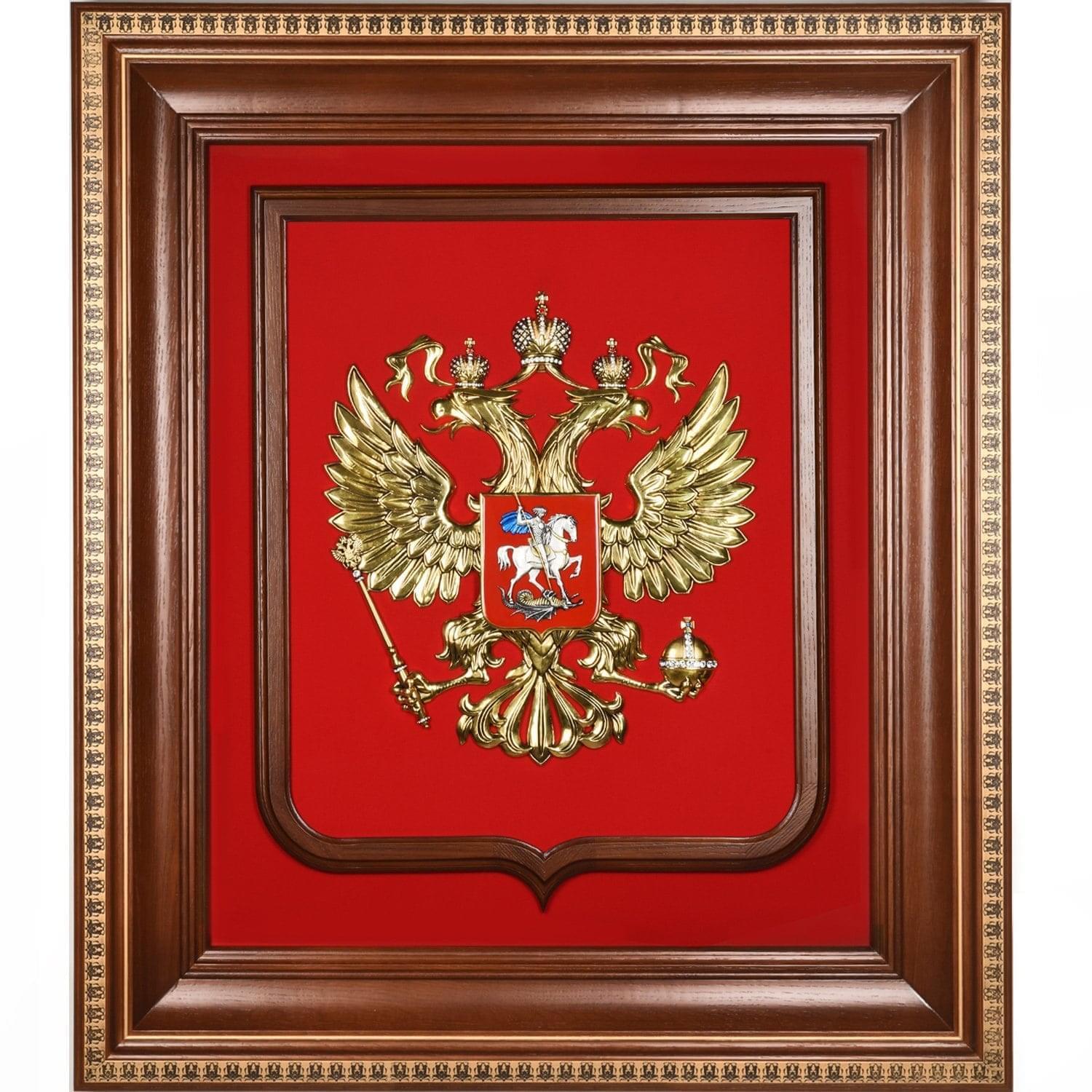 Герб России представляет четырехугольный, с закругленными нижними углами, заостренный в оконечности красный геральдический щит с золотым двуглавым орлом, поднявшим вверх расправленные крылья. Орел увенчан двумя малыми коронами и - над ними - одной большой короной, соединенными лентой. В правой лапе орла - скипетр, в левой - держава. На груди орла, в красном щите, - серебряный всадник в синем плаще на серебряном коне, поражающий серебряным копьем черного, опрокинутого навзничь и попранного конем дракона. Впервые двуглавый орел в качестве государственного символа Русского государства встречается на оборотной стороне государственной печати Ивана III Васильевича в 1497 году, хотя изображения двуглавого орла встречались в древнерусском искусстве и на тверских монетах и раньше. В 1672 году был составлен первый русский гербовник «Титулярник». Двуглавый орел именовался гербом «Московским». Герб Российской империи один из самых сложных гербов за всю историю государств мира. Сформировался в 1883 году. ....Извините, товар отсутствует