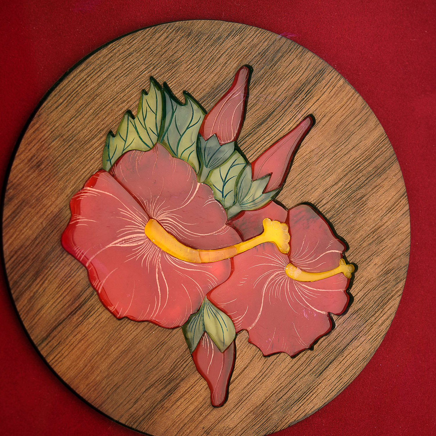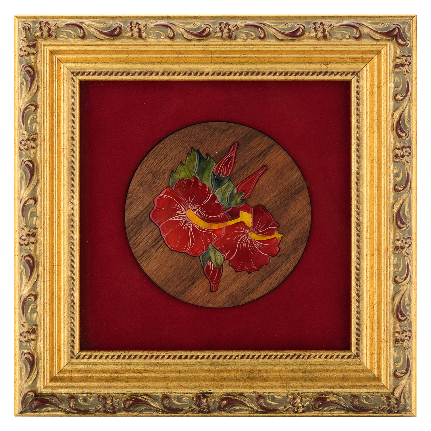 Панно янтарное "Гибискус" 22,5 х 22,5 см