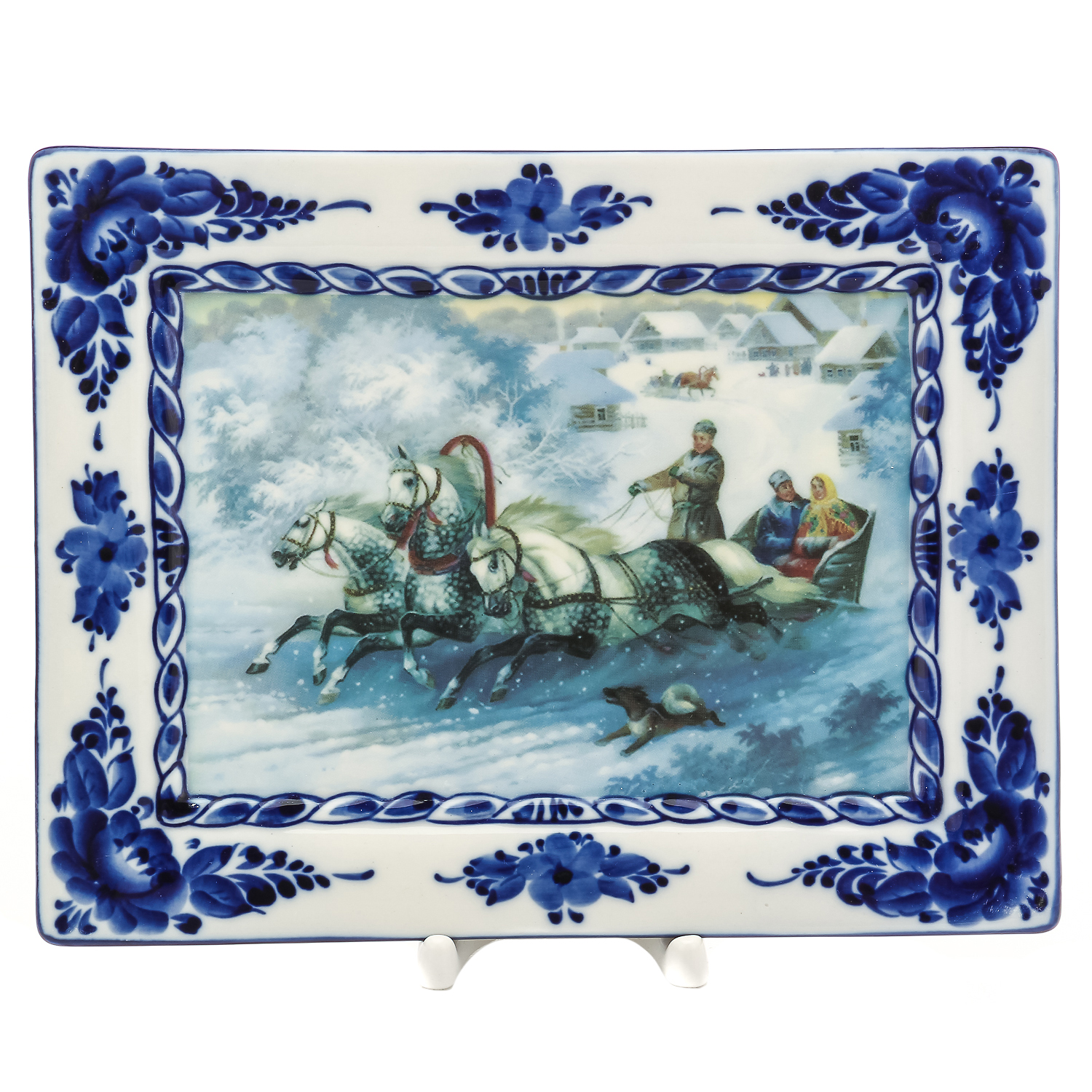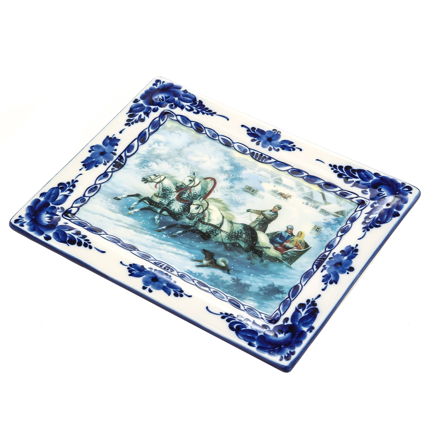 006394 Гжель Плакетка "ПЕЙЗАЖ В РАМКЕ", деколь №14