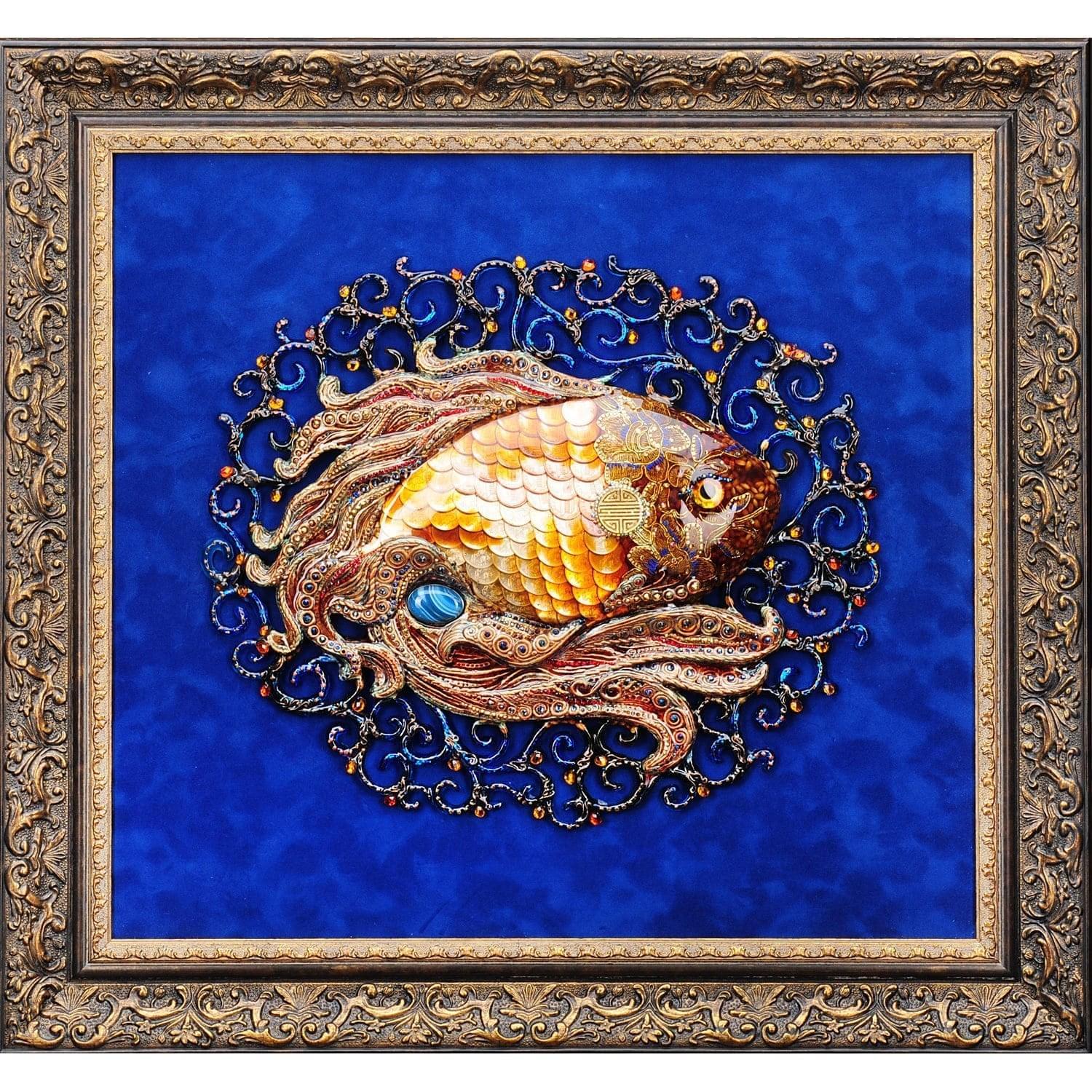 0039518-60*55см ПАННО настенное в багете"РЫБА ДЕНЕЖНАЯ " эп.смола. монеты. ....Извините, товар отсутствует