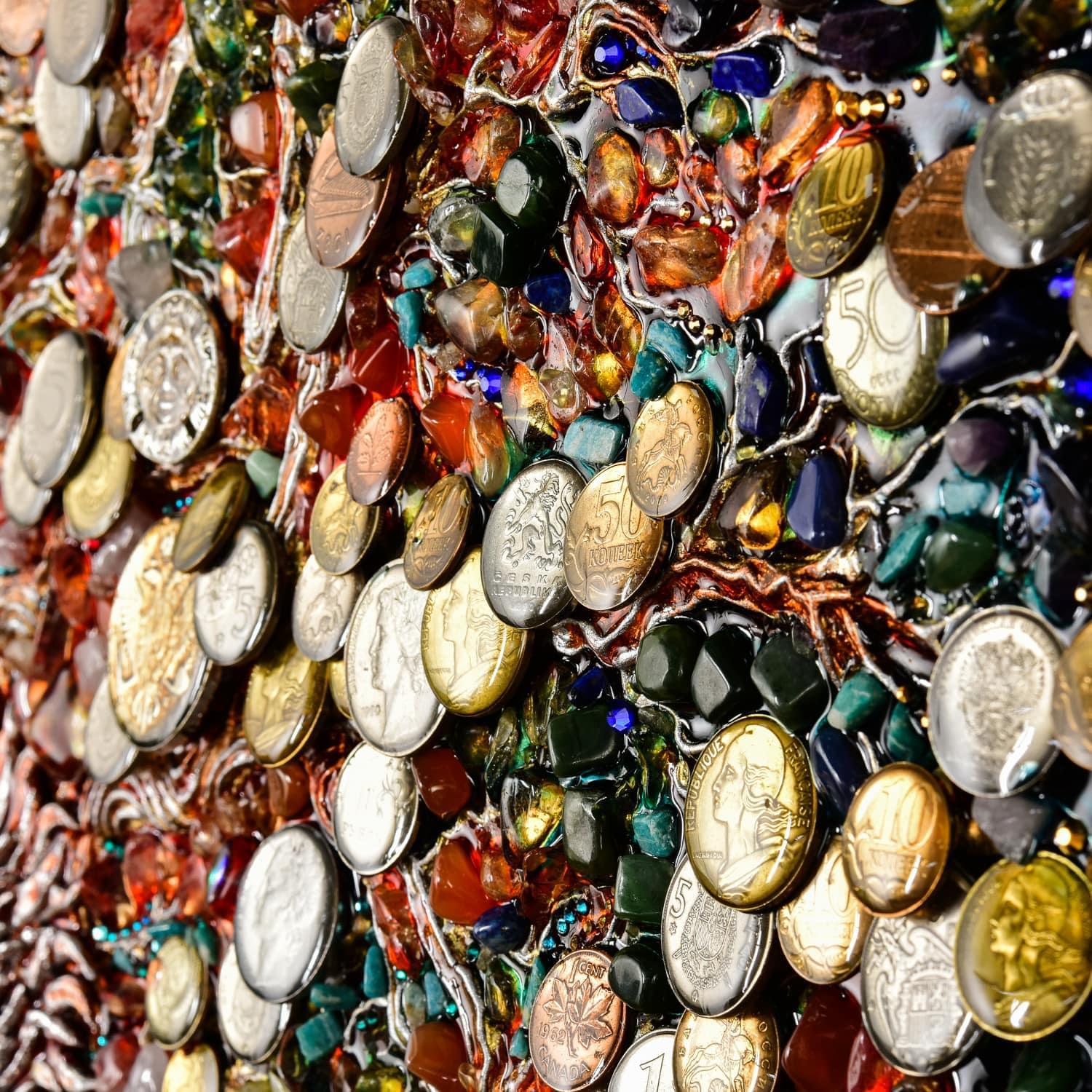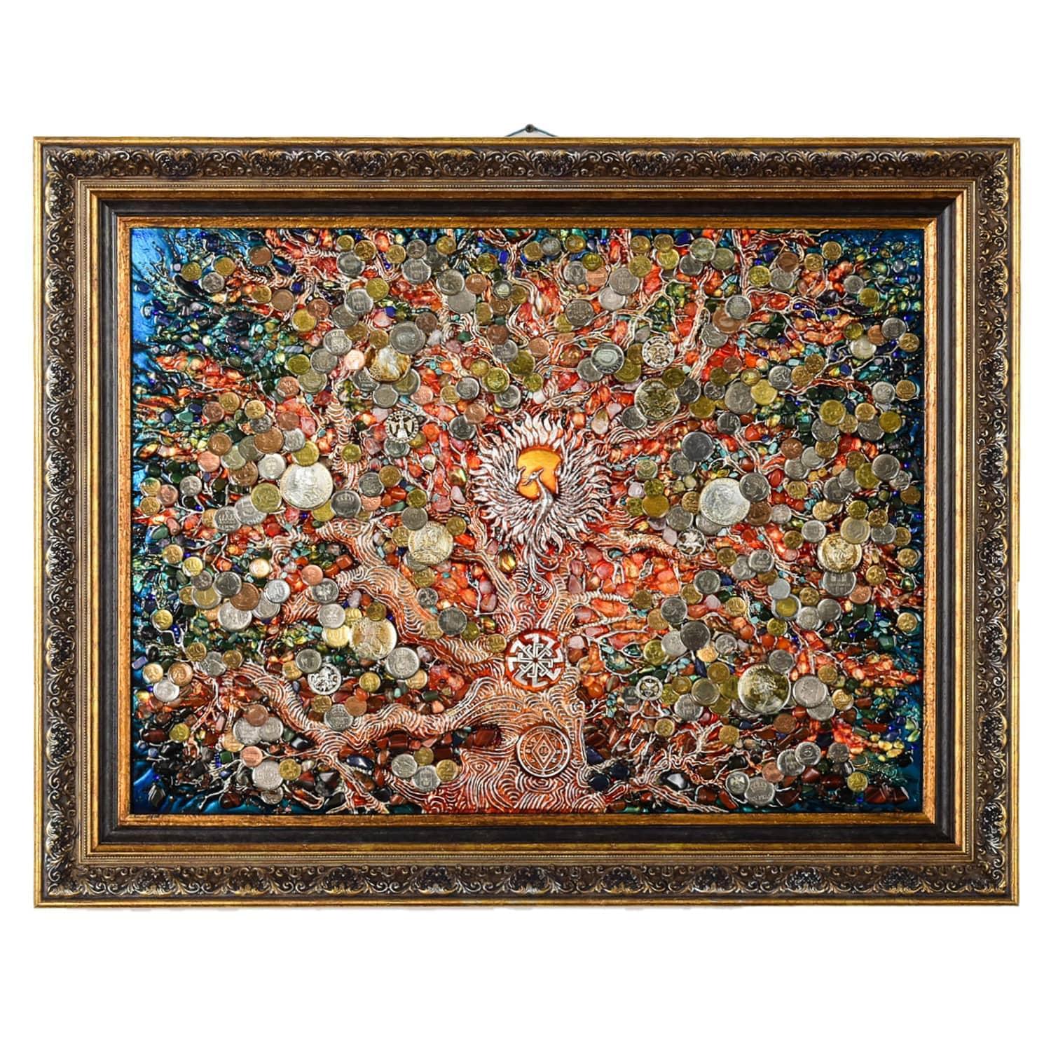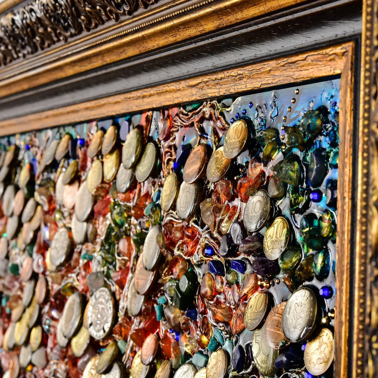 0026039 ПАННО "ДЕНЕЖНОЕ ДЕРЕВО" эп.смола. монеты. в багете ..