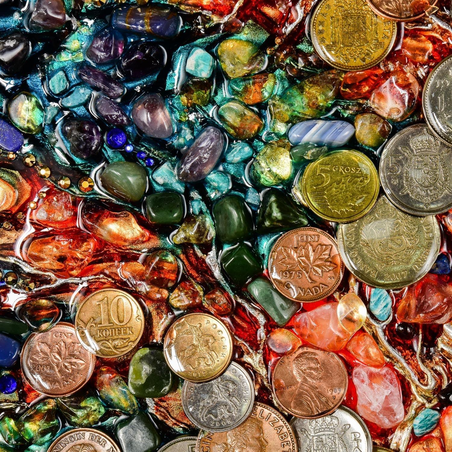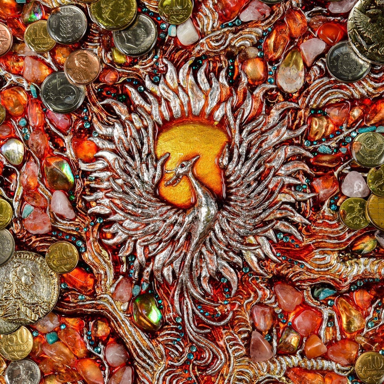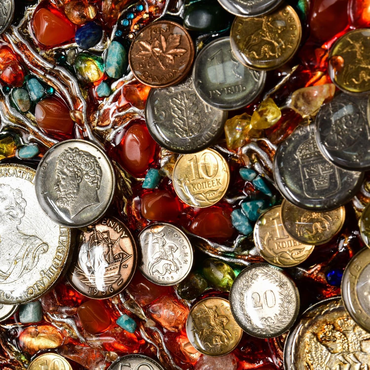 0026039 ПАННО "ДЕНЕЖНОЕ ДЕРЕВО" эп.смола. монеты. в багете ..