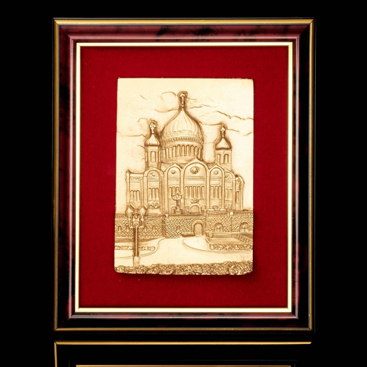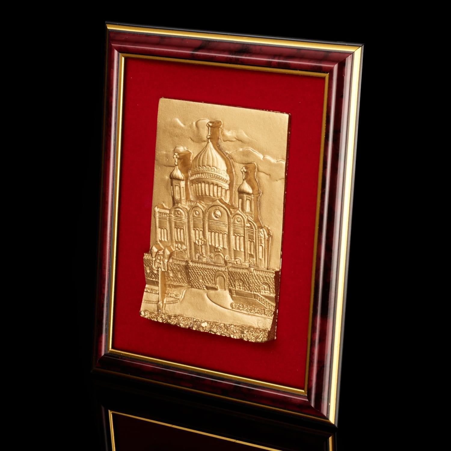 Панно "Храм Христа Спасителя". Золотая пластина 17 х 21 см