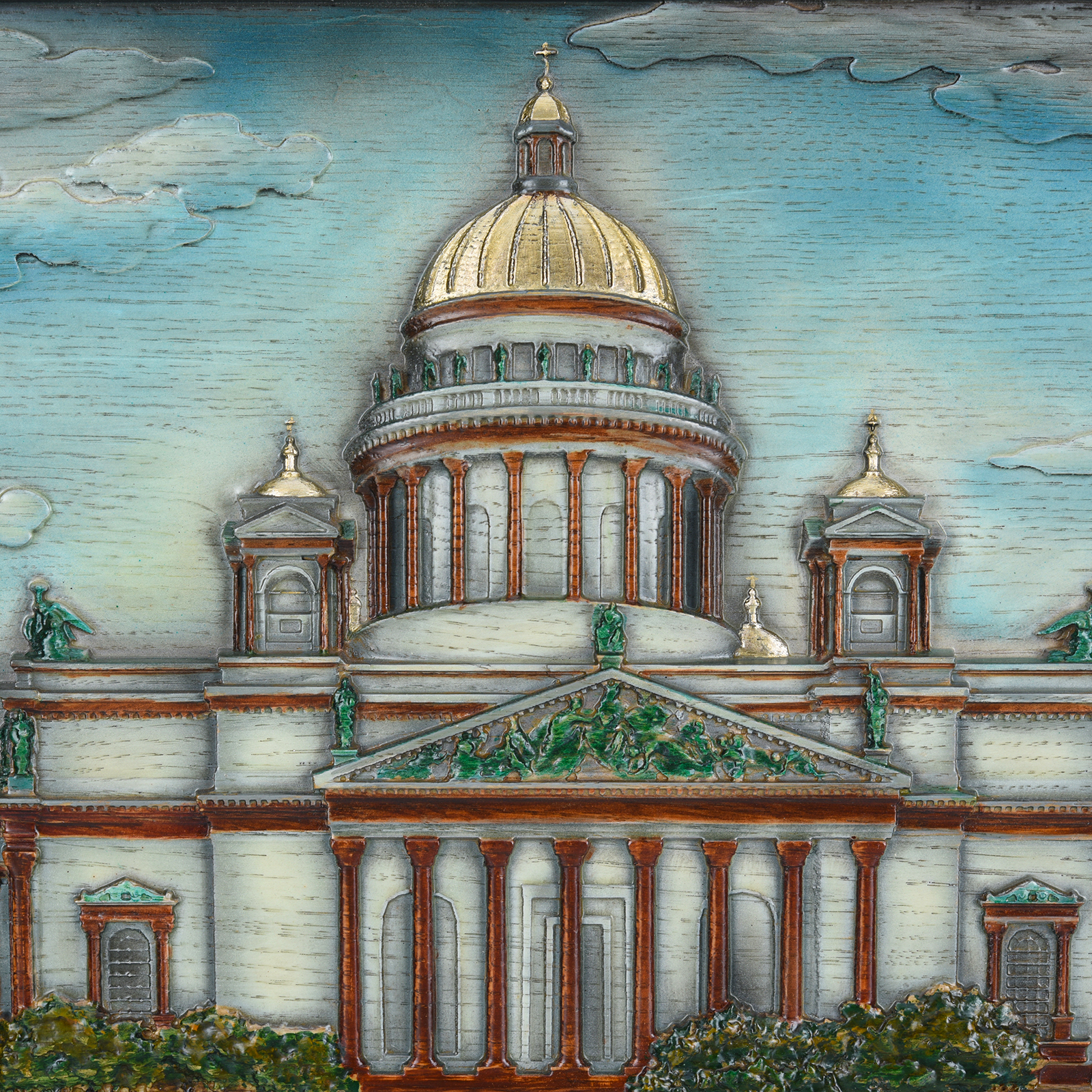 Панно деревянное "Исаакиевский собор".Материалы: дуб, краски, лак.
