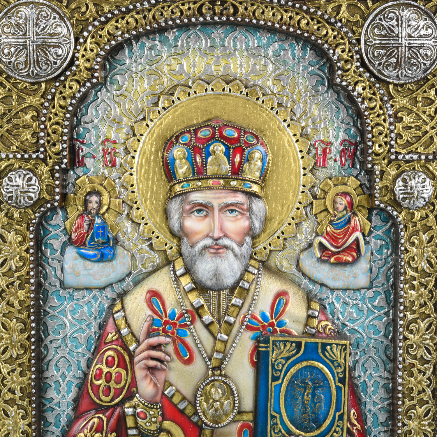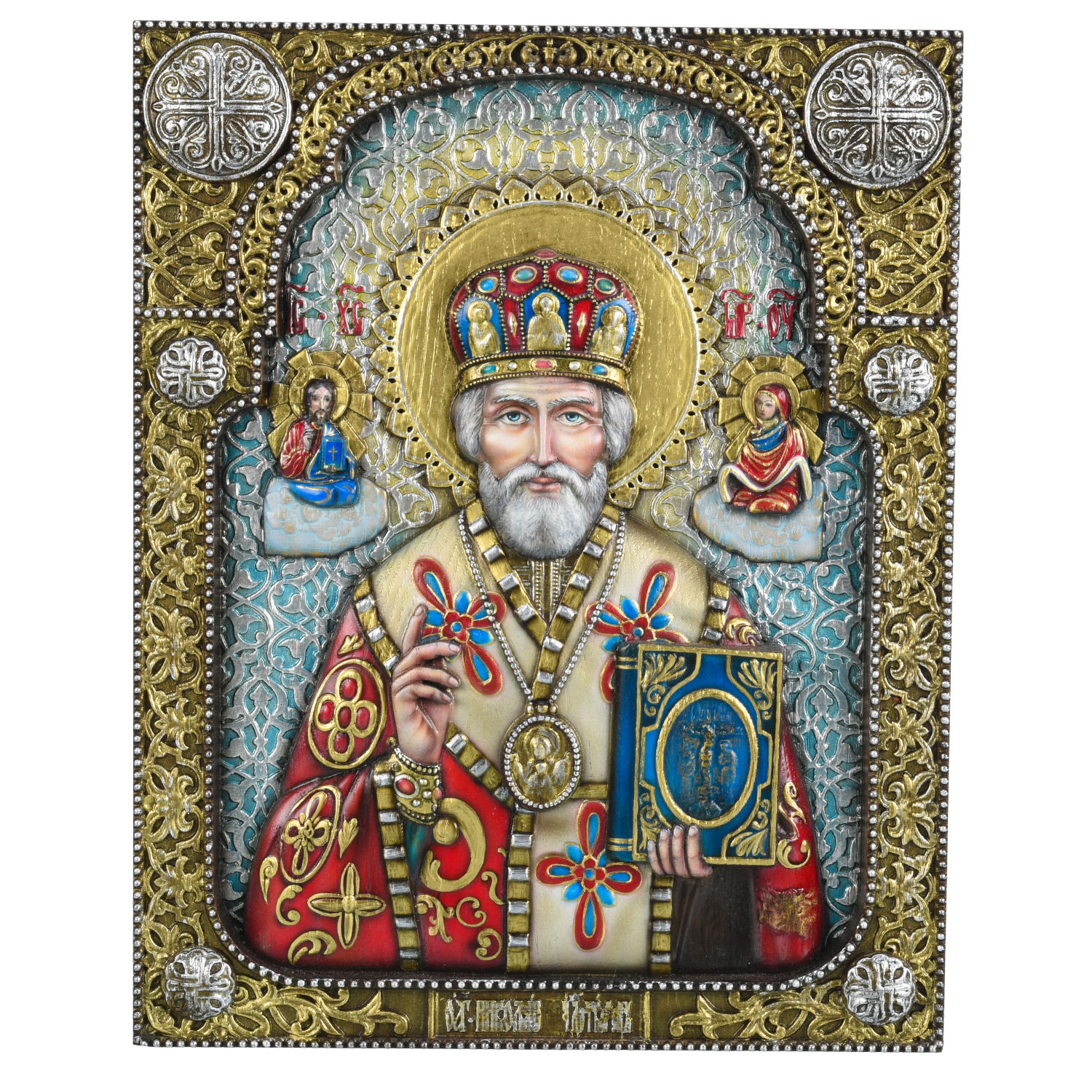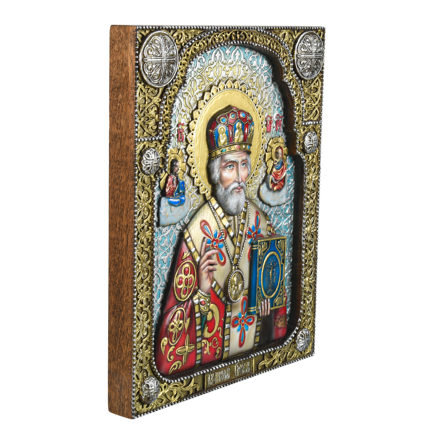 Панно деревянное резное "Николай Чудотворец" 28х35 см