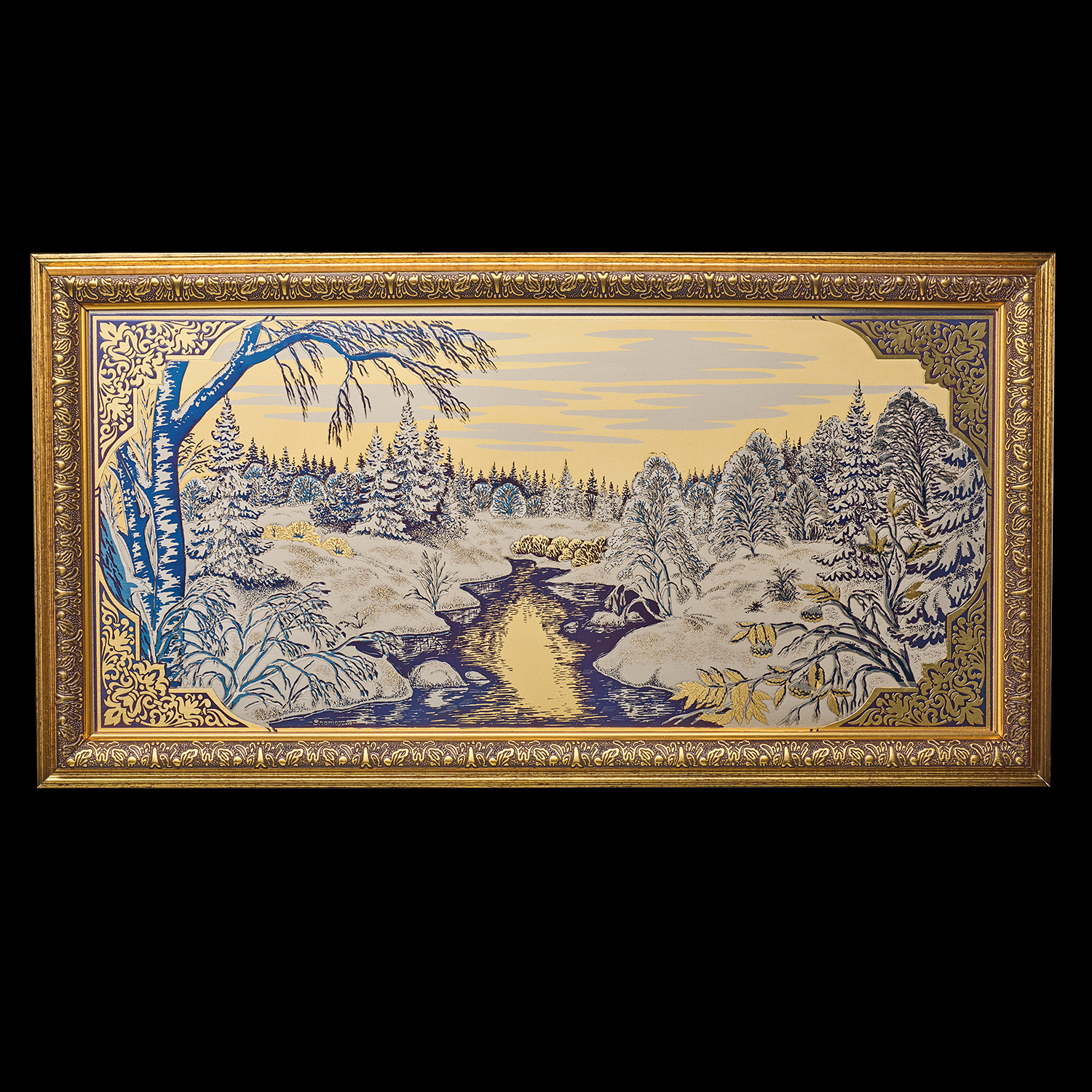 Панно-гравюра "Ранняя зима". Златоуст 55х29 см