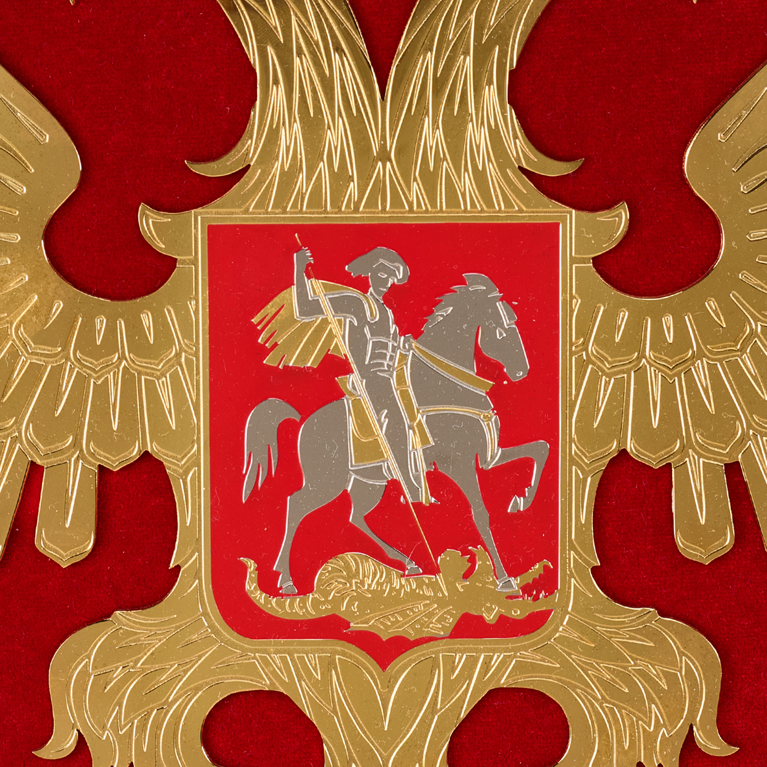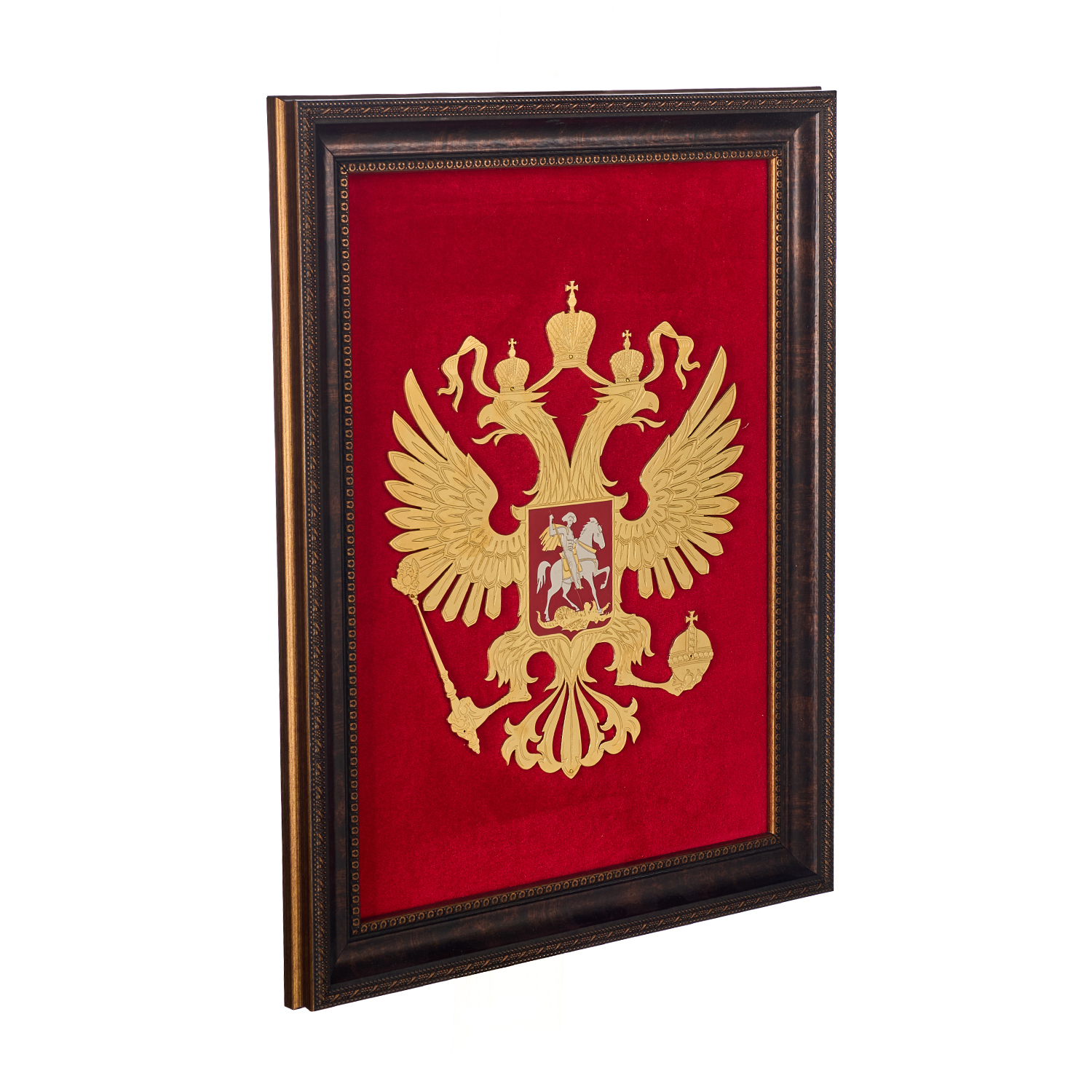Панно "Герб РФ". Златоуст.Материалы: латунь, никель, золото 999,9*, эмаль, бархат.