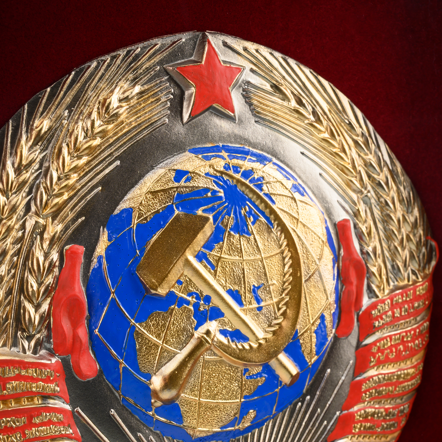 Русские подарки и сувениры → Интерьерные изделия → Панно → Панно "Герб СССР". Гальванопластика 28х34 см
