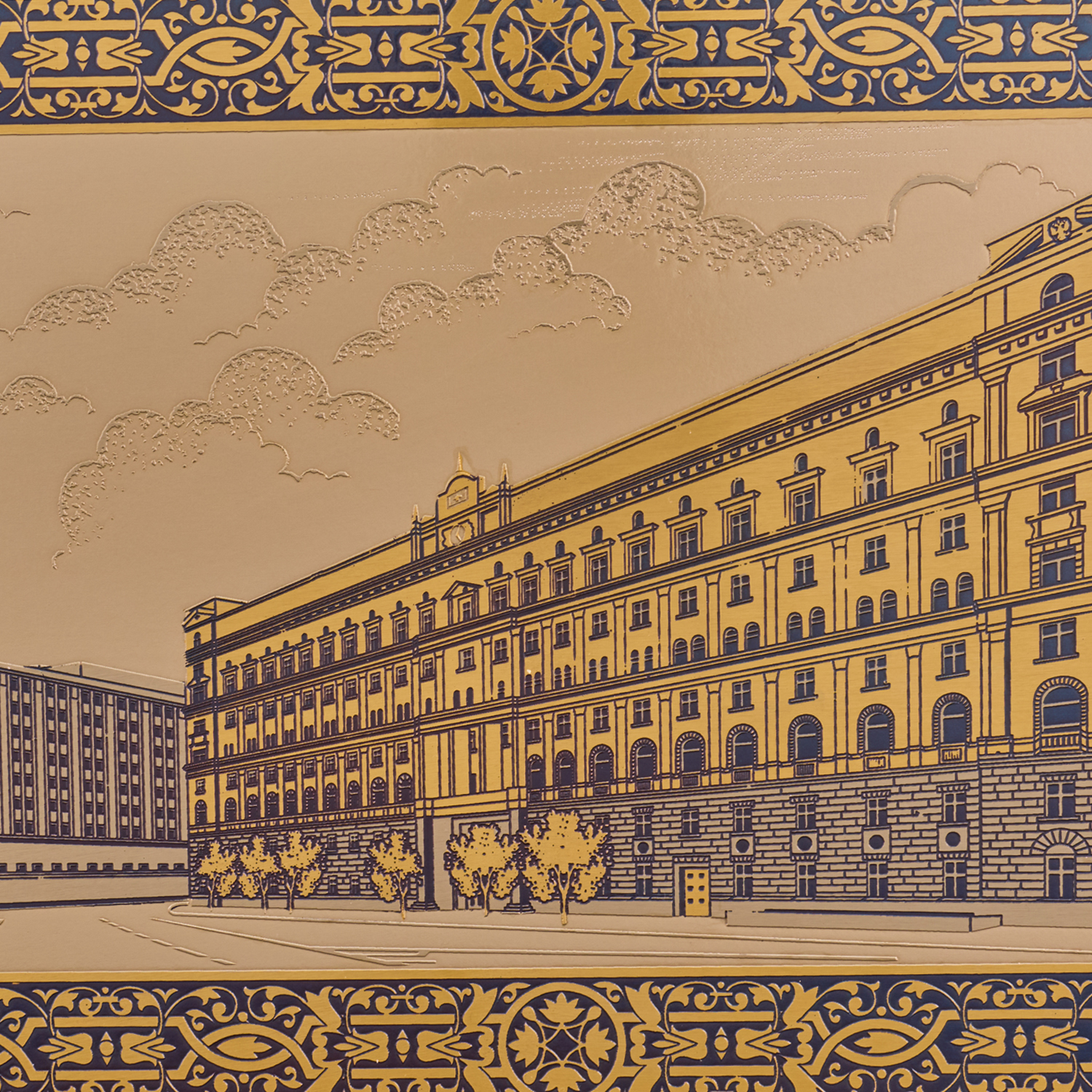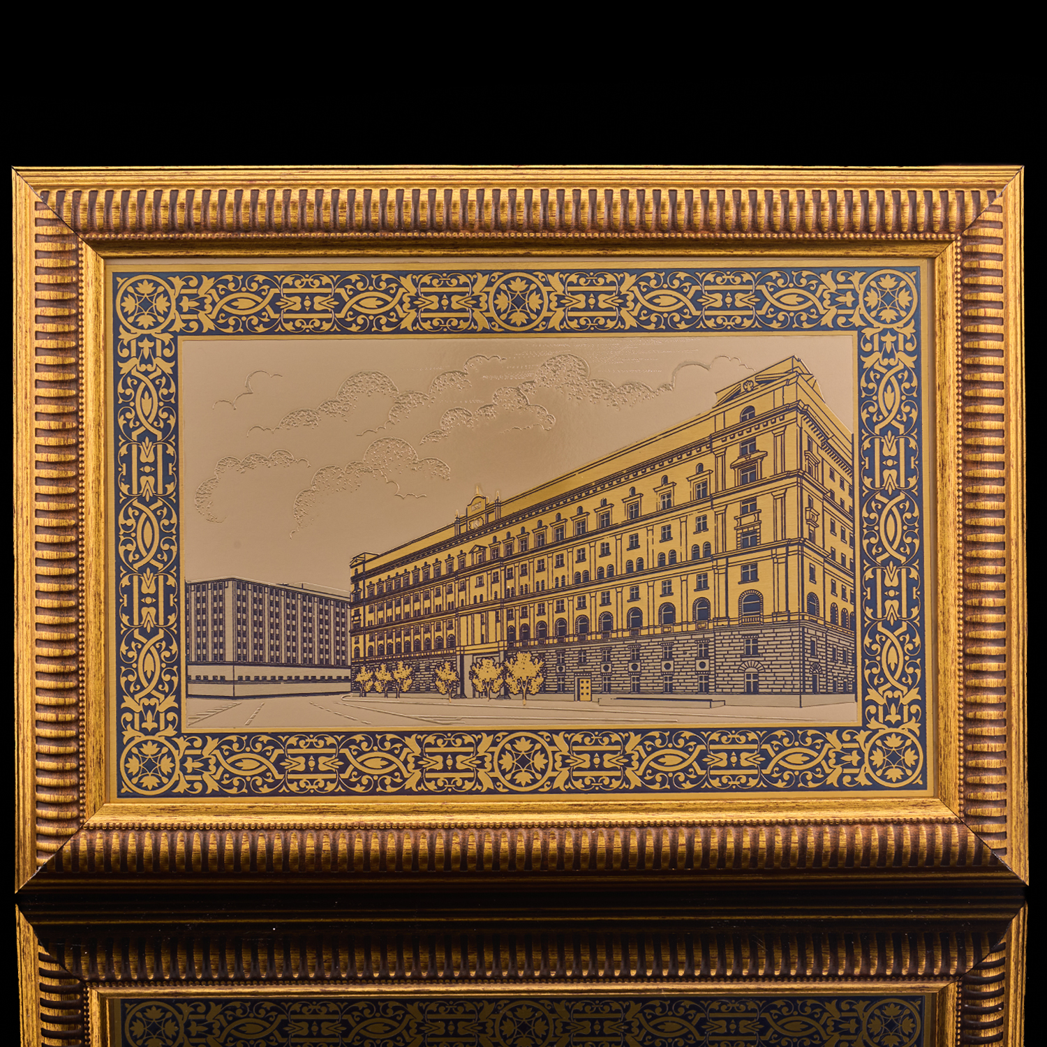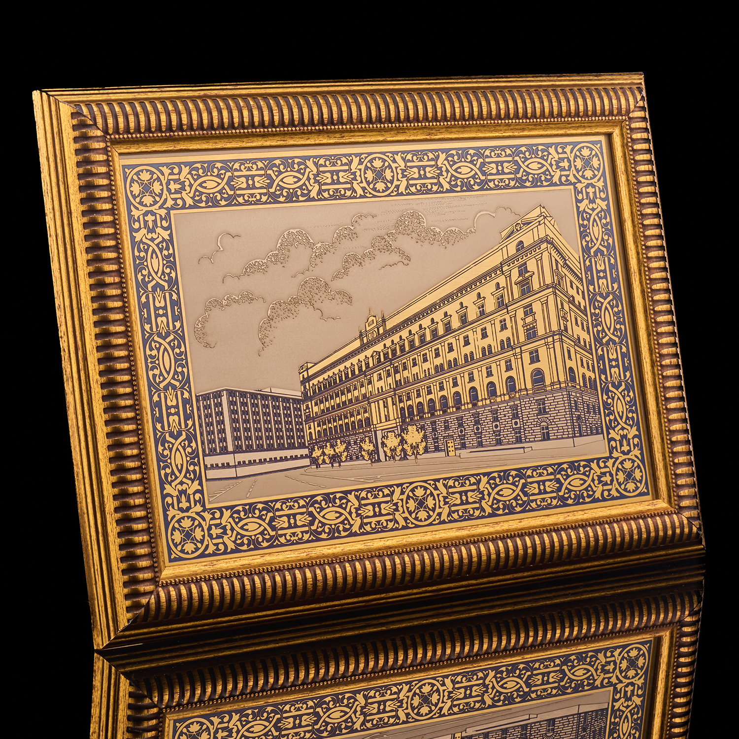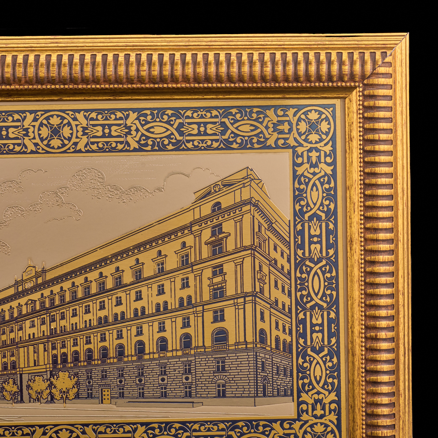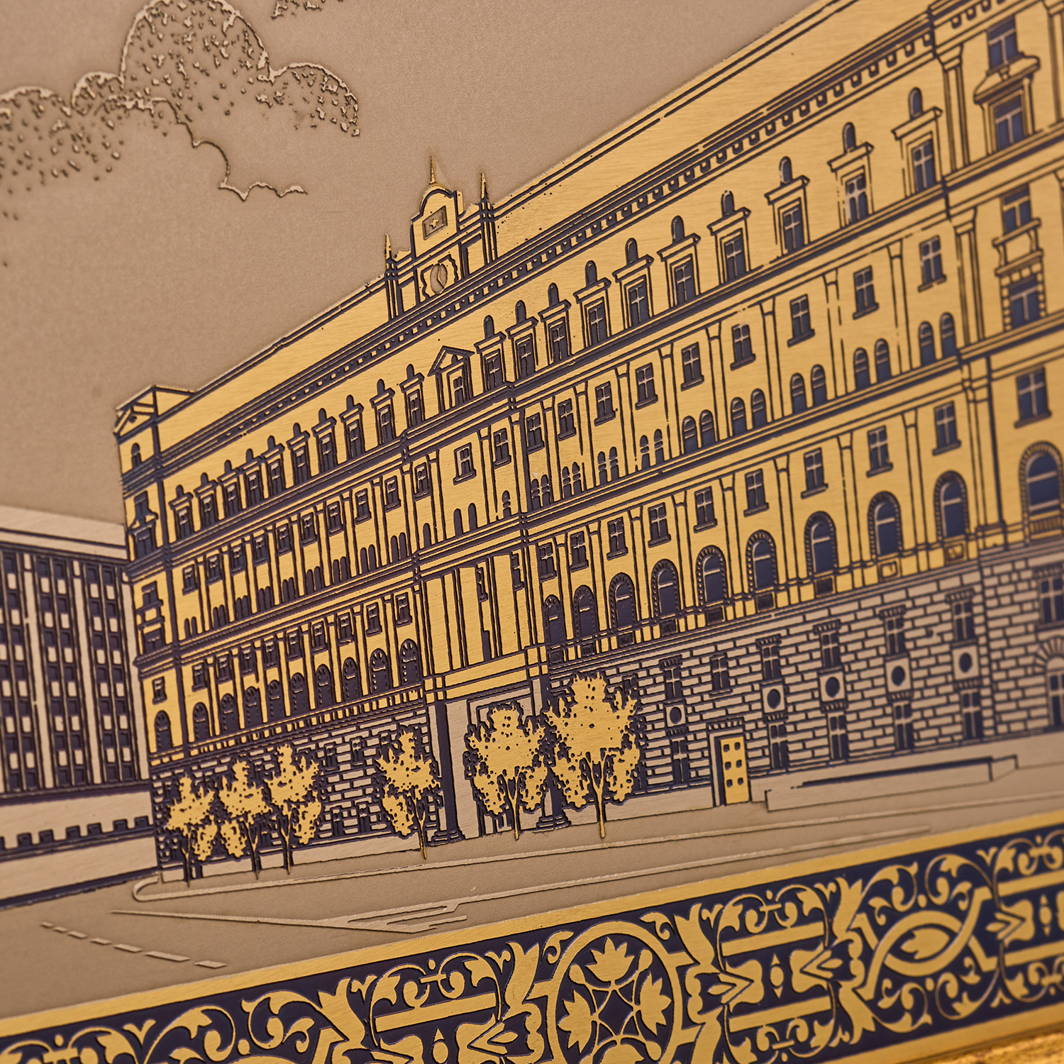 Панно "Лубянская площадь".Материалы: латунь, никель, золото 999,9*, эмаль, багетная рама.