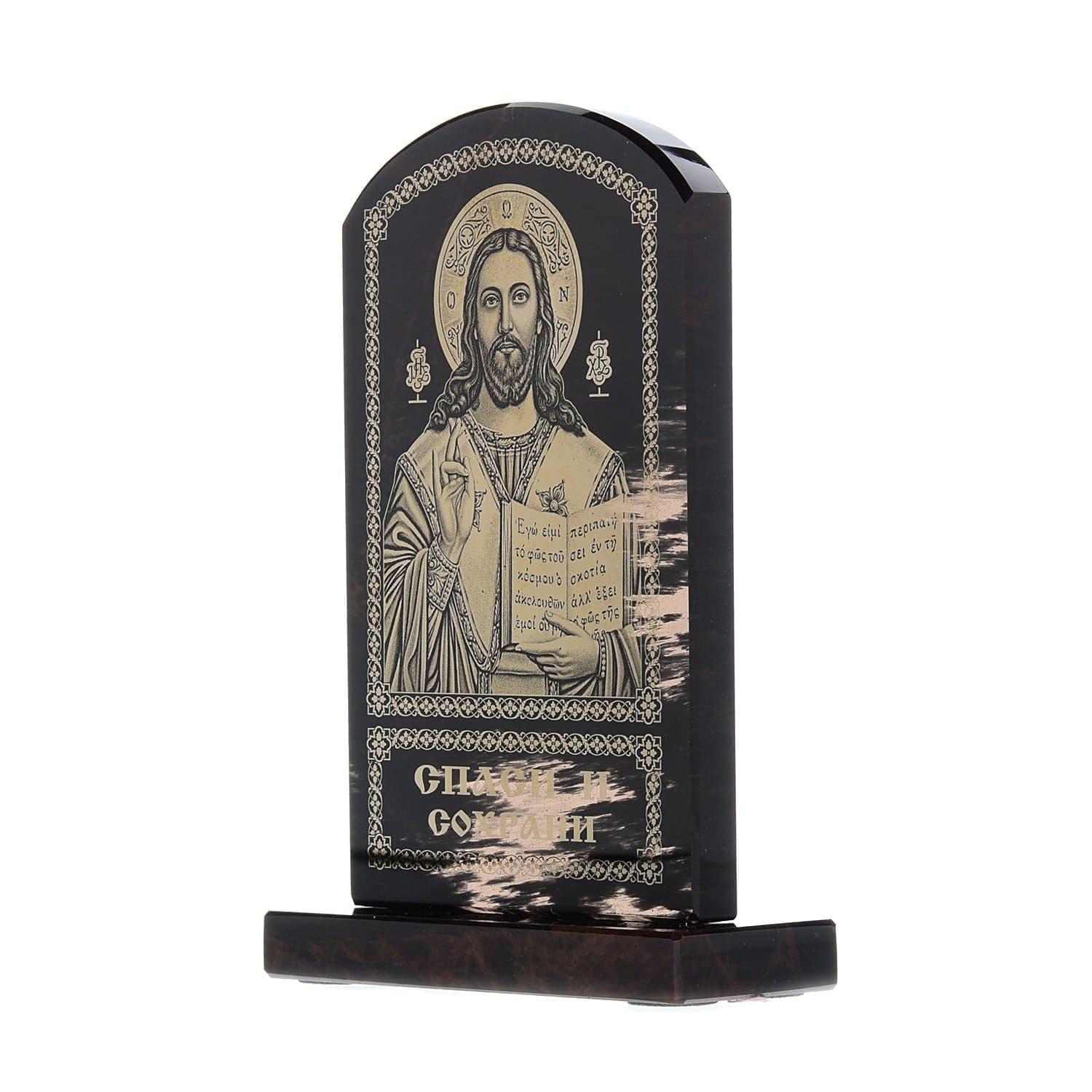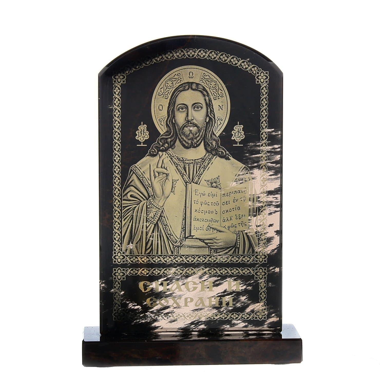 Панно-икона "Спаси и сохрани" из камня 7 х 10 см