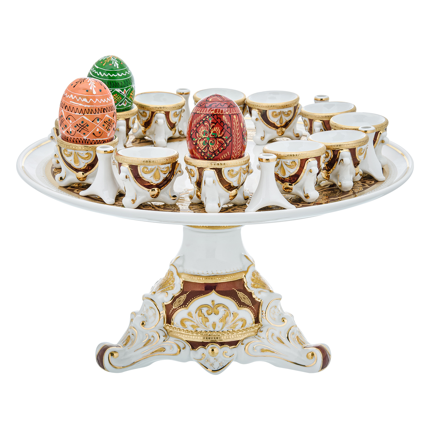 24111 Фарфор Кисловодск Пасхальница-Тортница "Бордо"в компл. с подставками под яйца
