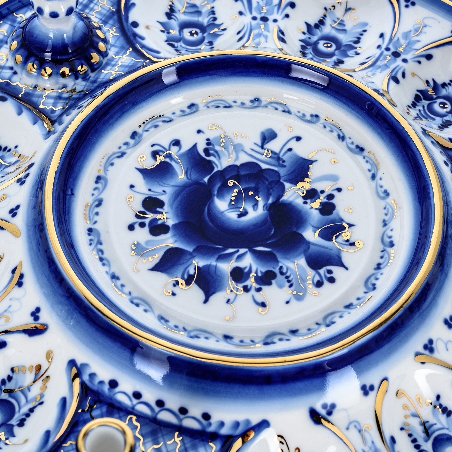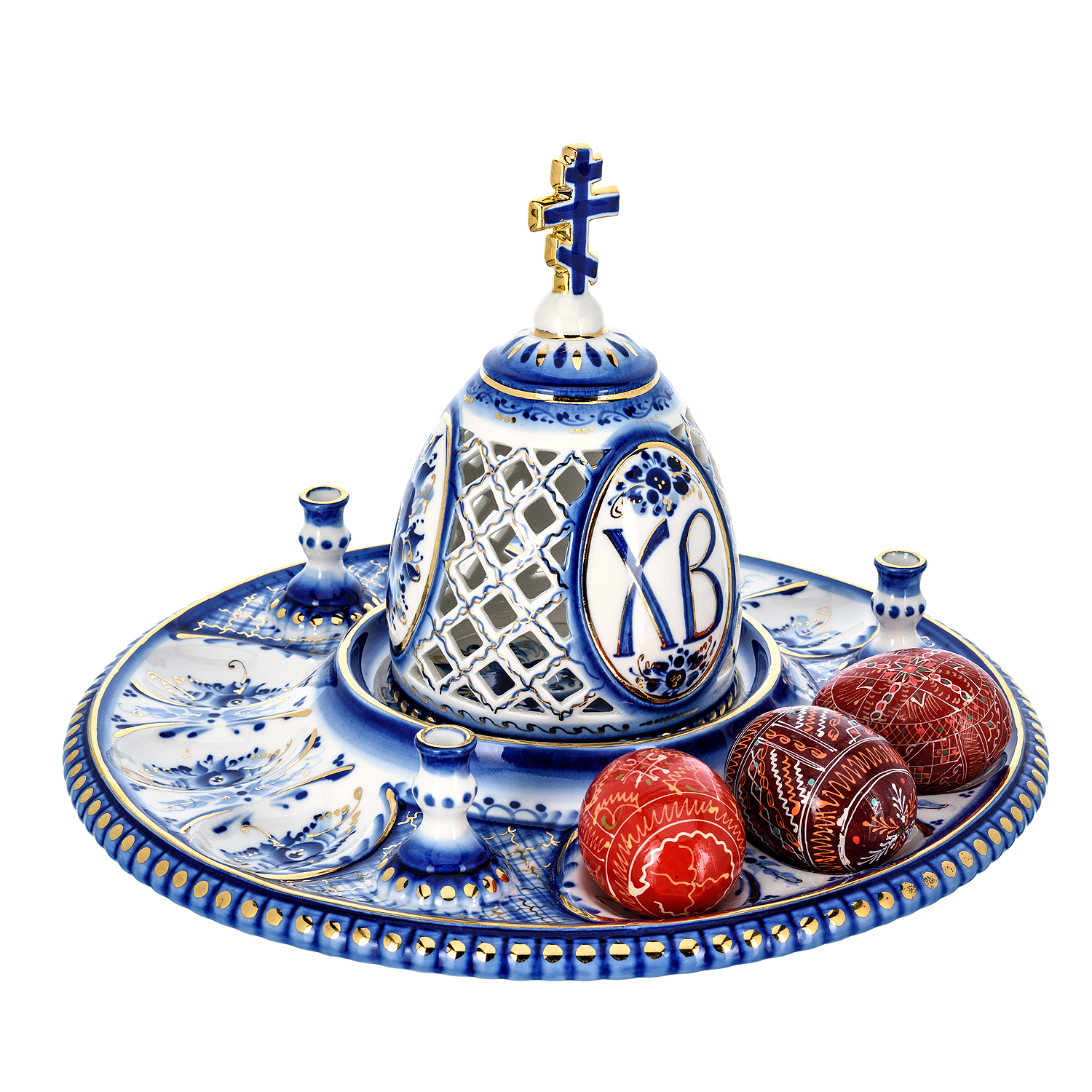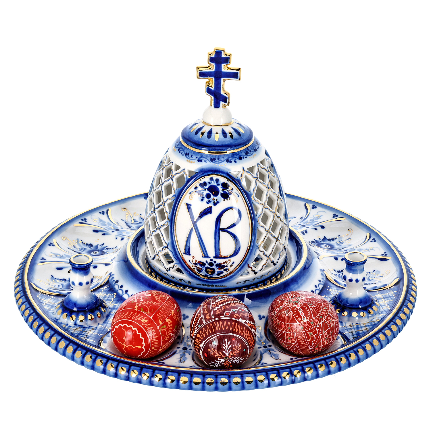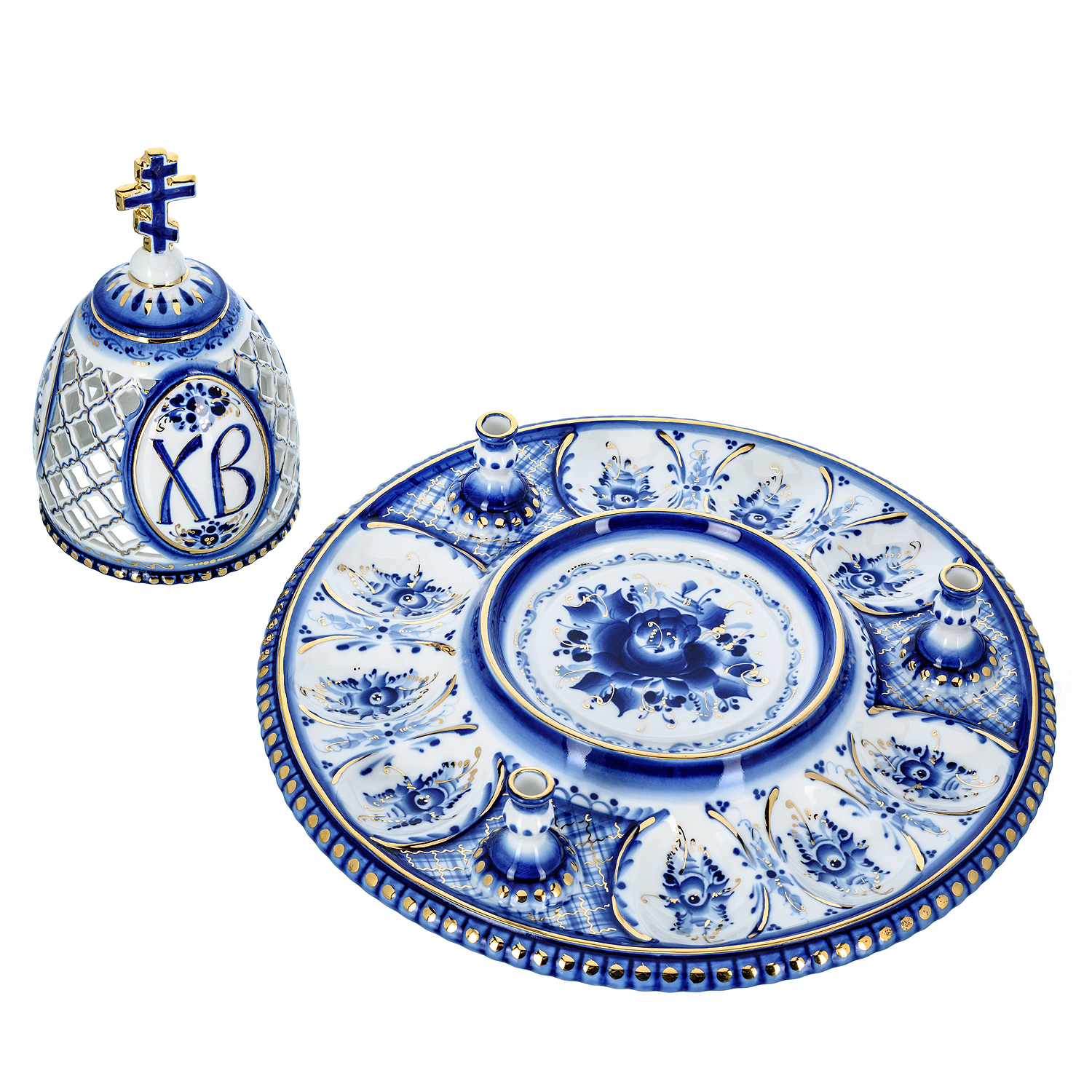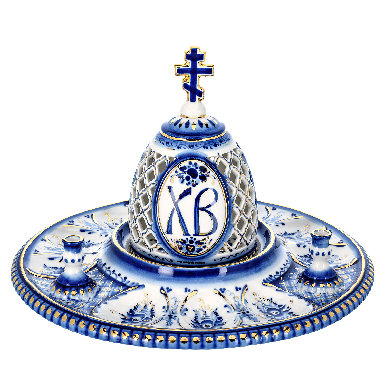 Русские подарки и сувениры → Посуда → Пасхальницы → Пасхальница с ажурной крышкой "Пасхалия". Гжель в золоте