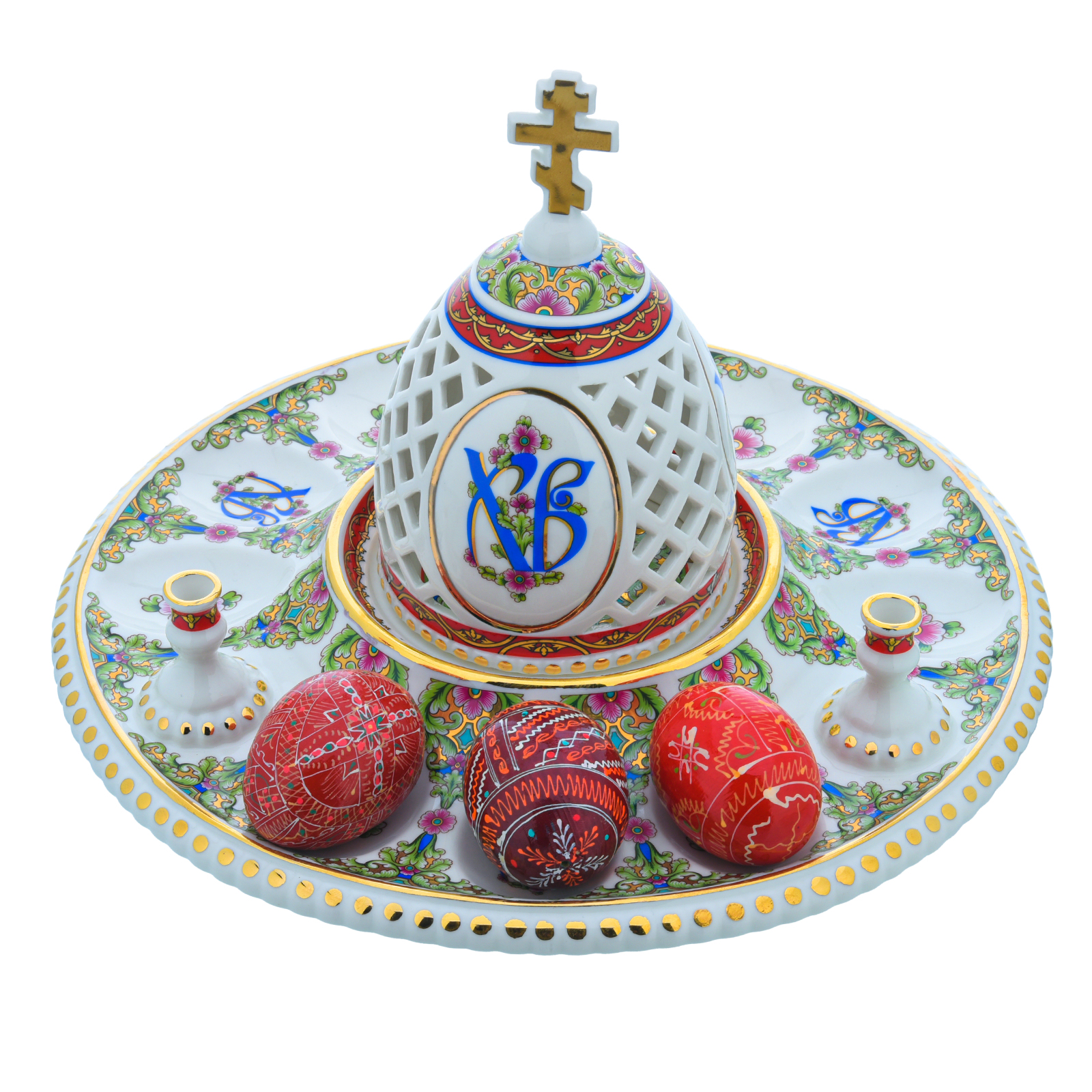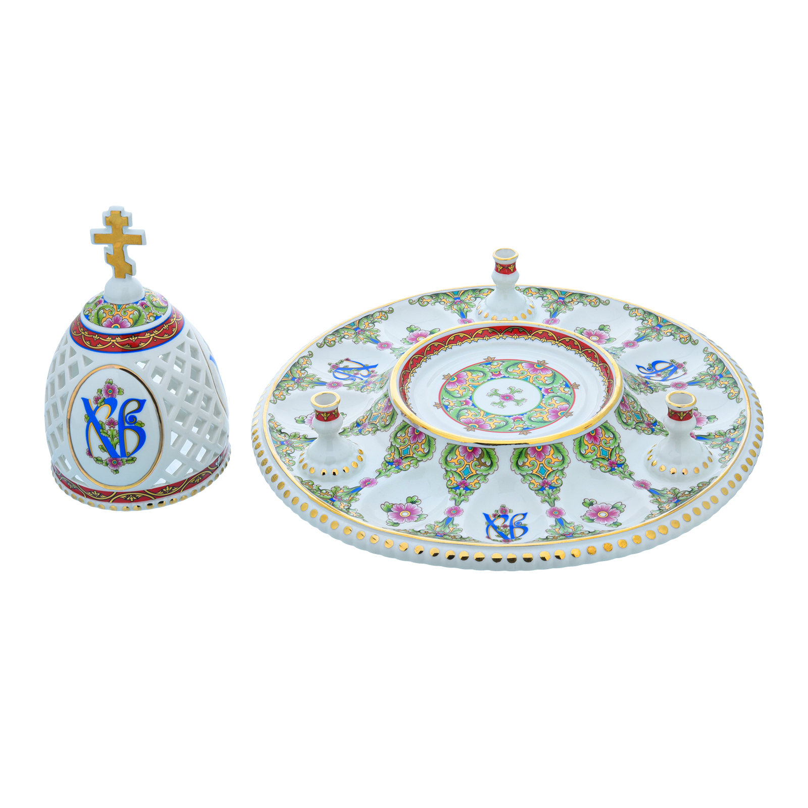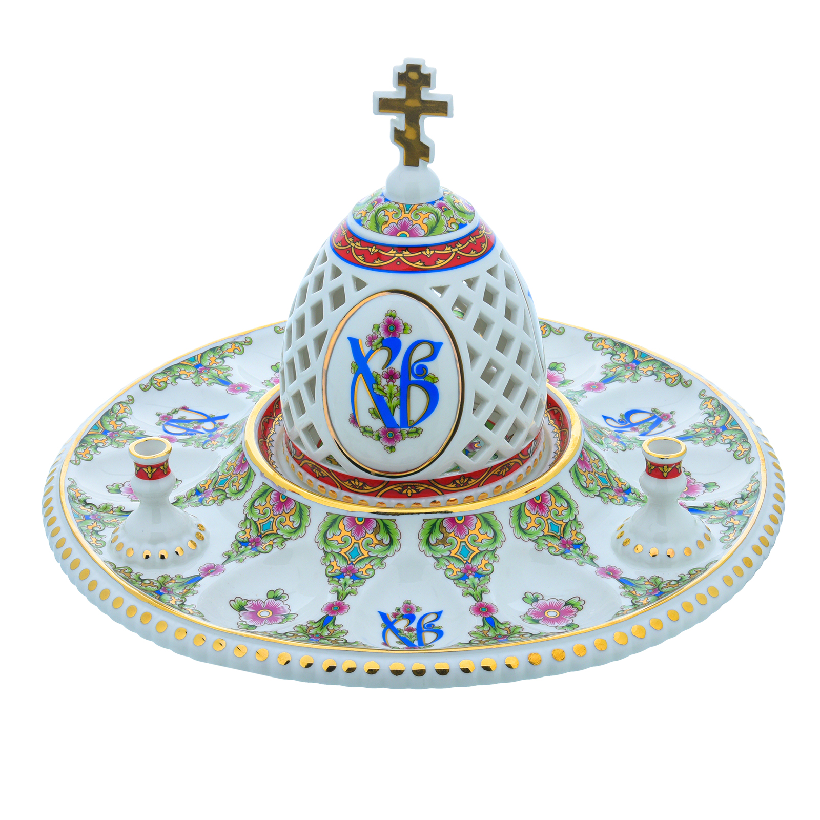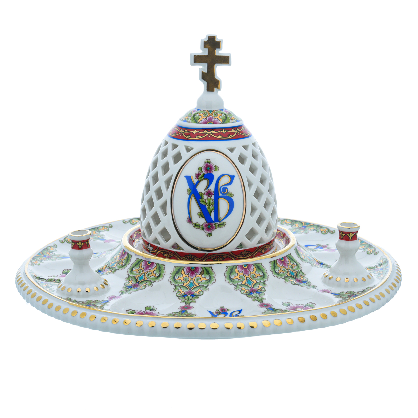 Русские подарки и сувениры → Посуда → Пасхальницы → Пасхальница с ажурной крышкой. Гжель в цвете и золоте