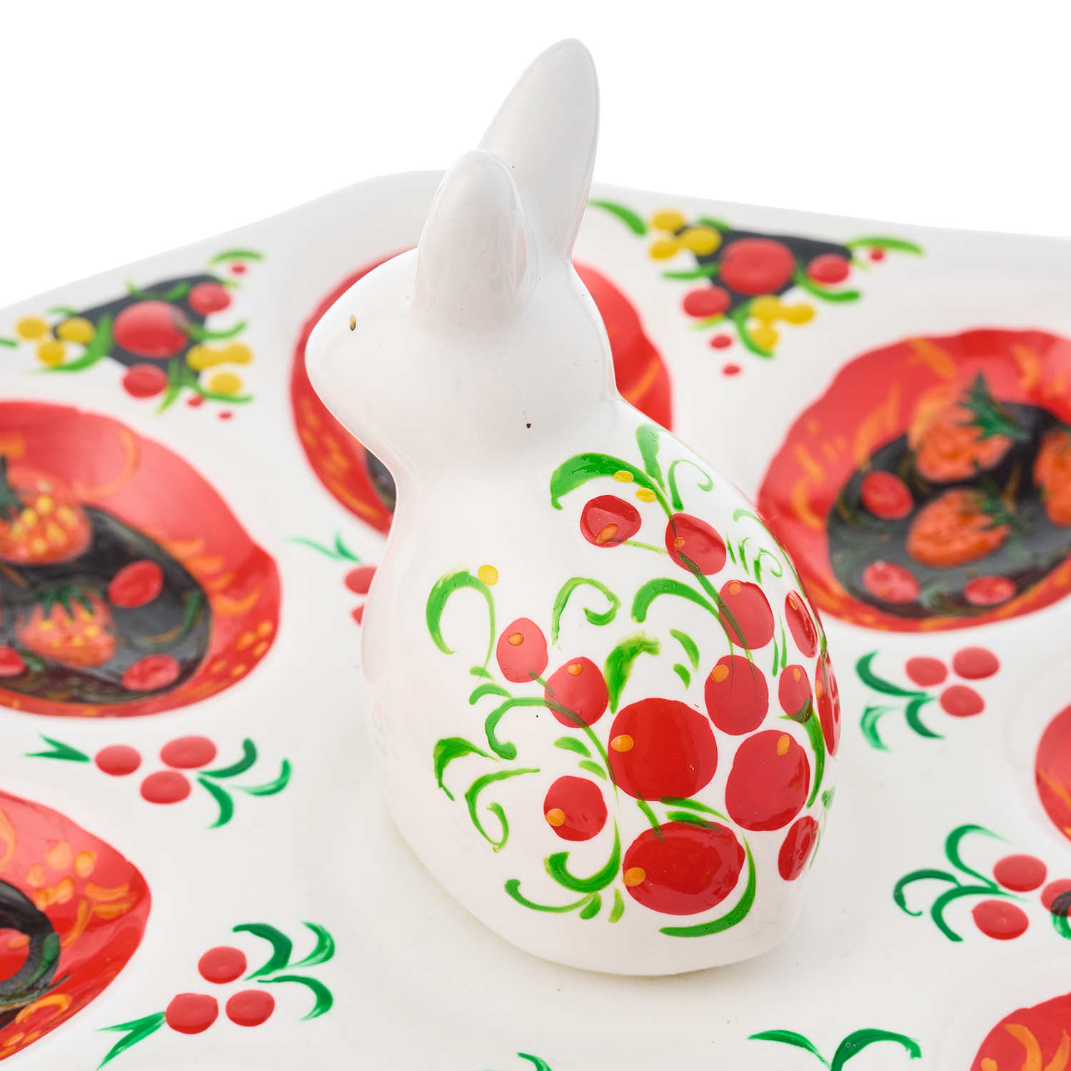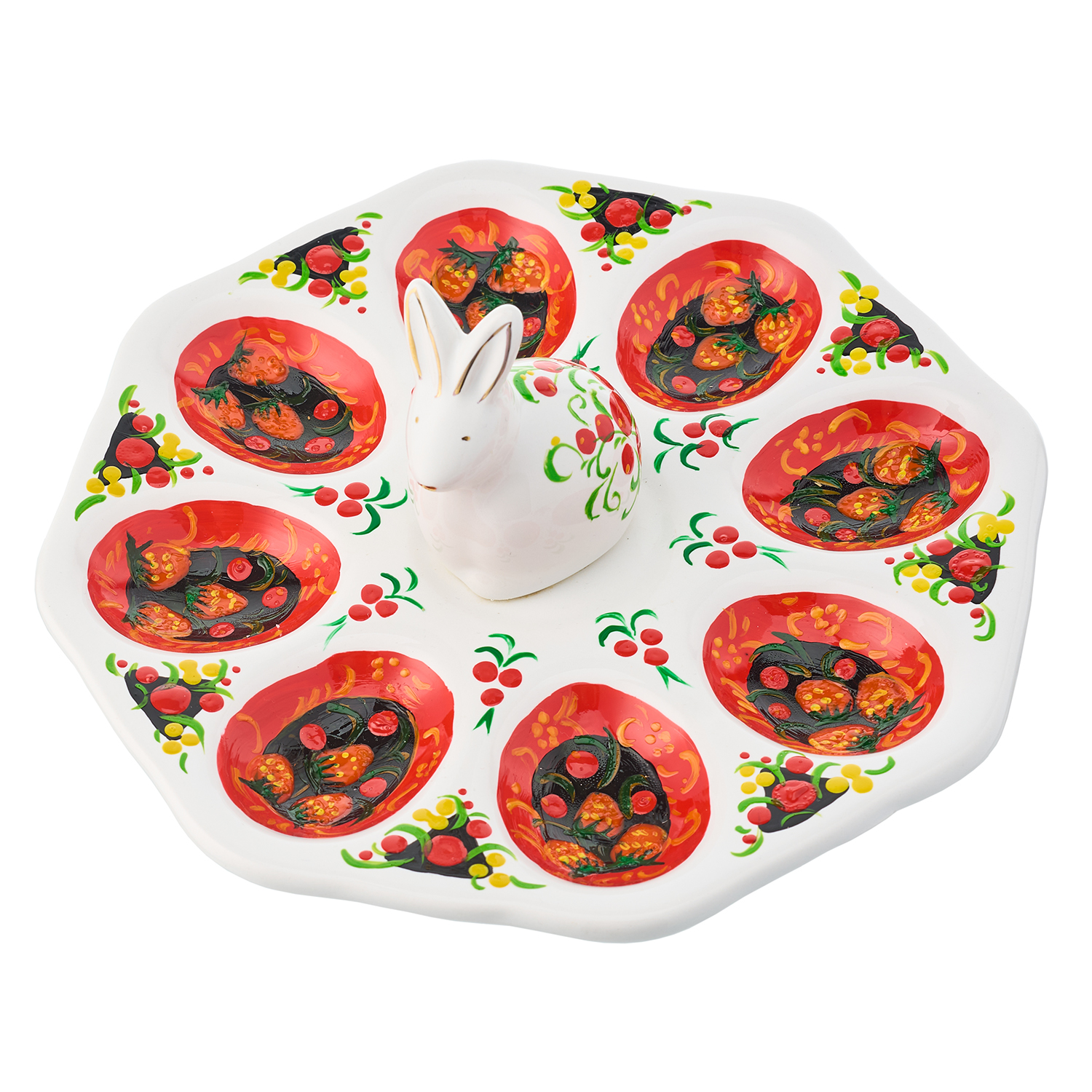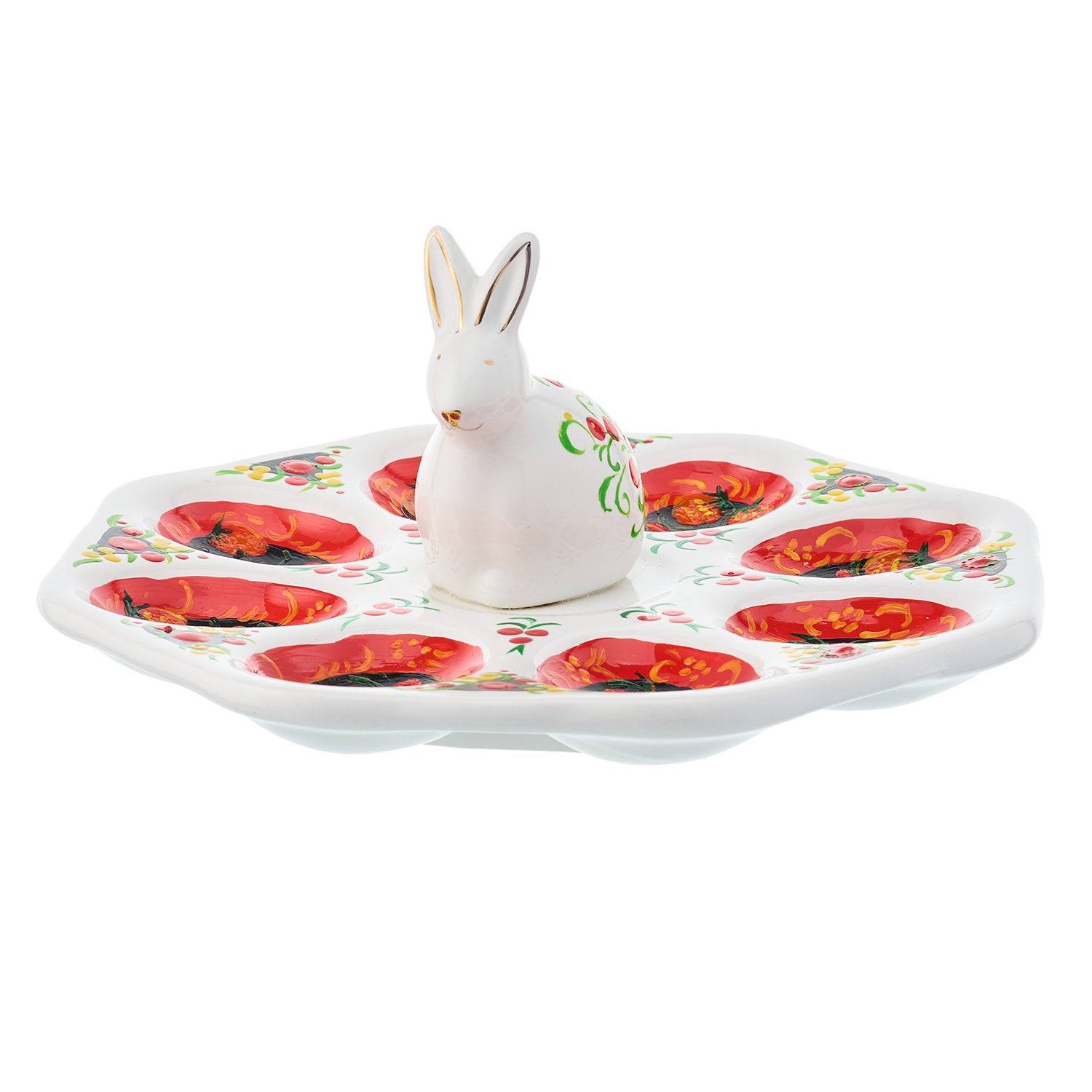 Тарелка-пасхальница с ручной росписью "Кролик" на 8 яиц