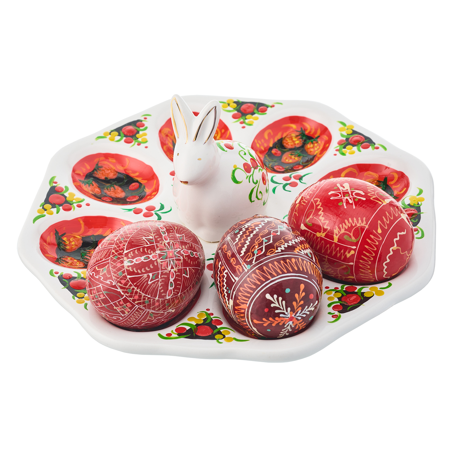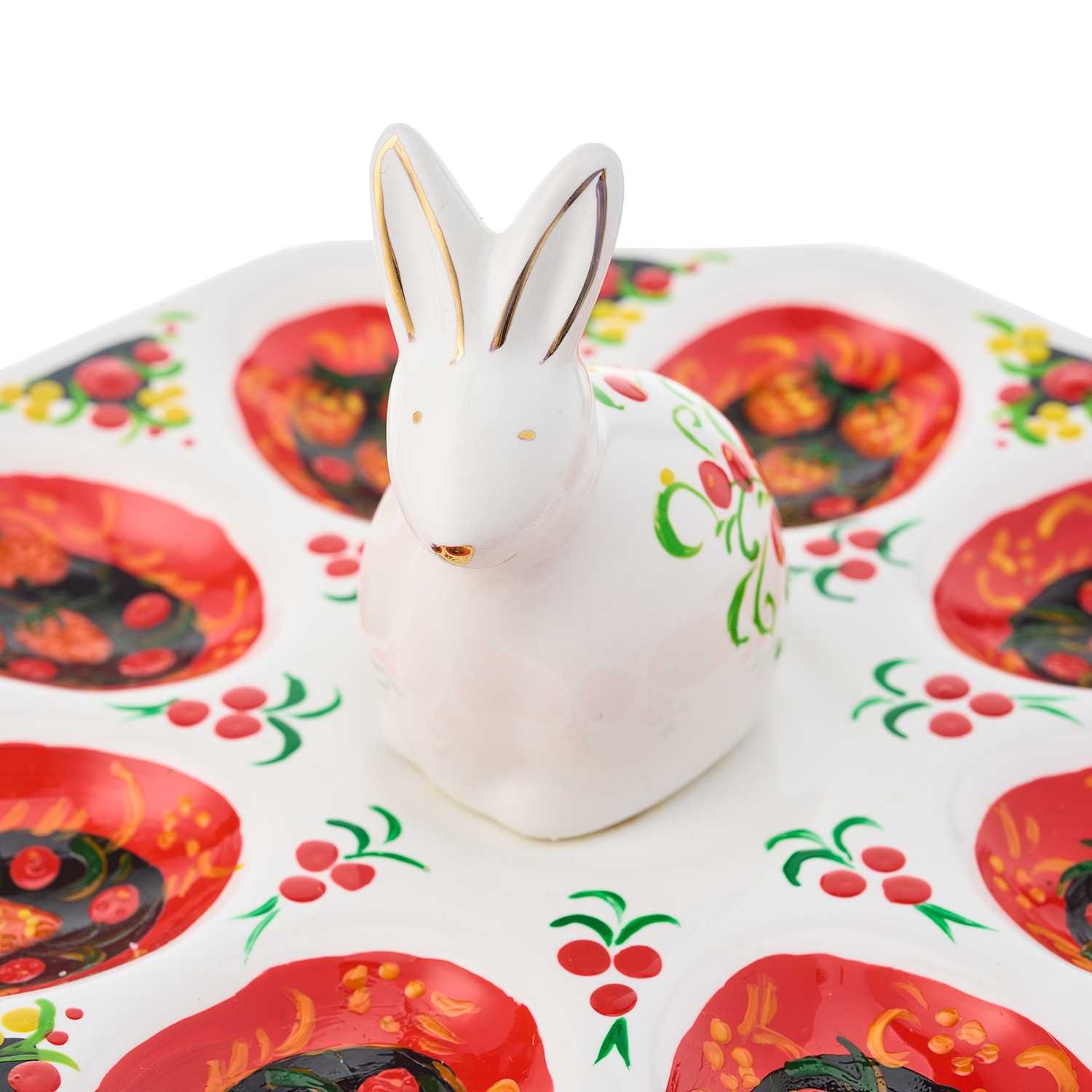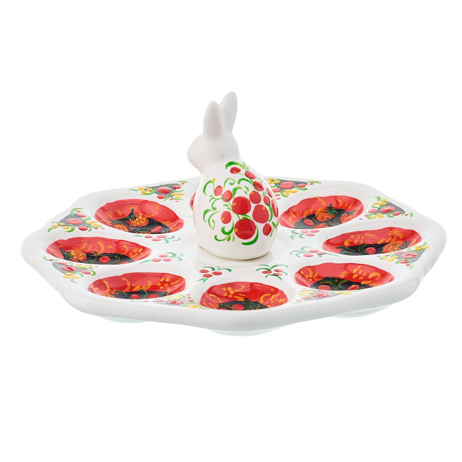 Тарелка-пасхальница с ручной росписью "Кролик" на 8 яиц