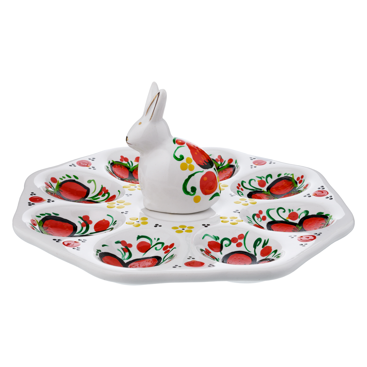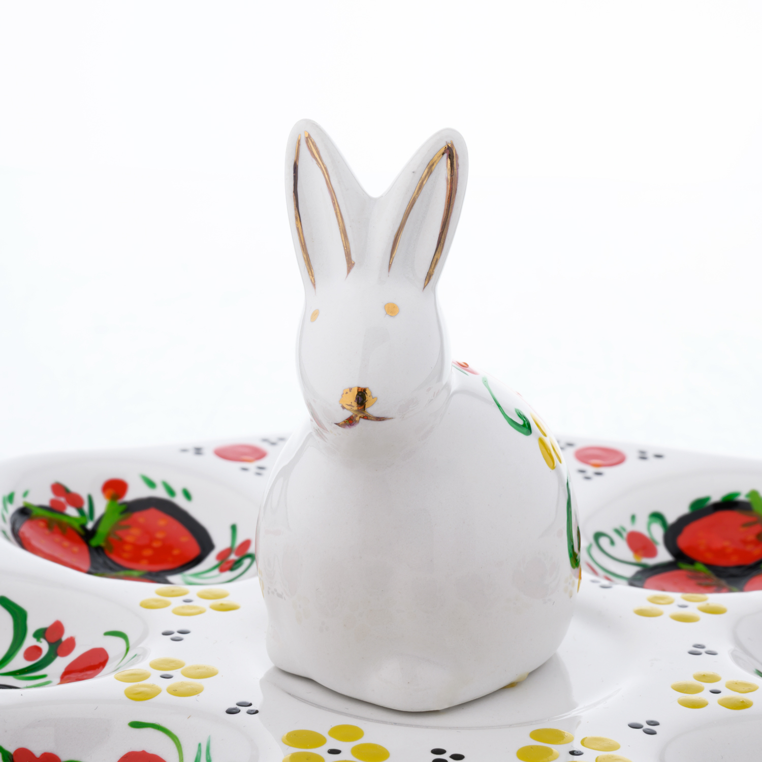 Тарелка-пасхальница с ручной росписью "Кролик" на 8 яиц