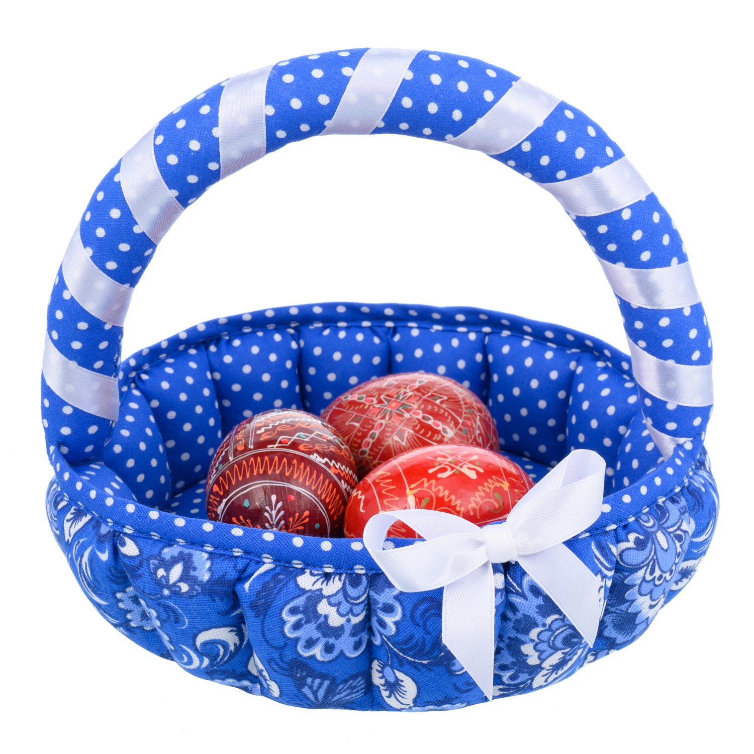 Корзина для конфет и пасхальных яиц "Гжель".Материал: текстиль.