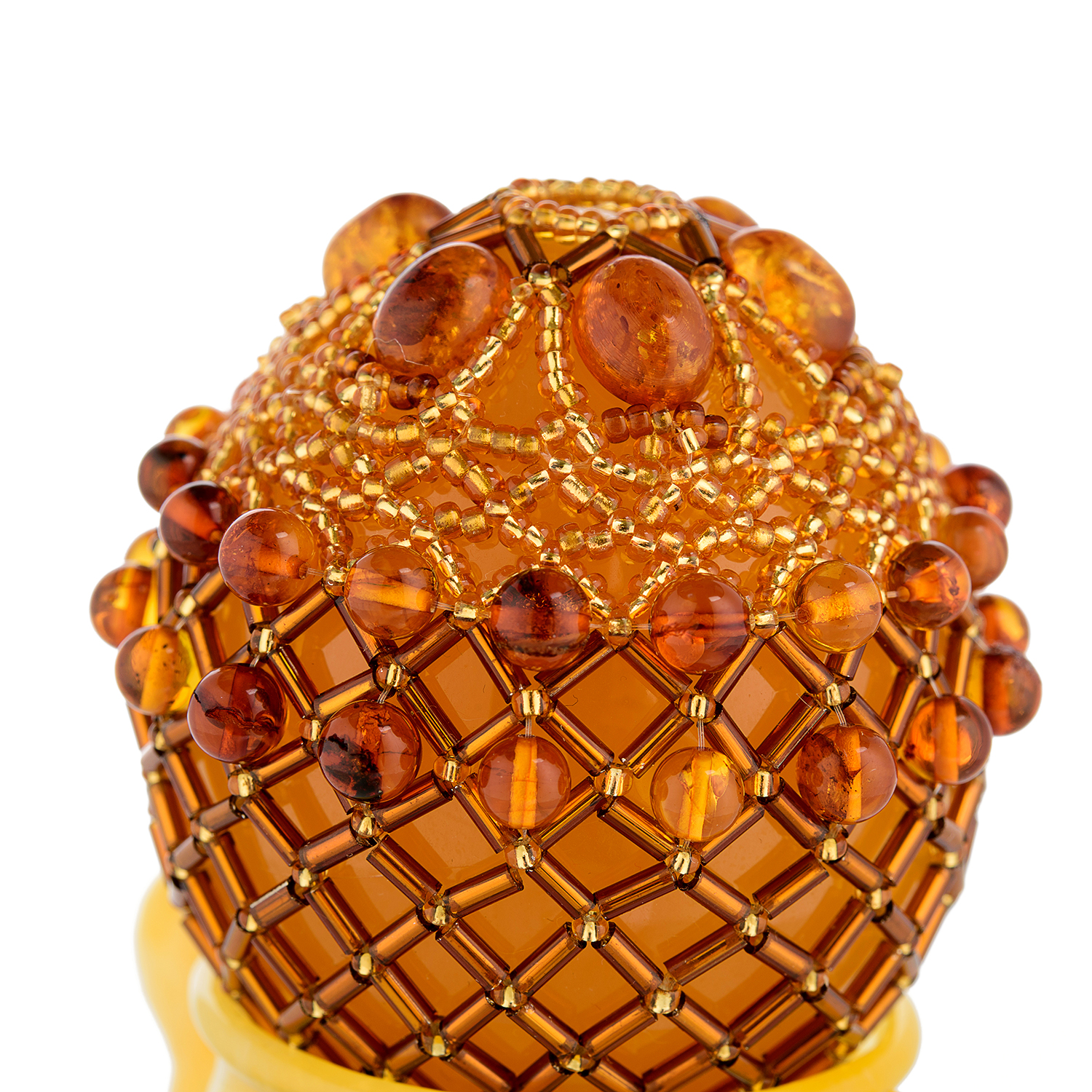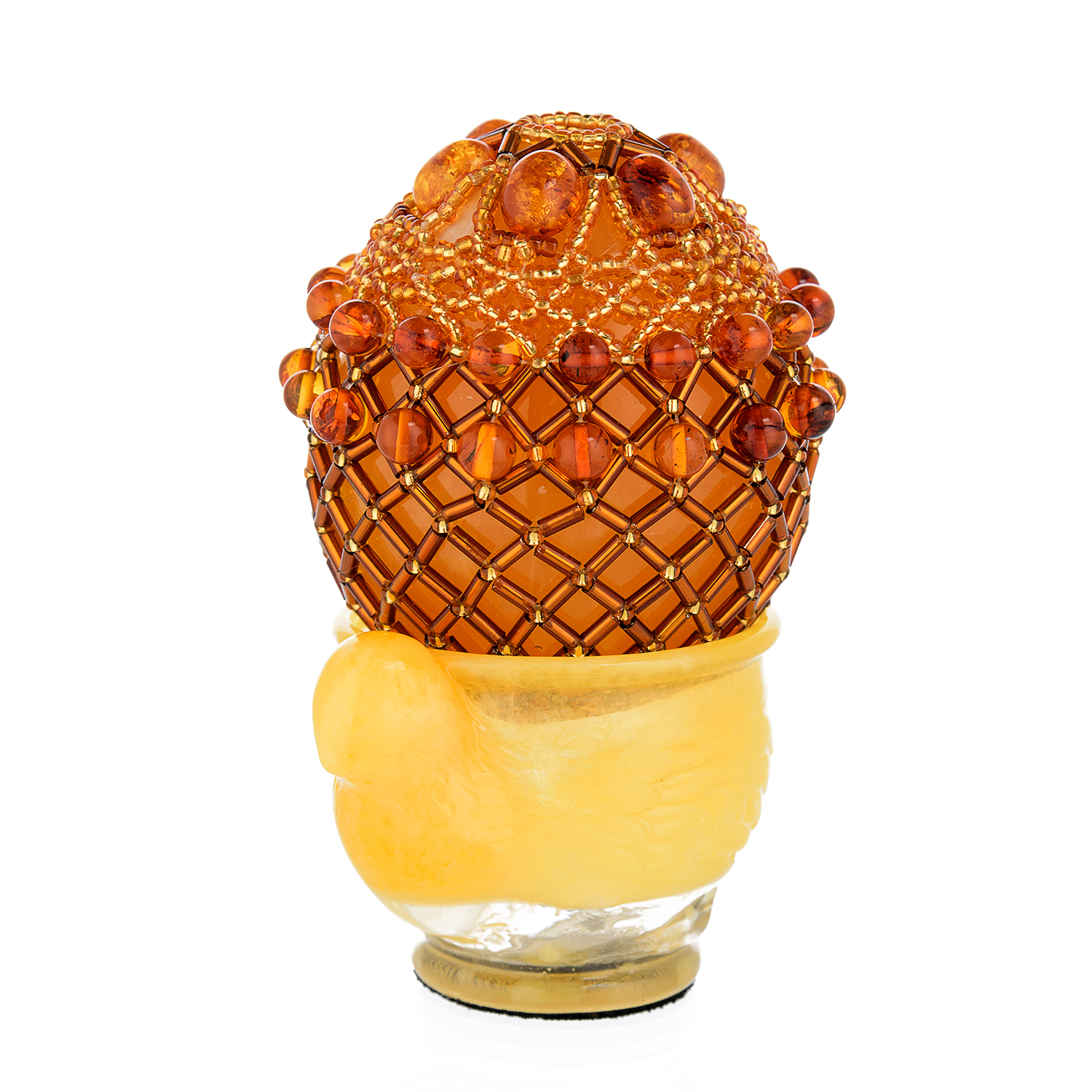 Пасхальное яйцо из янтаря с бисером "Нарядная курочка"