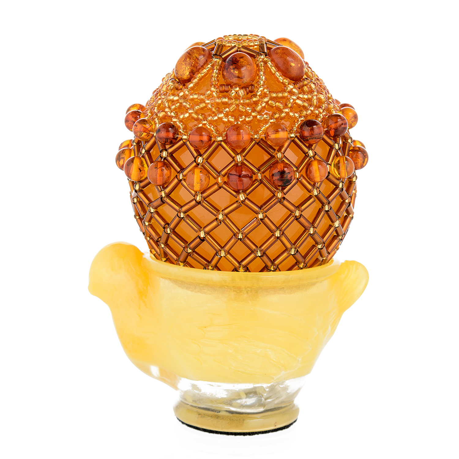 Русские подарки и сувениры → Религиозные подарки → Пасхальные яйца → Пасхальное яйцо из янтаря с бисером "Нарядная курочка"