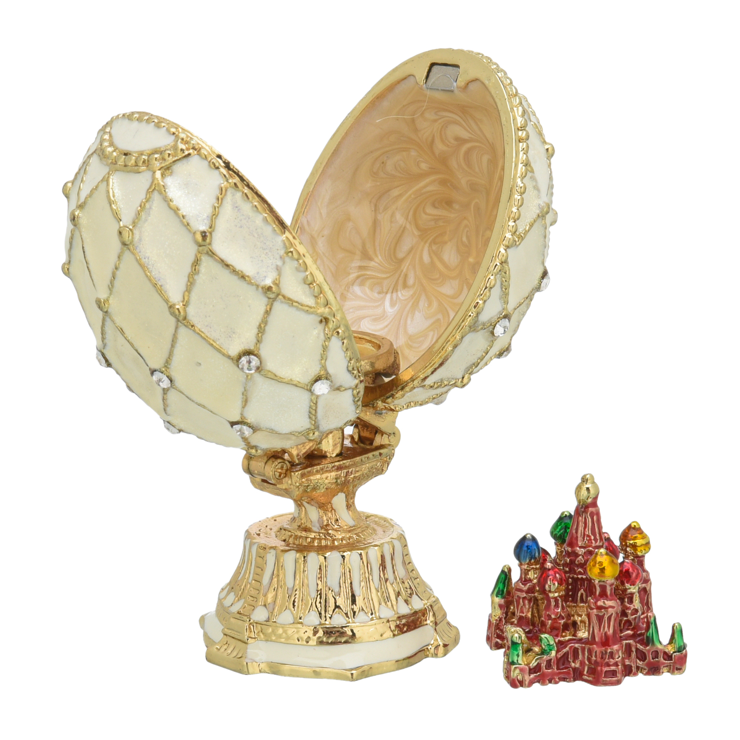 0025723/Е09-8А-01 Традиции ФАБЕРЖЕ Сувенир ЯЙЦО пасх.малое"Решетка с СОБОРОМ."