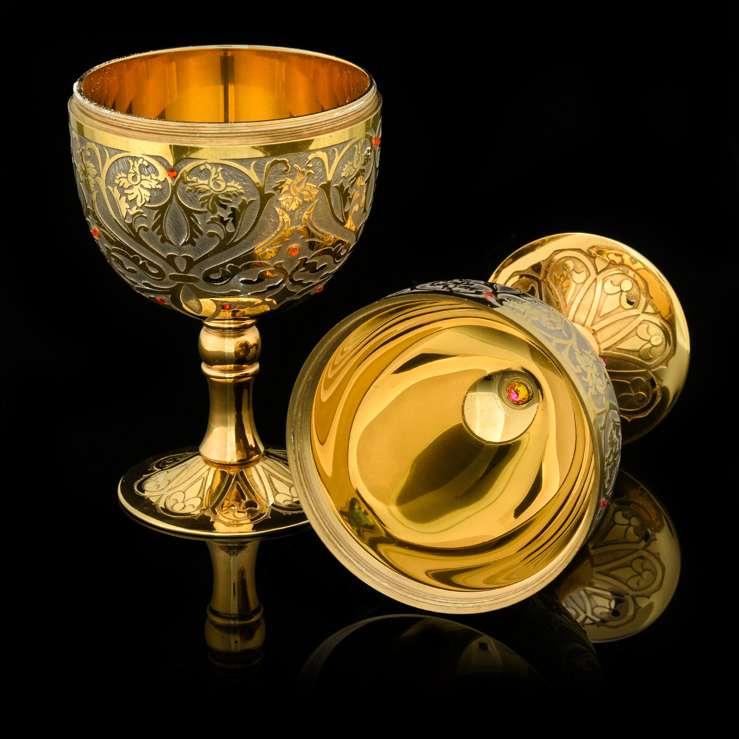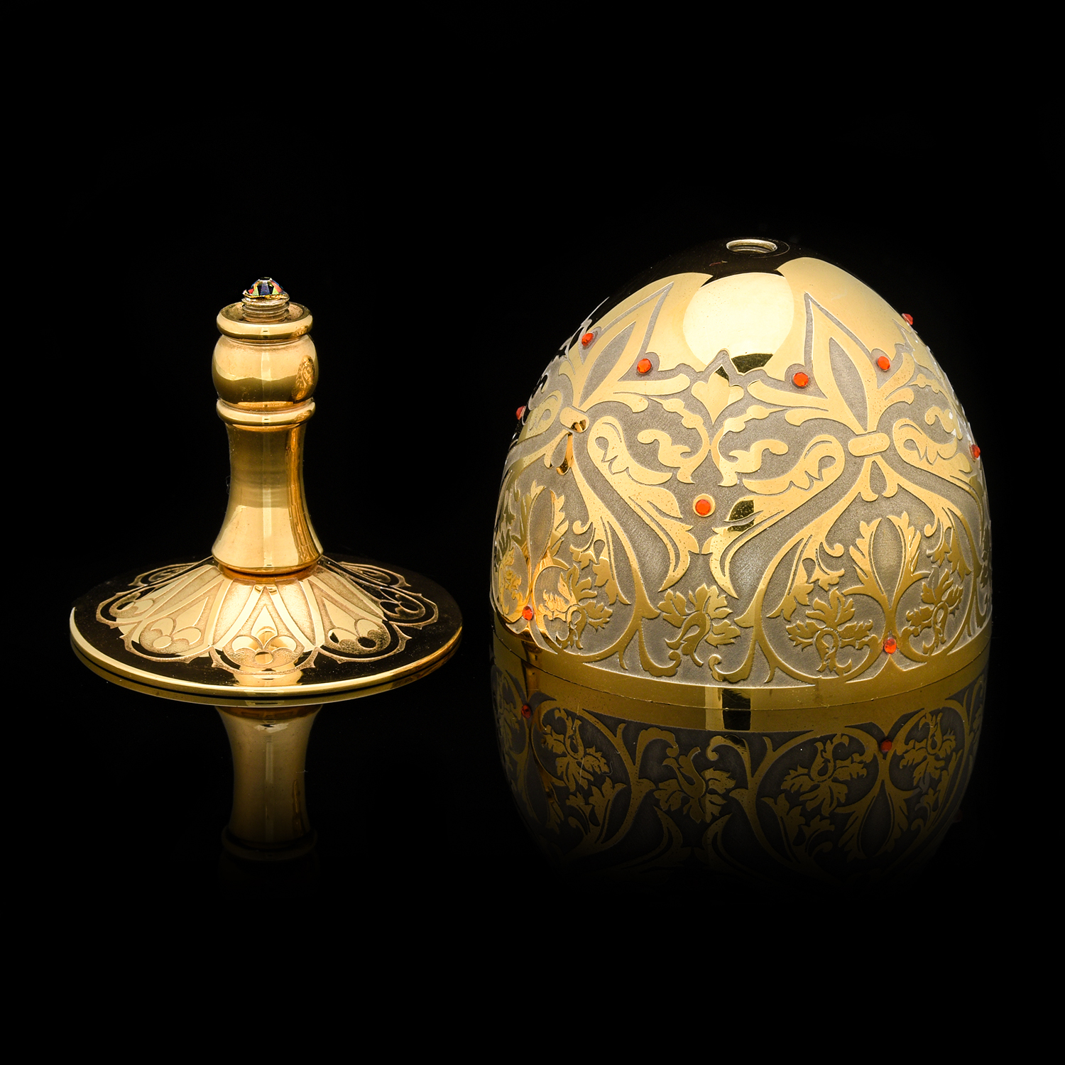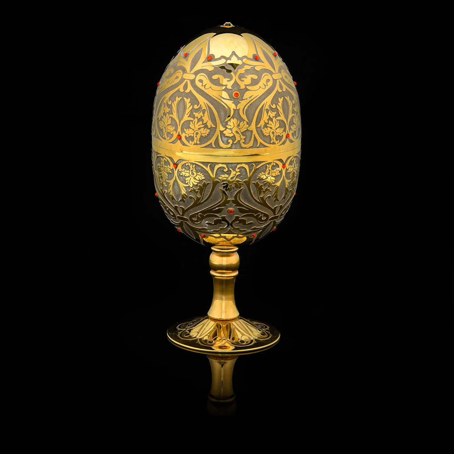 Пасхальное яйцо-рюмка. Златоуст.Материалы: латунь, никель, золото 999,9*, фианиты.
