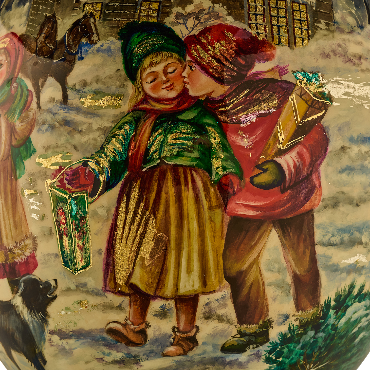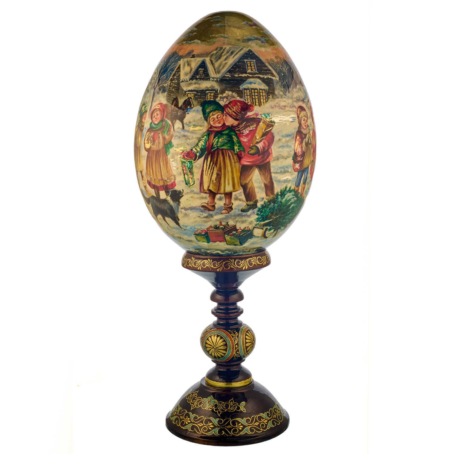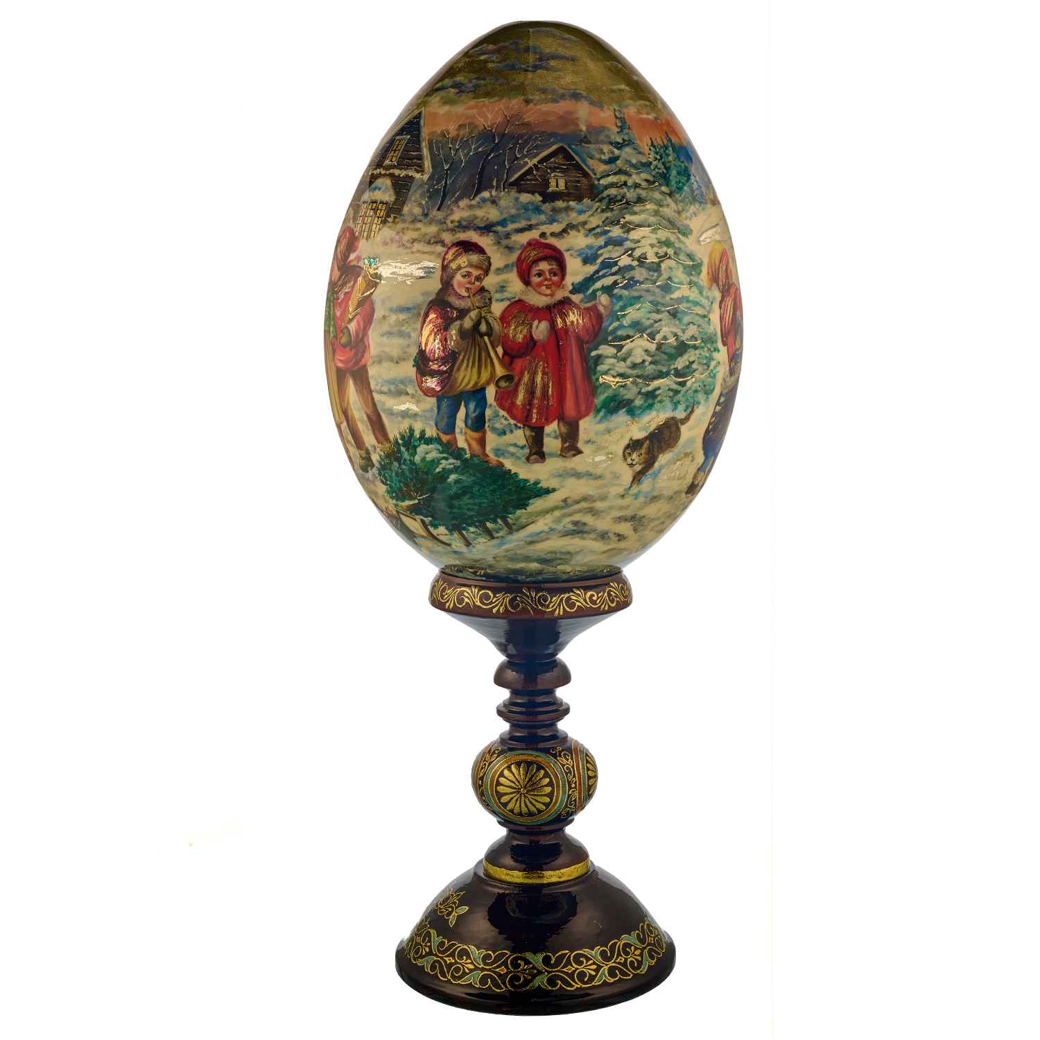 Пасхальное яйцо на подставке "Зимние забавы".Материалы: дерево, краски, лак.