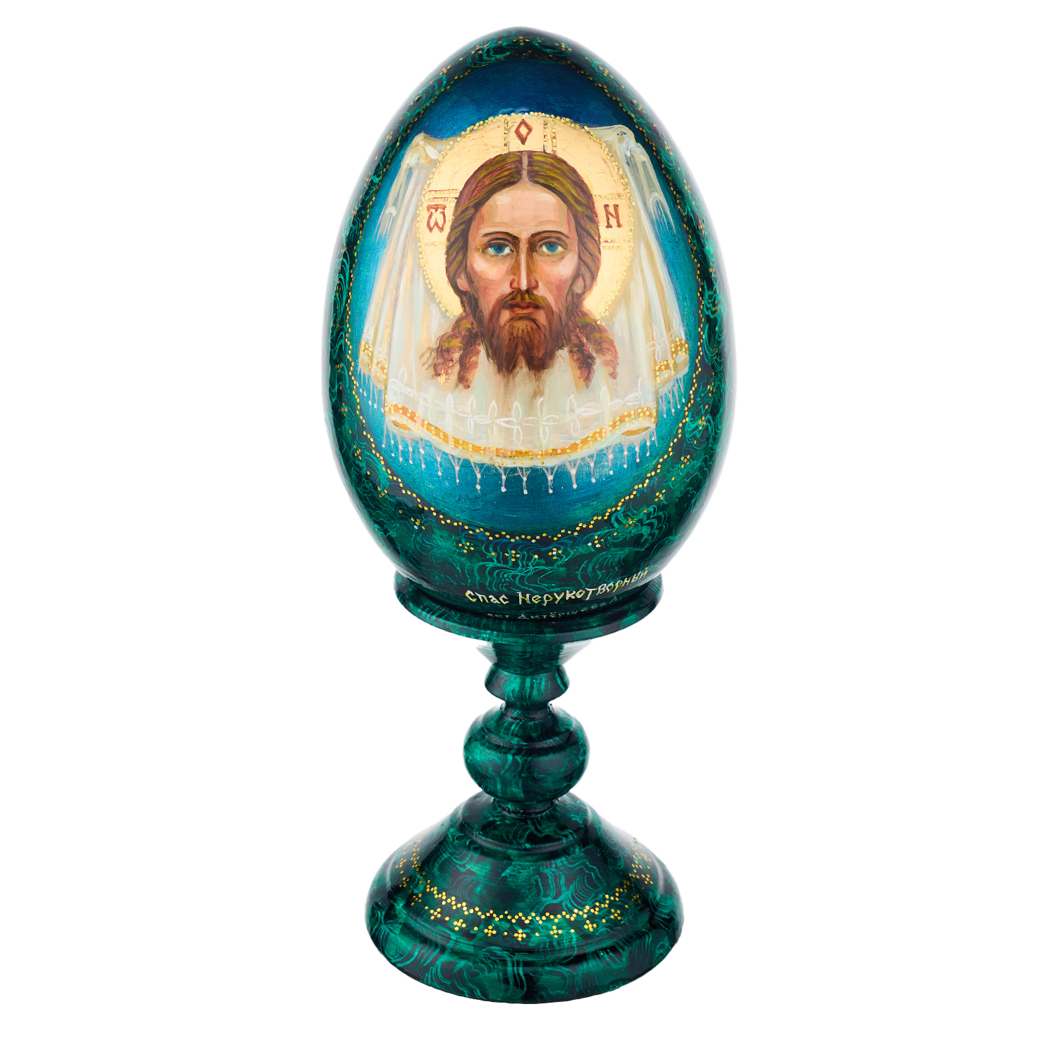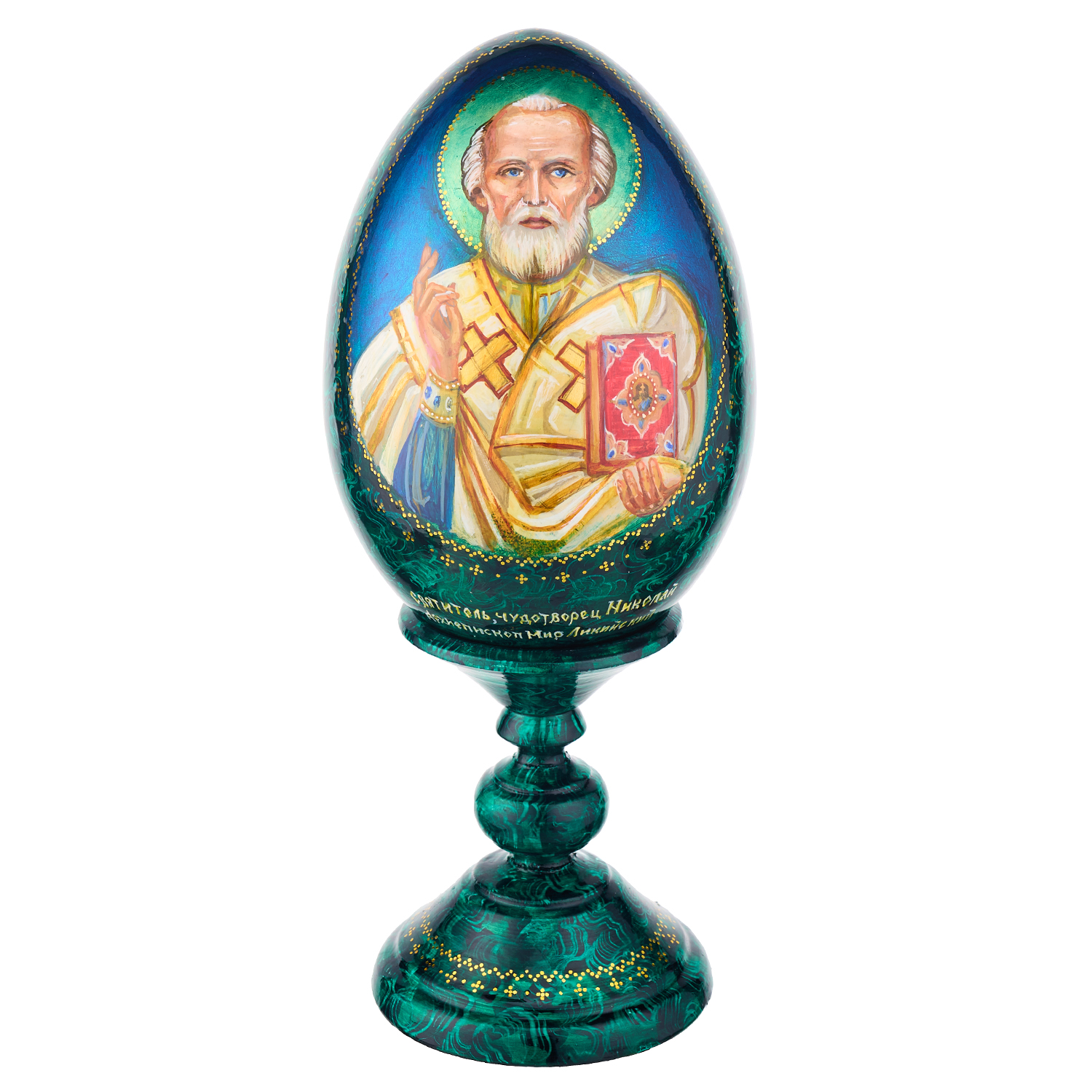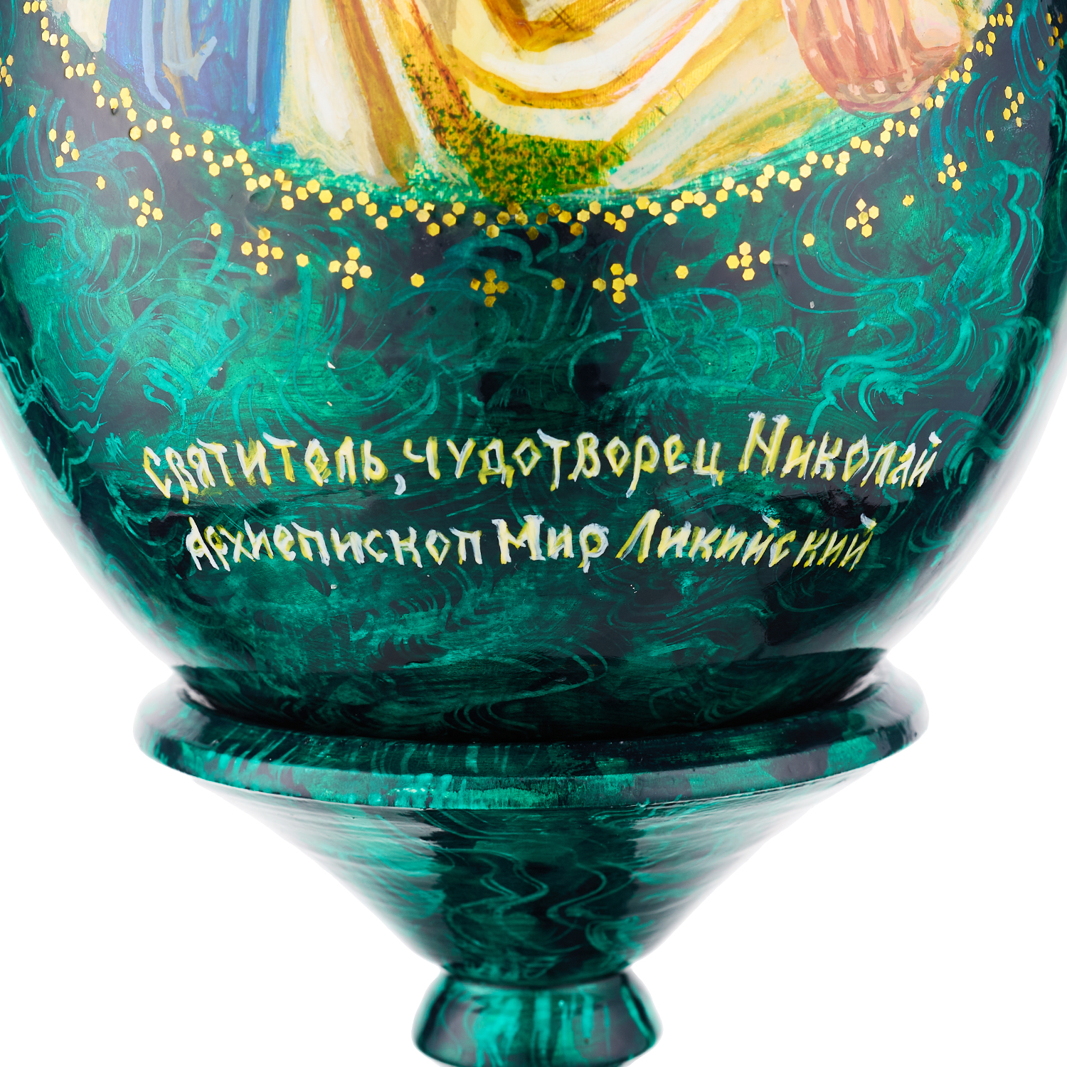 Деревянное пасхальное яйцо на подставке "Николай Чудотворец. Спас Нерукотворный"