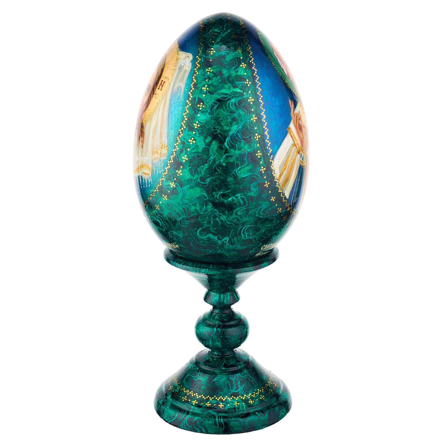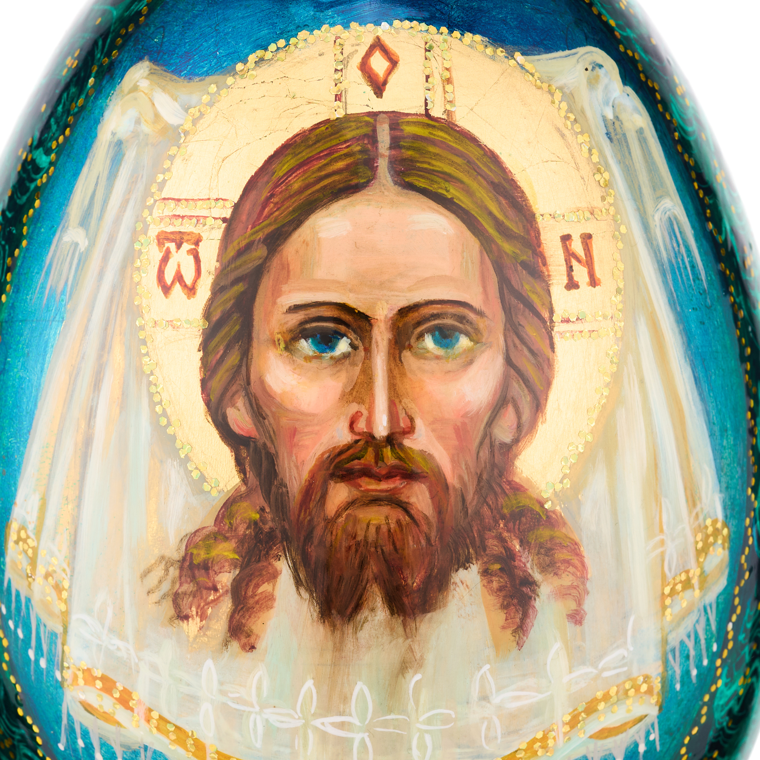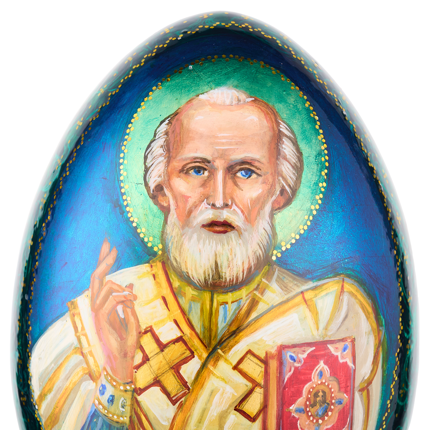 Деревянное пасхальное яйцо на подставке "Николай Чудотворец. Спас Нерукотворный"
