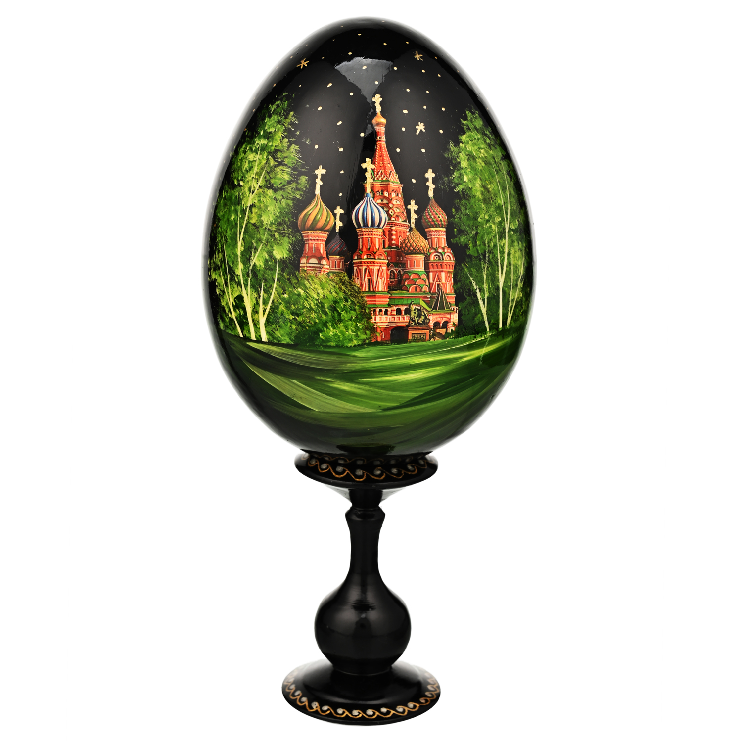 Деревянное пасхальное яйцо на подставке "Москва. Храм Василия Блаженного"