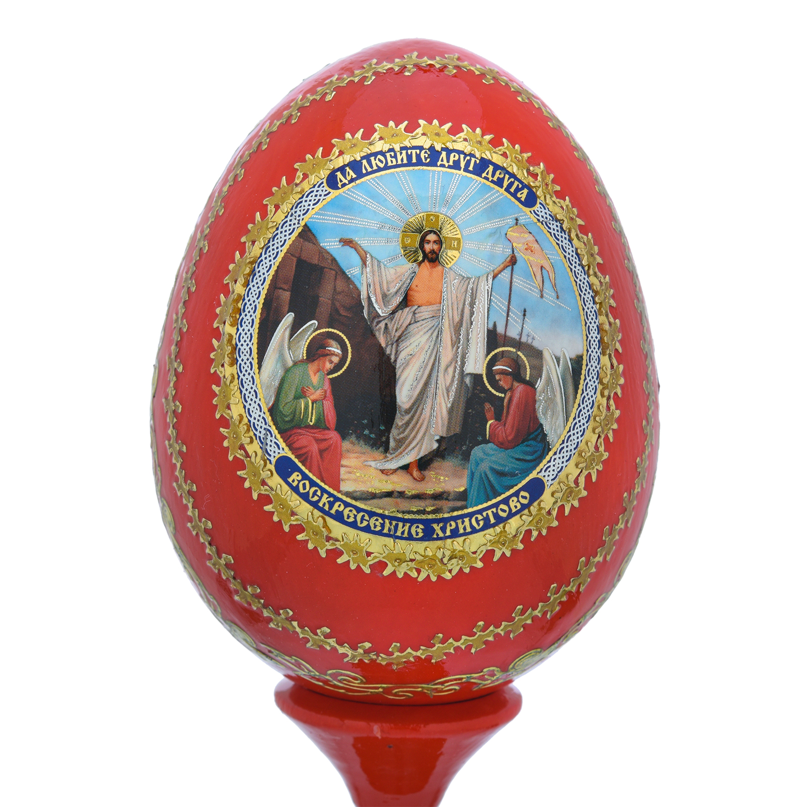 Русские подарки и сувениры → Религиозные подарки → Пасхальные яйца → Яйцо пасхальное на подставке "Воскресение Христово"