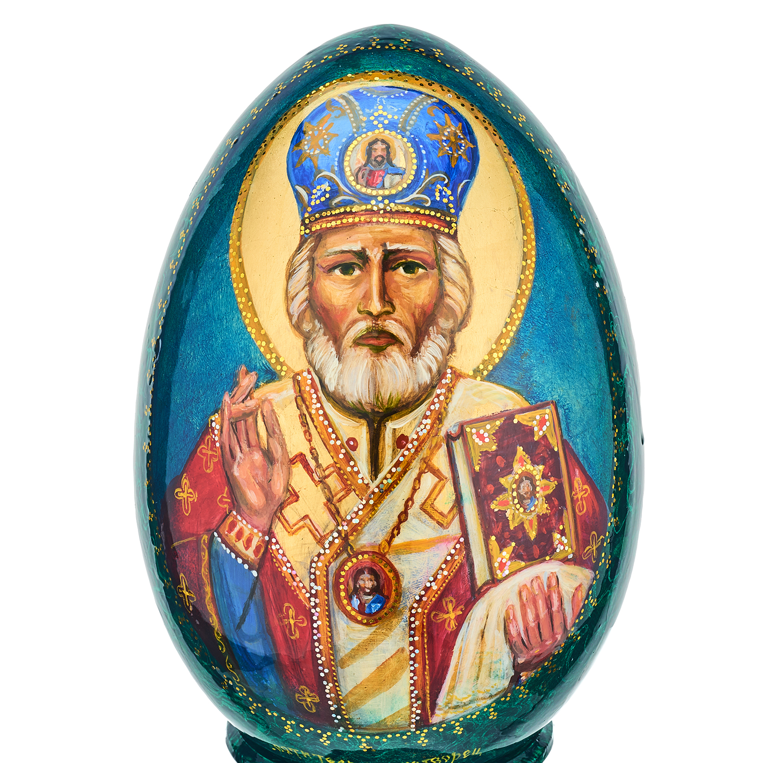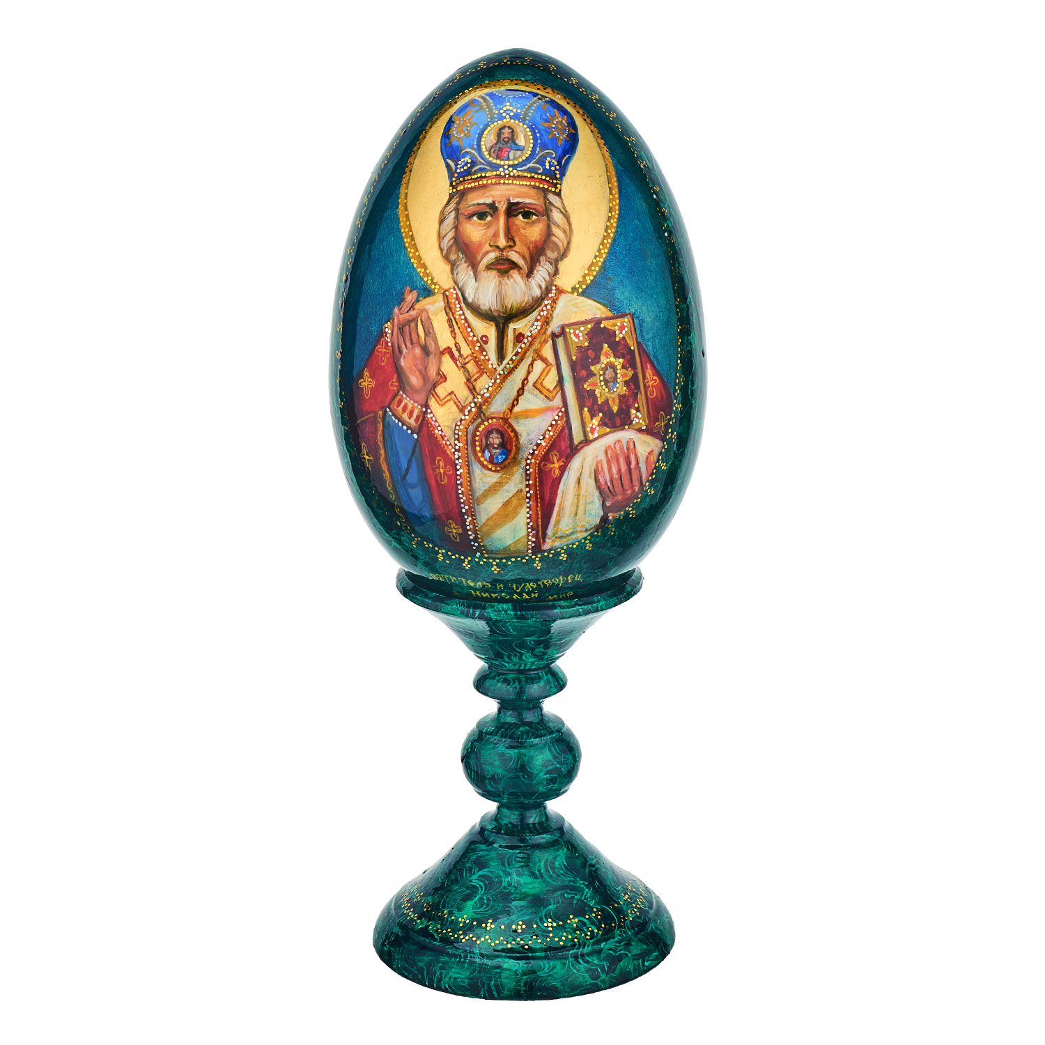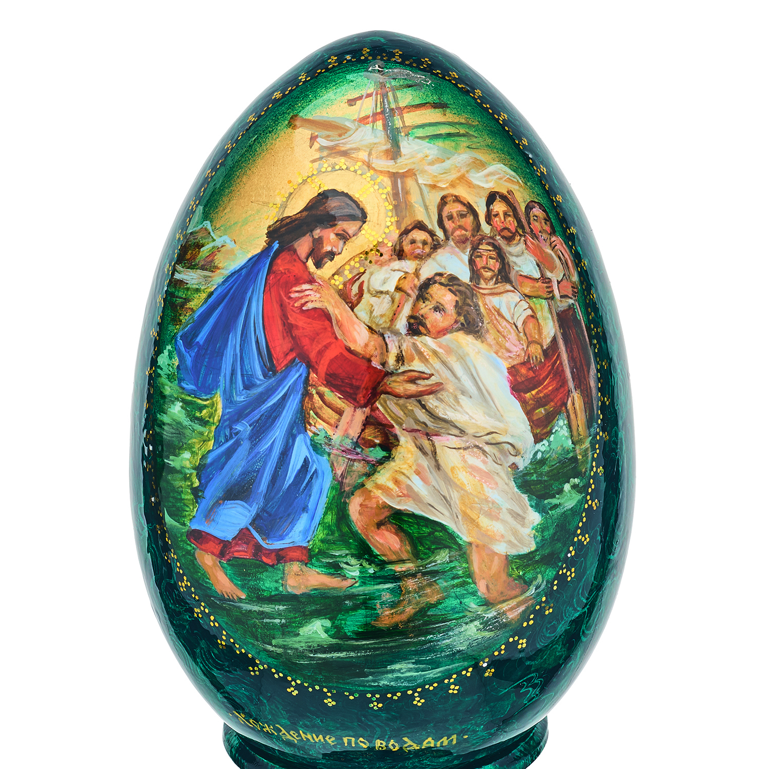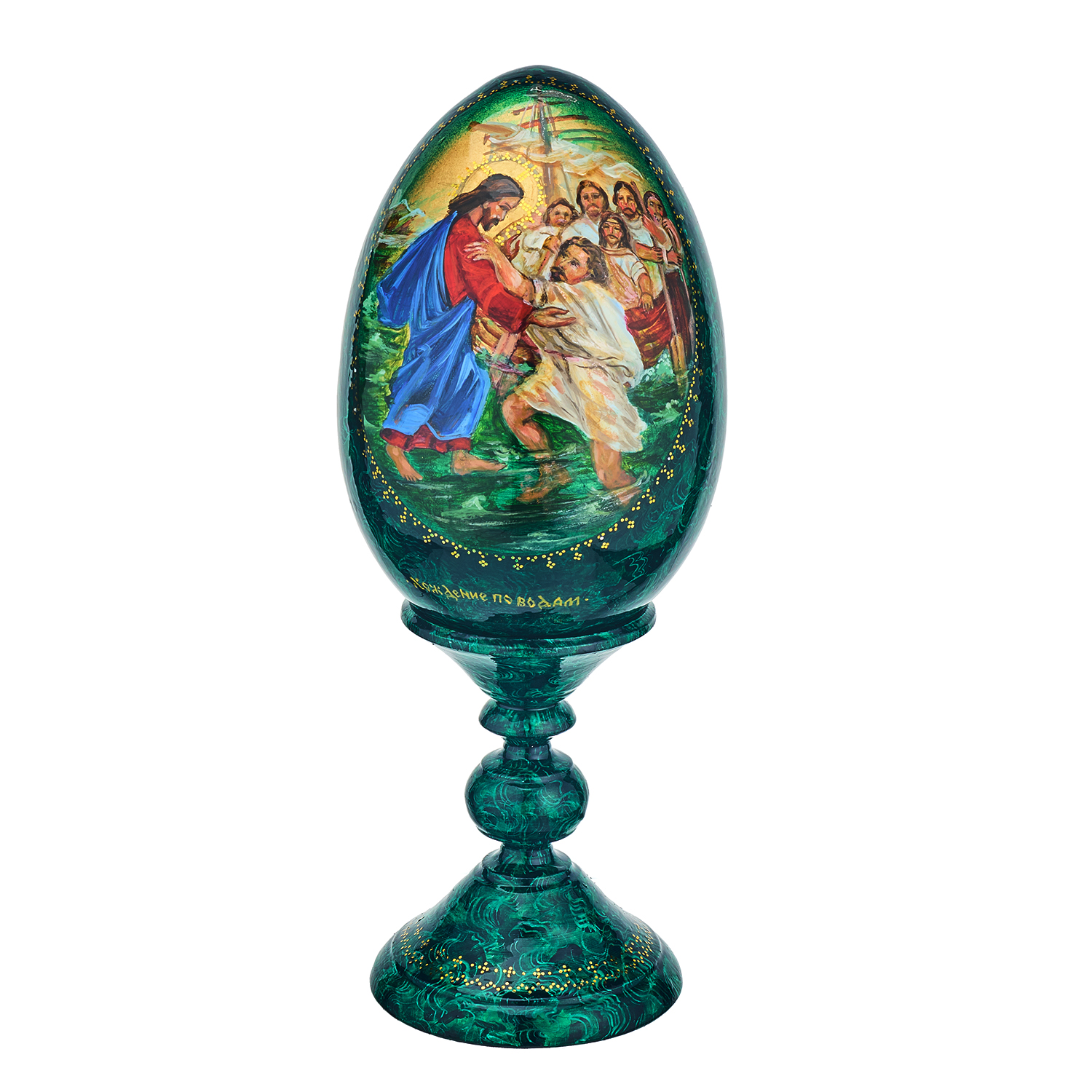 Деревянное пасхальное яйцо на подставке "Николай Чудотворец. Хождение по водам"