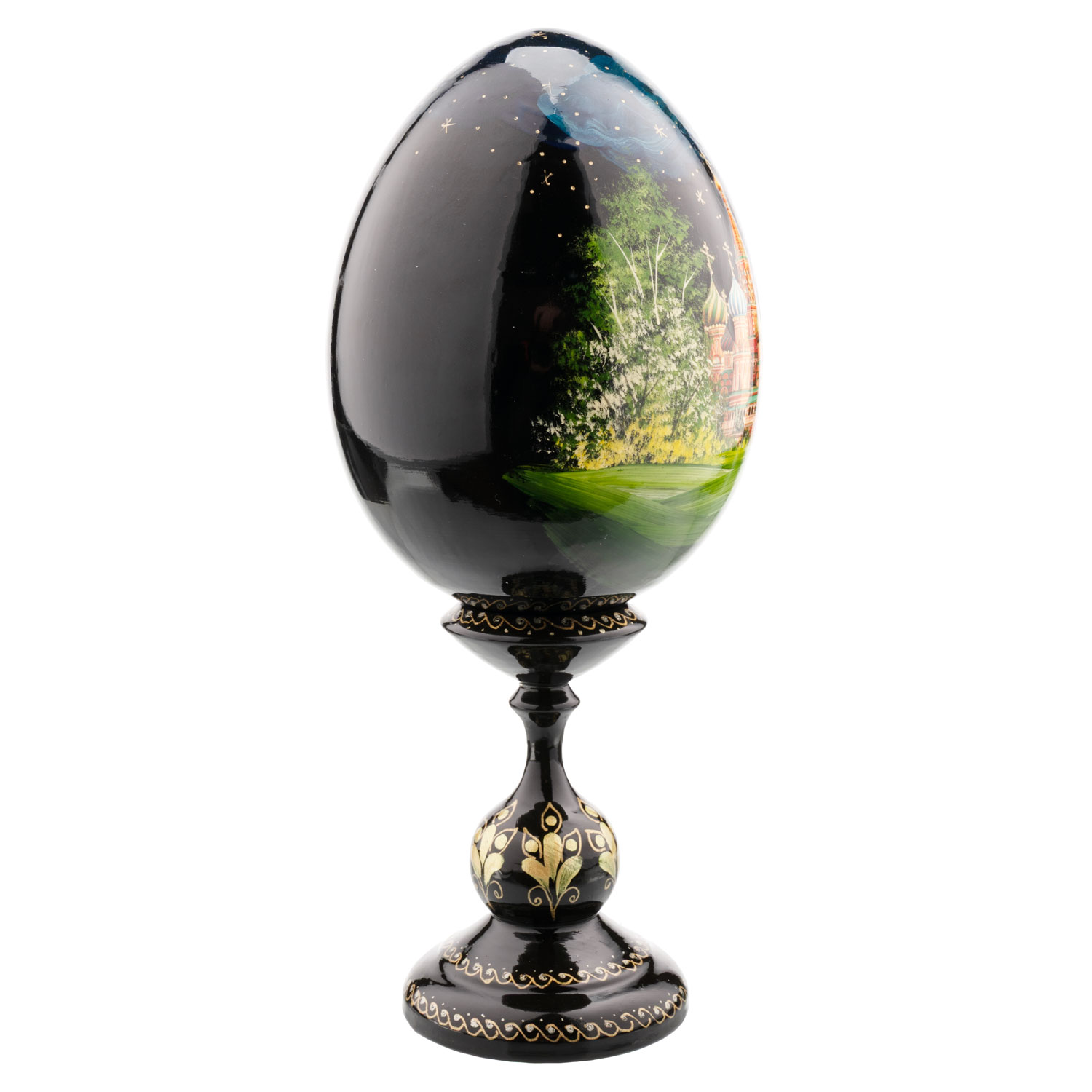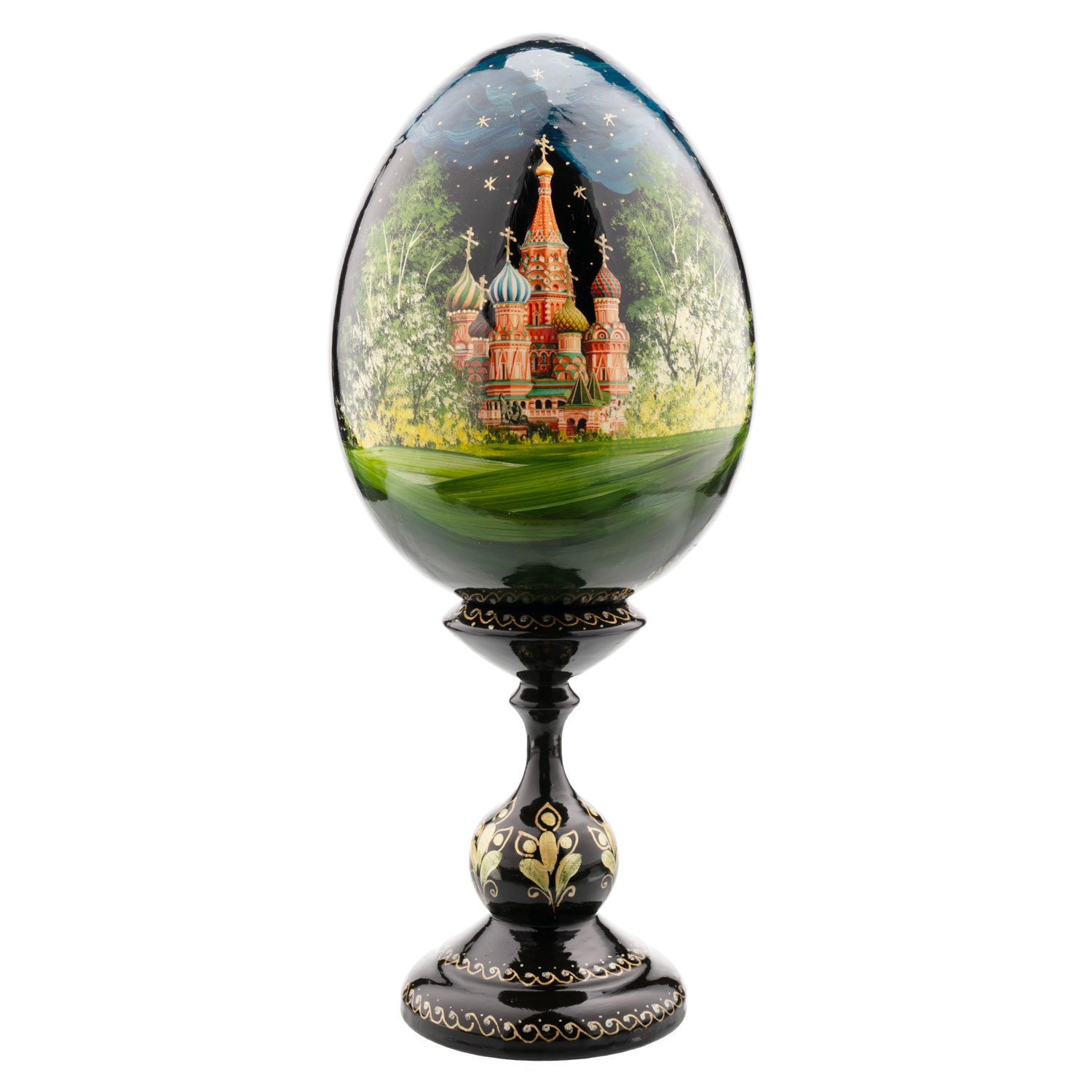 Русские подарки и сувениры → Религиозные подарки → Пасхальные яйца → Деревянное пасхальное яйцо на подставке "Москва. Храм Василия Блаженного"