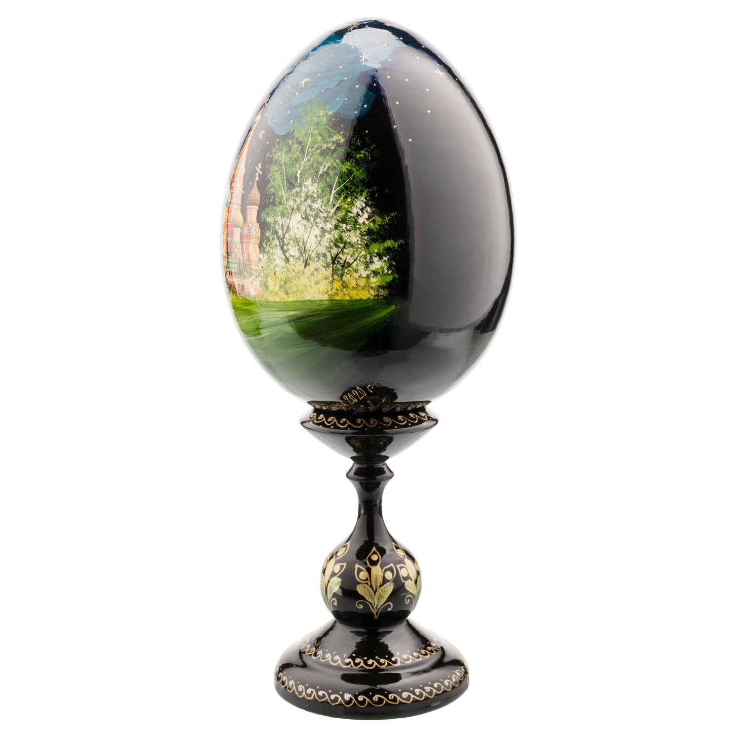 Деревянное пасхальное яйцо на подставке "Москва. Храм Василия Блаженного"